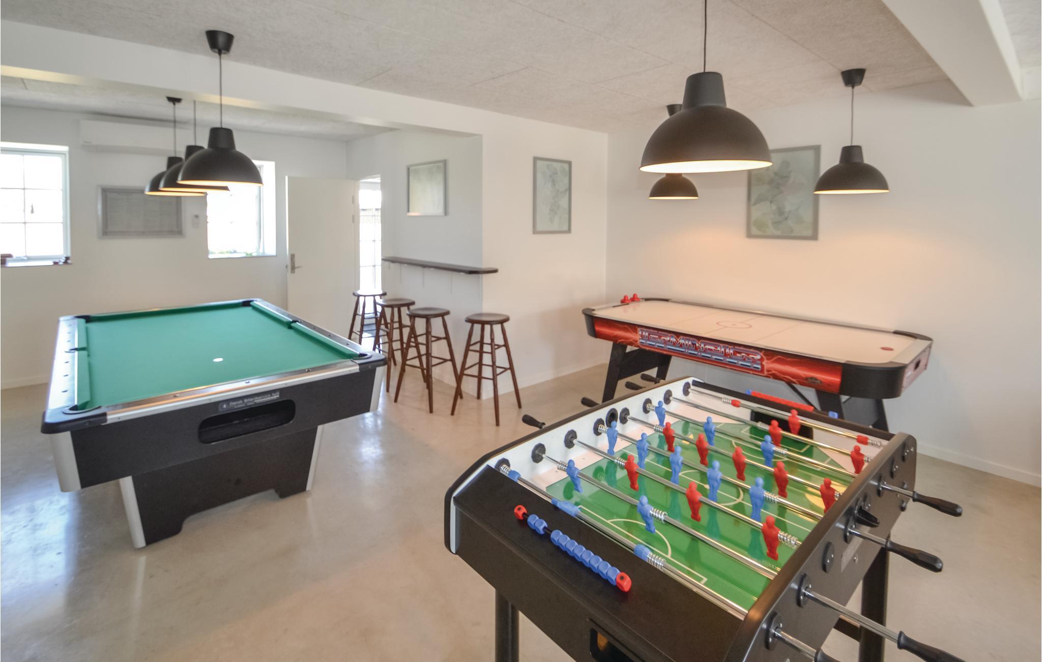Her er der plads til den helt store familie eller dem der gerne vil fejre en festlig begivenhed. Huset er bl.a. indrettet med et stort, moderne køkken, der står i direkte forbindelse med en dejlig spisestue. I aktivitetsrummet kan I hygge jer med et spil pool. På terrassen kan I privat og uforstyrret nyde solen og se børnene lege på plænen.