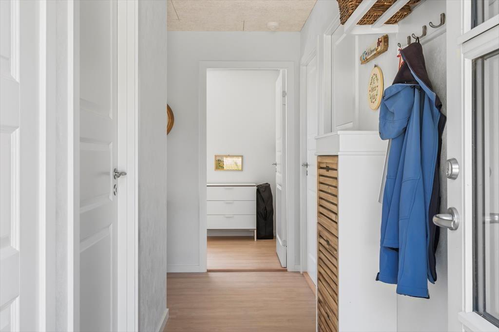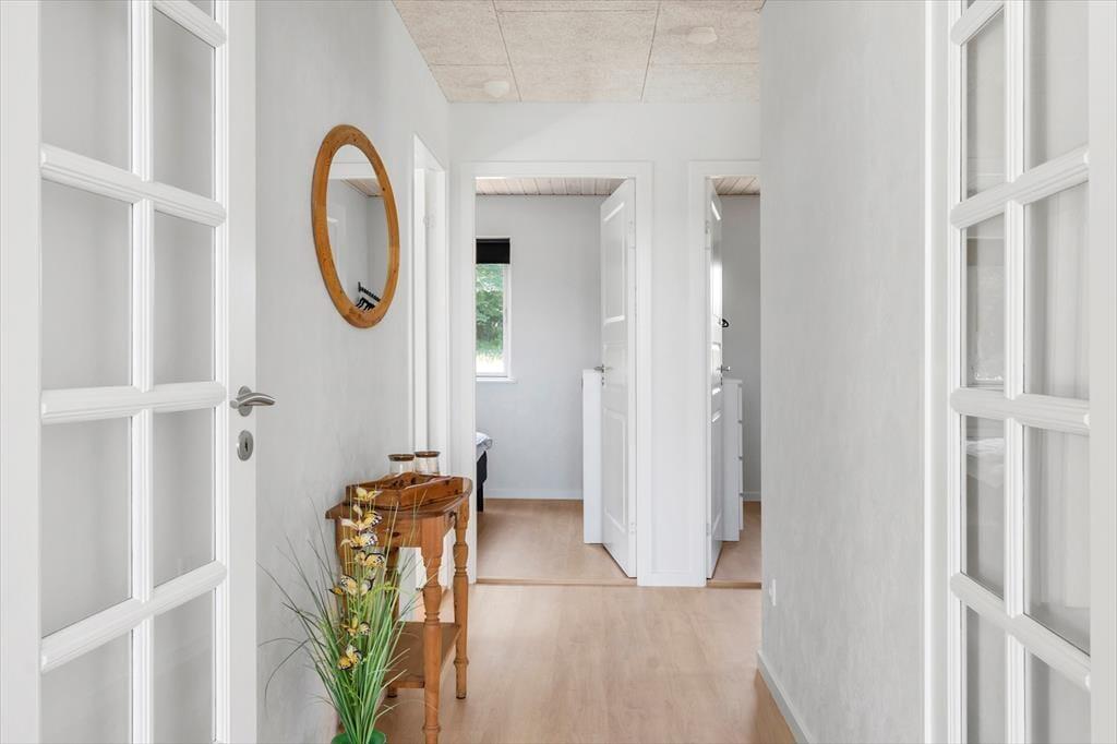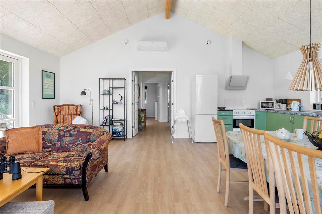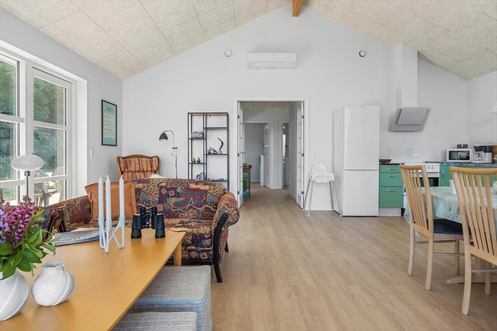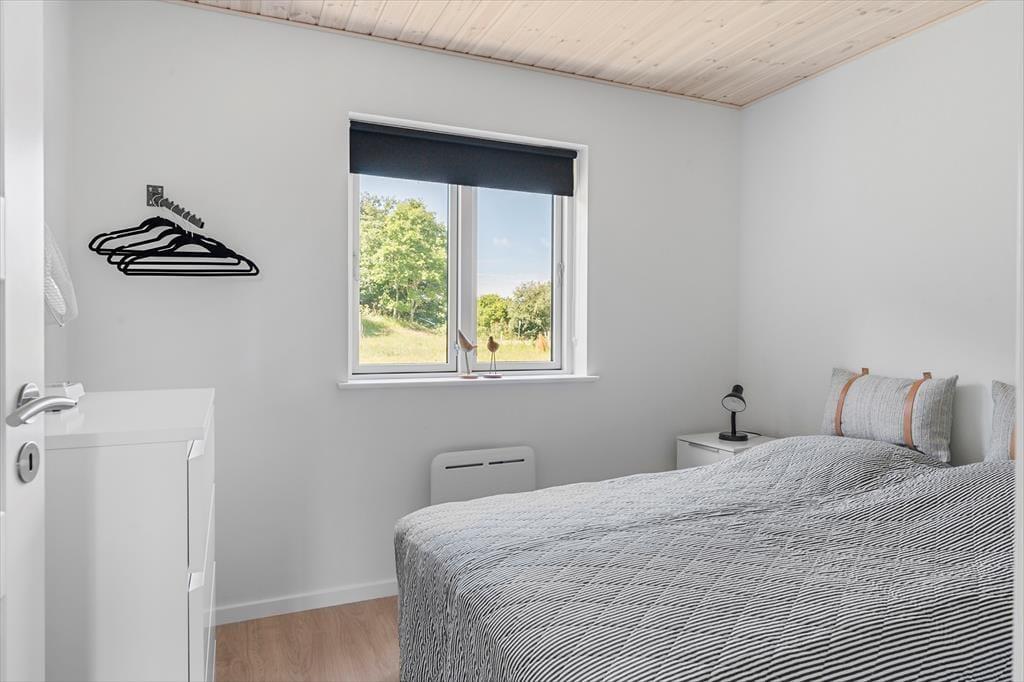 Sommerhuset er opført i 2023, måler 87 m2 og har med sine tre soveværelser en glimrende planløsning til seks personer. Der er dobbeltseng på alle værelser, mens badeværelset er rummeligt og har både glasbruseniche og vaskemaskine. Et veludstyret køkken er integreret med stuen, der er et skønt opholdsrum med loft til kip, varmepumpe og hyggeskabende møblement. Både spisebordet og sofaarrangementet er placeret nær det store vindue, så I kan sidde og nyde livet med kig ud over det naturskønne landskab.