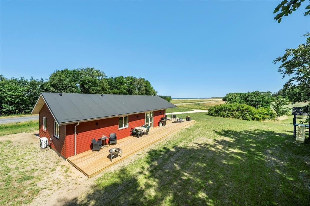 Dette nyopførte træsommerhus ligger skønt placeret på Feggesundvej i den nordligste ende af Mors. Omgivelserne er utroligt naturskønne, og gennem stuens store gavlvindue kan I se lige ud over det flade landskab mod Limfjorden og Feggeklit. Sikke et sted at slappe af med en god kop kaffe!