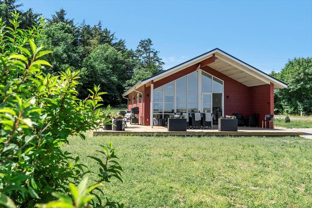Også fra husets store og delvist overdækkede træterrasse får I rig mulighed for at nyde naturomgivelserne og den friske luft. Mod nordøst er udsigten særligt betagende, men det er nu også skønt at sidde på sydsiden af huset, hvor I kan slikke sol det meste af dagen. Til børnene er der legehus og sandkasse, og hele familien har god plads til at boltre sig på den 2722 m2 store grund.