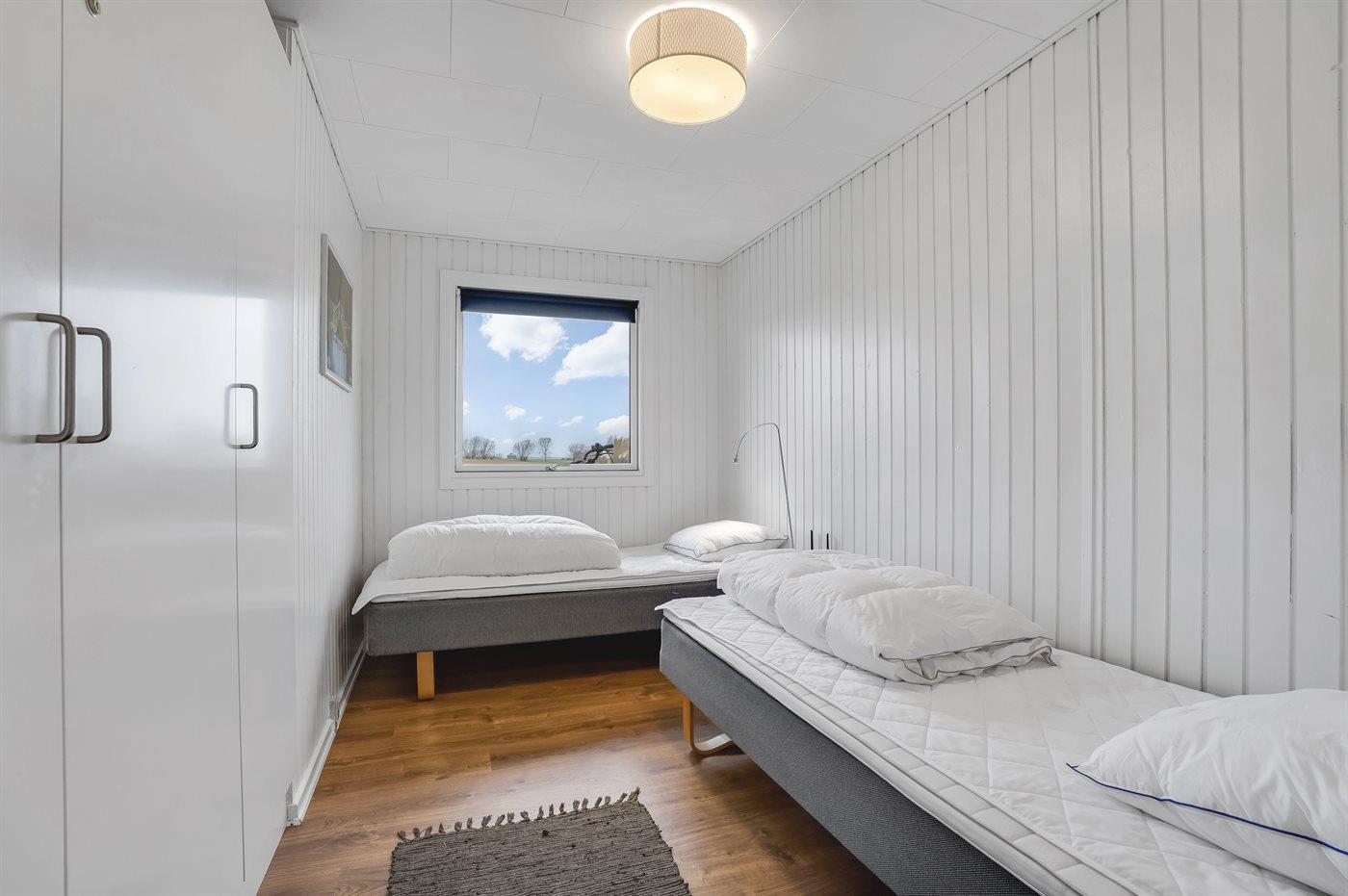Der er i alt 2 soveværelser. Sovepladserne fordeler sig på: 2 sovepladser i dobbeltseng. 2 sovepladser i enkeltsenge.