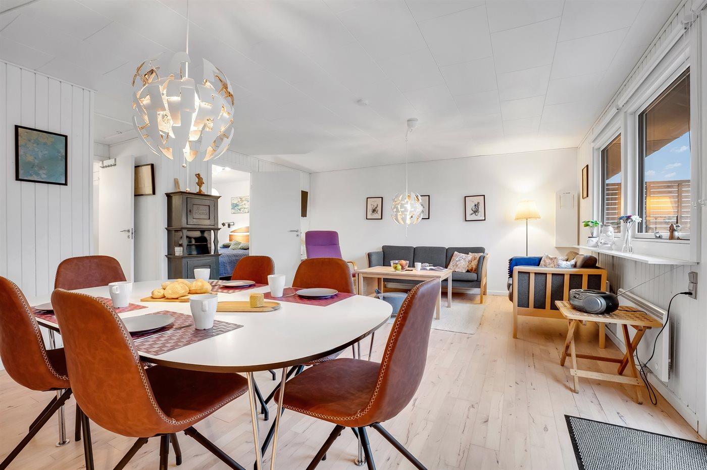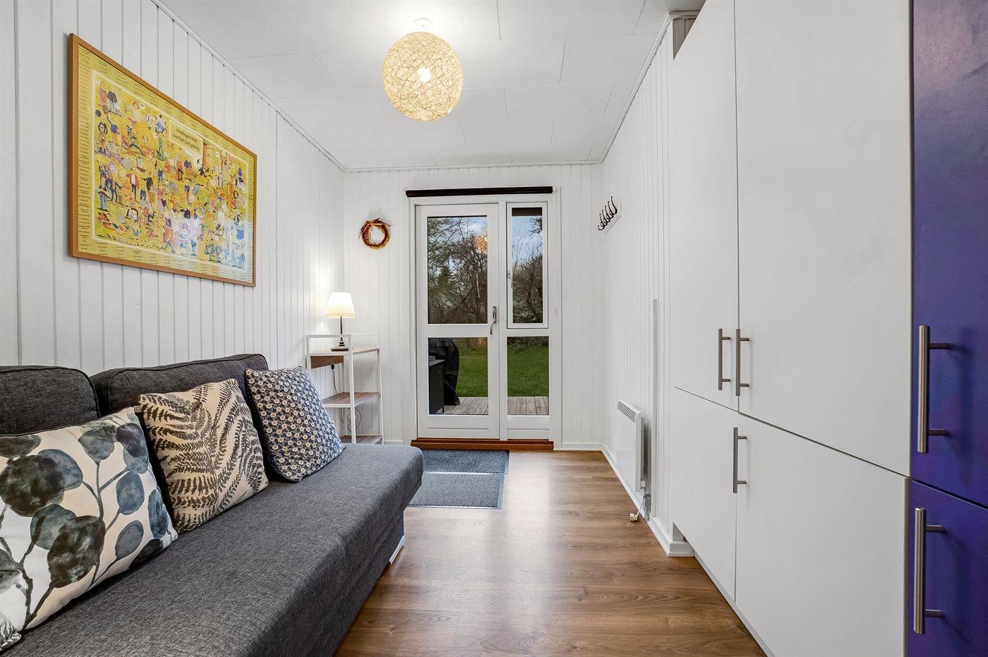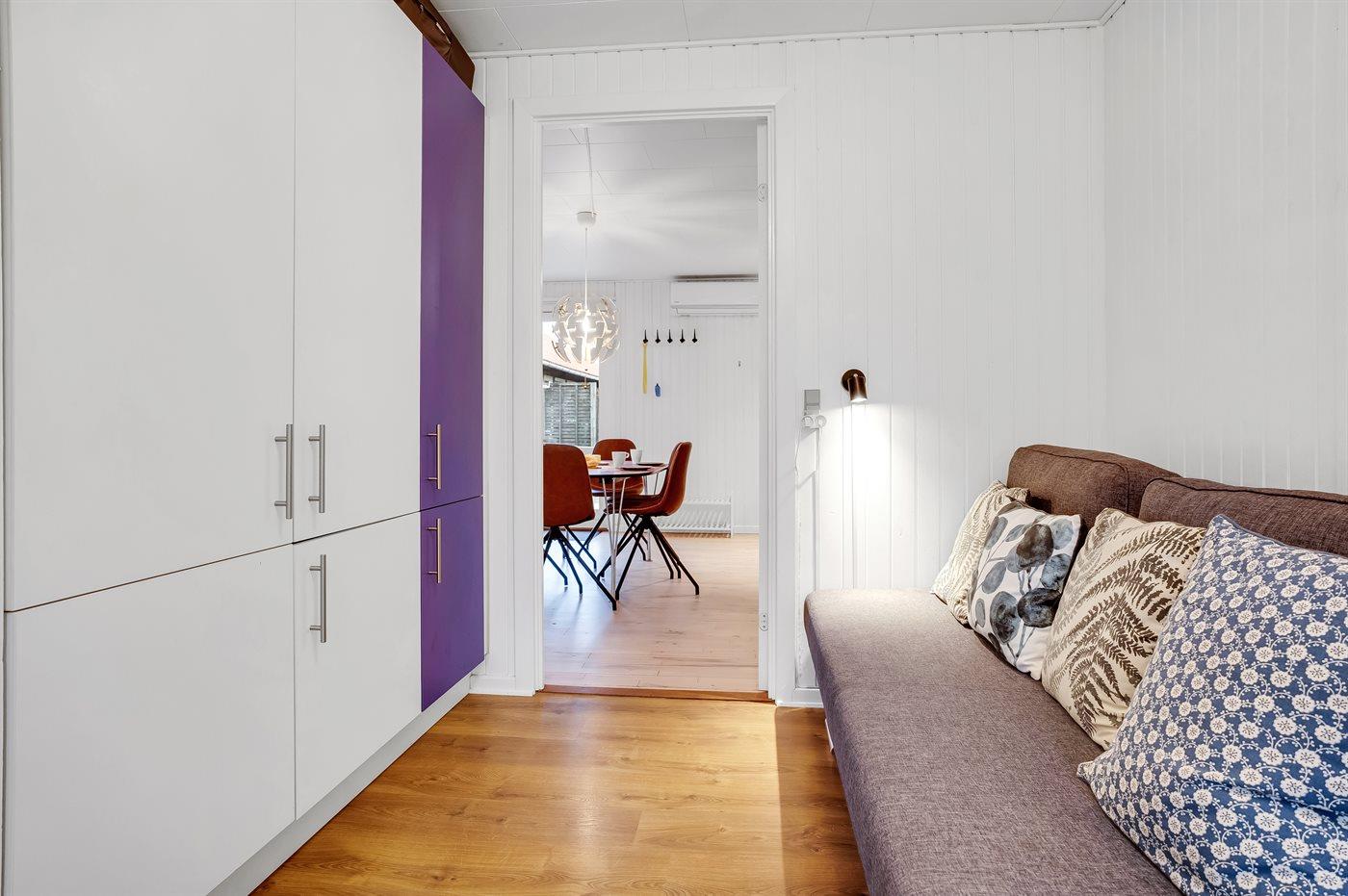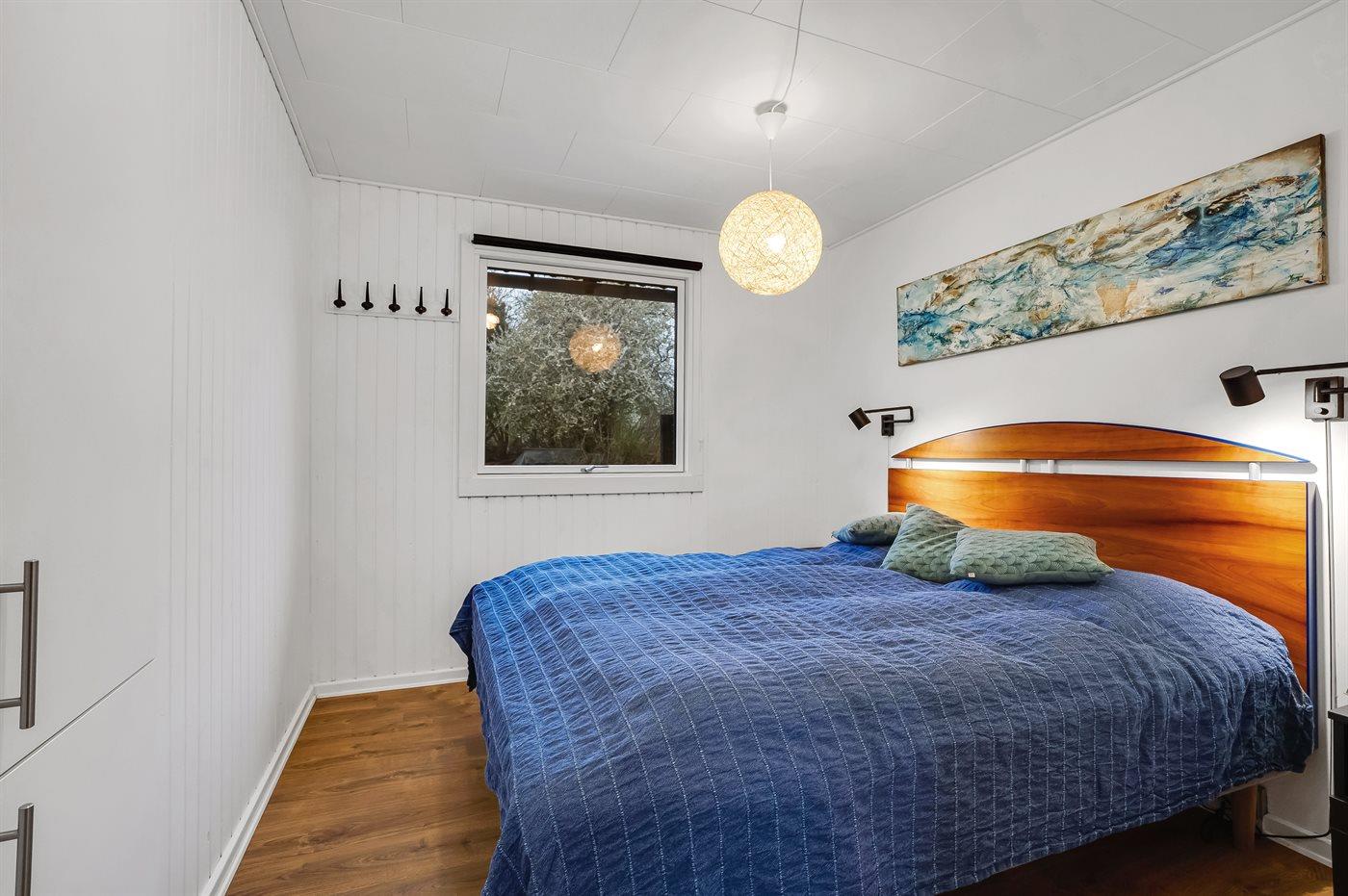 Der er i alt 2 soveværelser. Sovepladserne fordeler sig på: 2 sovepladser i dobbeltseng. 2 sovepladser i sovesofa (dobbelt). Derudover er der 1 stk. barneseng.