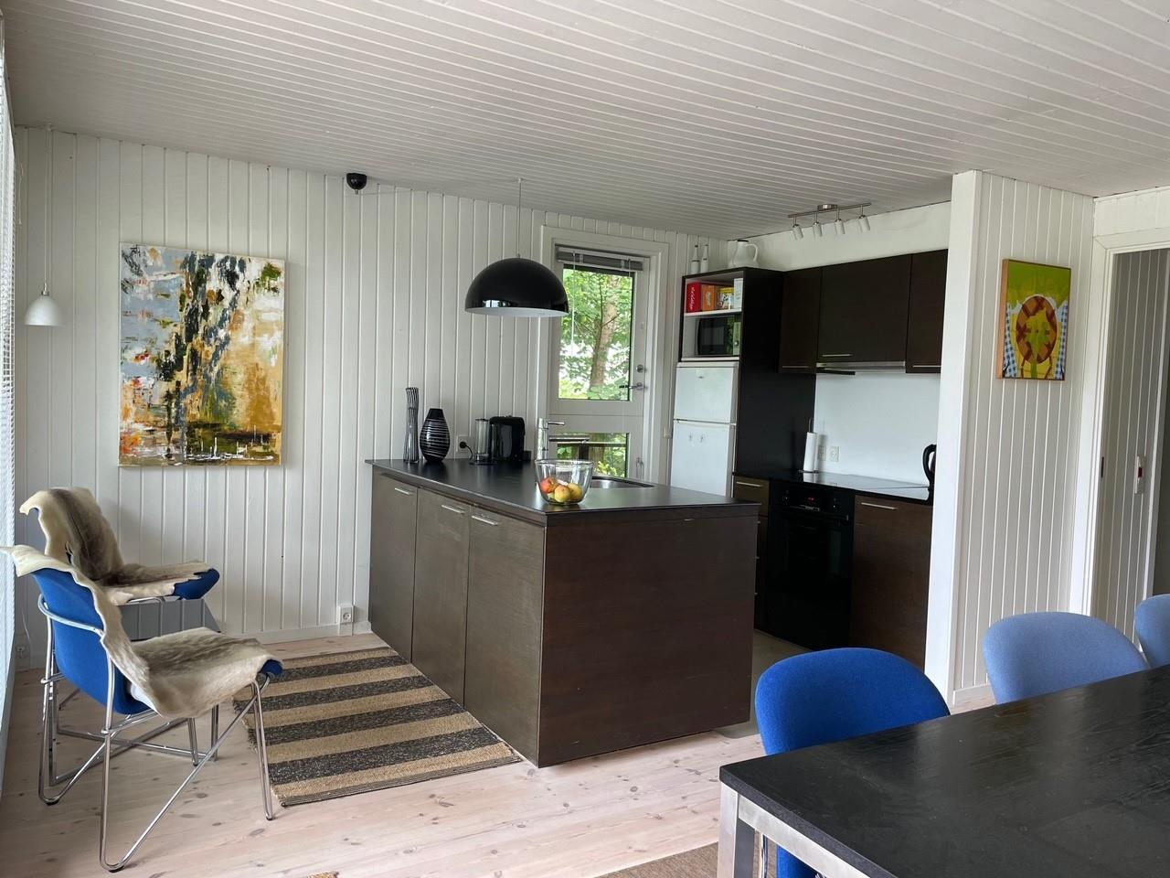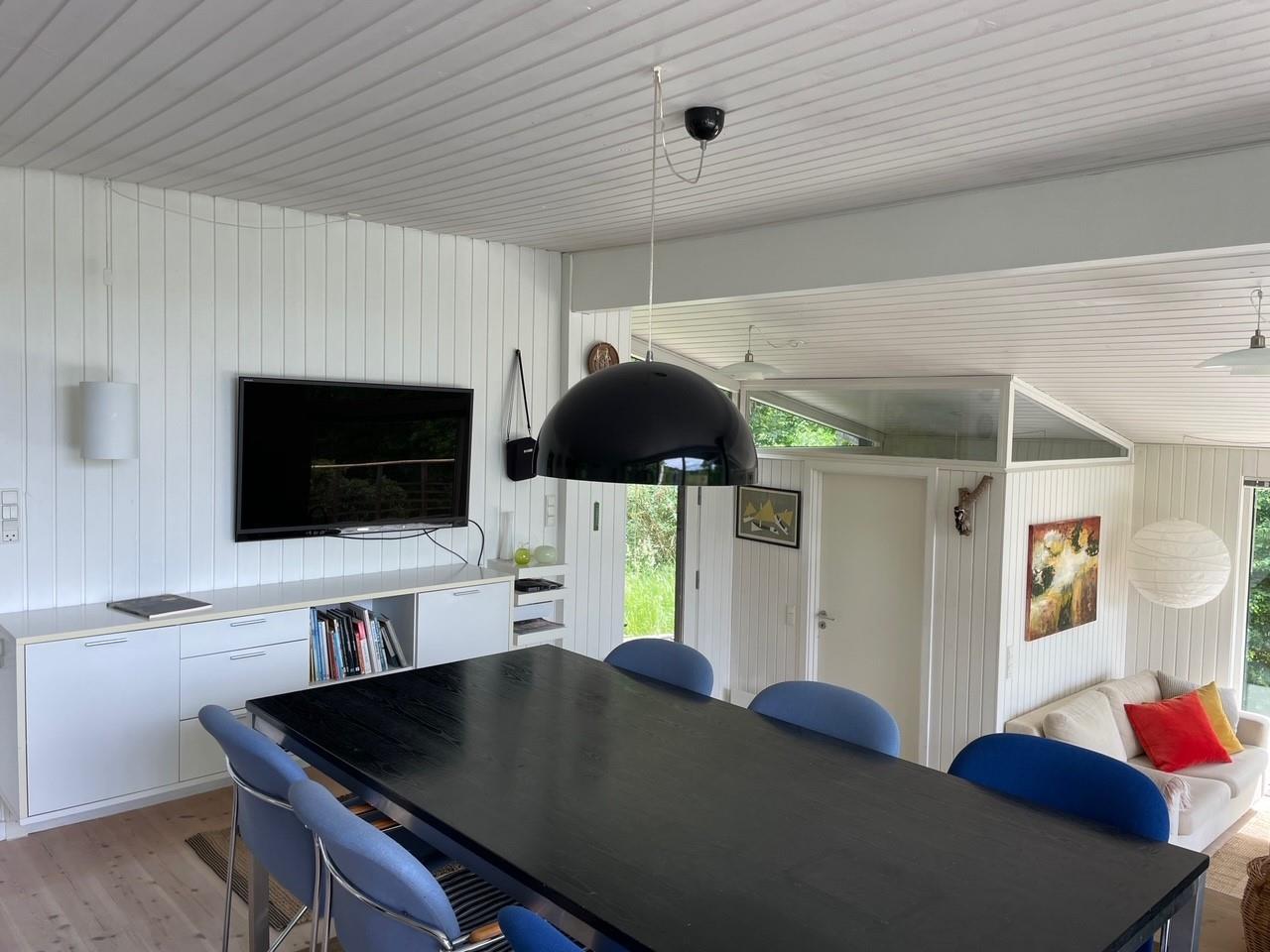 Husets hjerte er den lyse, velmøblerede opholdsstue/alrum med udgang til terrasse, brændeovn, spiseplads til 6 personer samt kabel-TV med danske (inkl. TV2) og tyske kanaler. Det nyere køkken med sorte elementer ligger i åben forbindelse med stue og har induktionskomfur med ovn, køle-/fryseskab, opvaskemaskine og mikrobølgeovn. De 6 sovepladser fordeler sig på 3 lyse soveværelser med dobbeltsenge. Badeværelse med bruseniche, vaskemaskine og tørretumbler. Der er internetadgang.