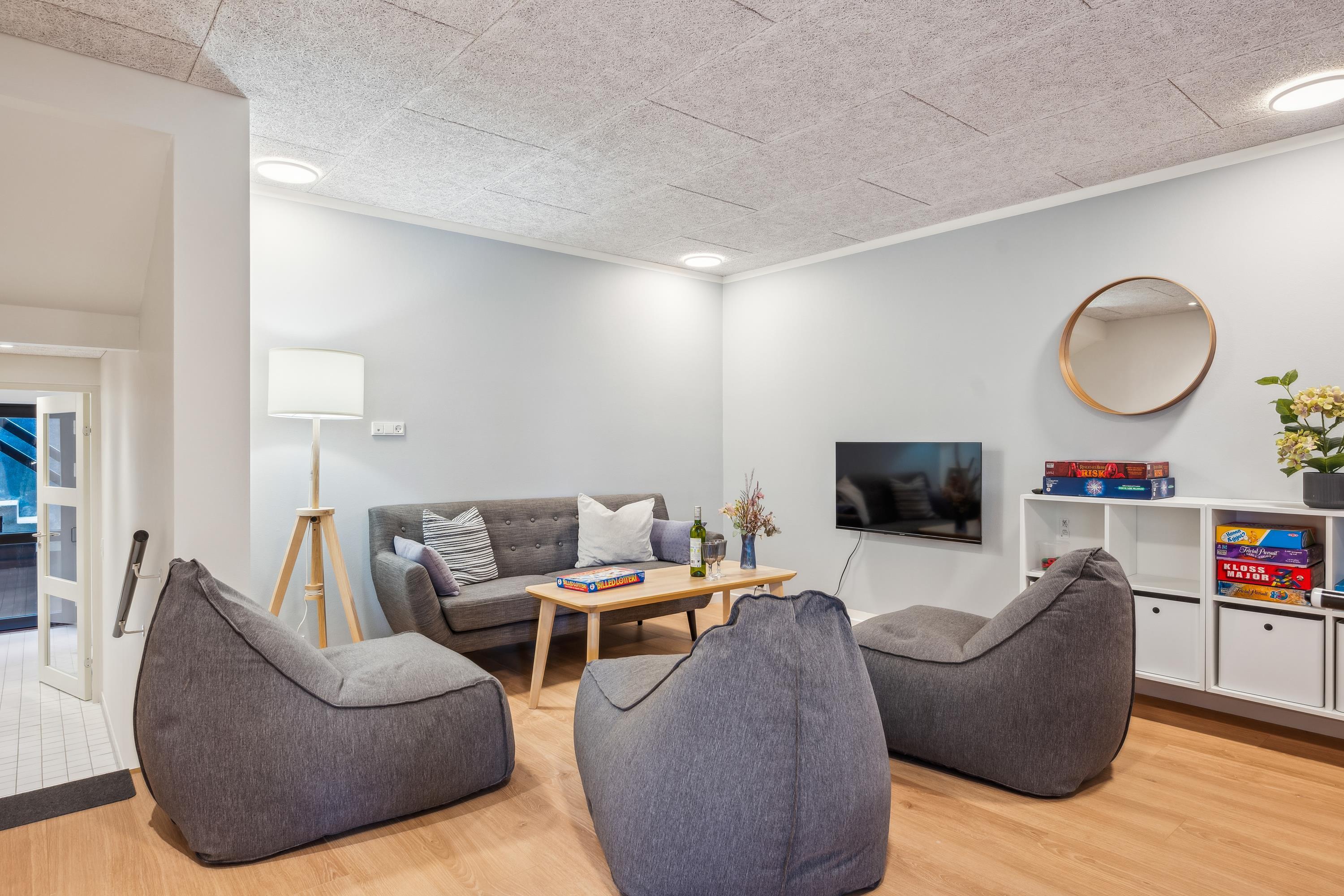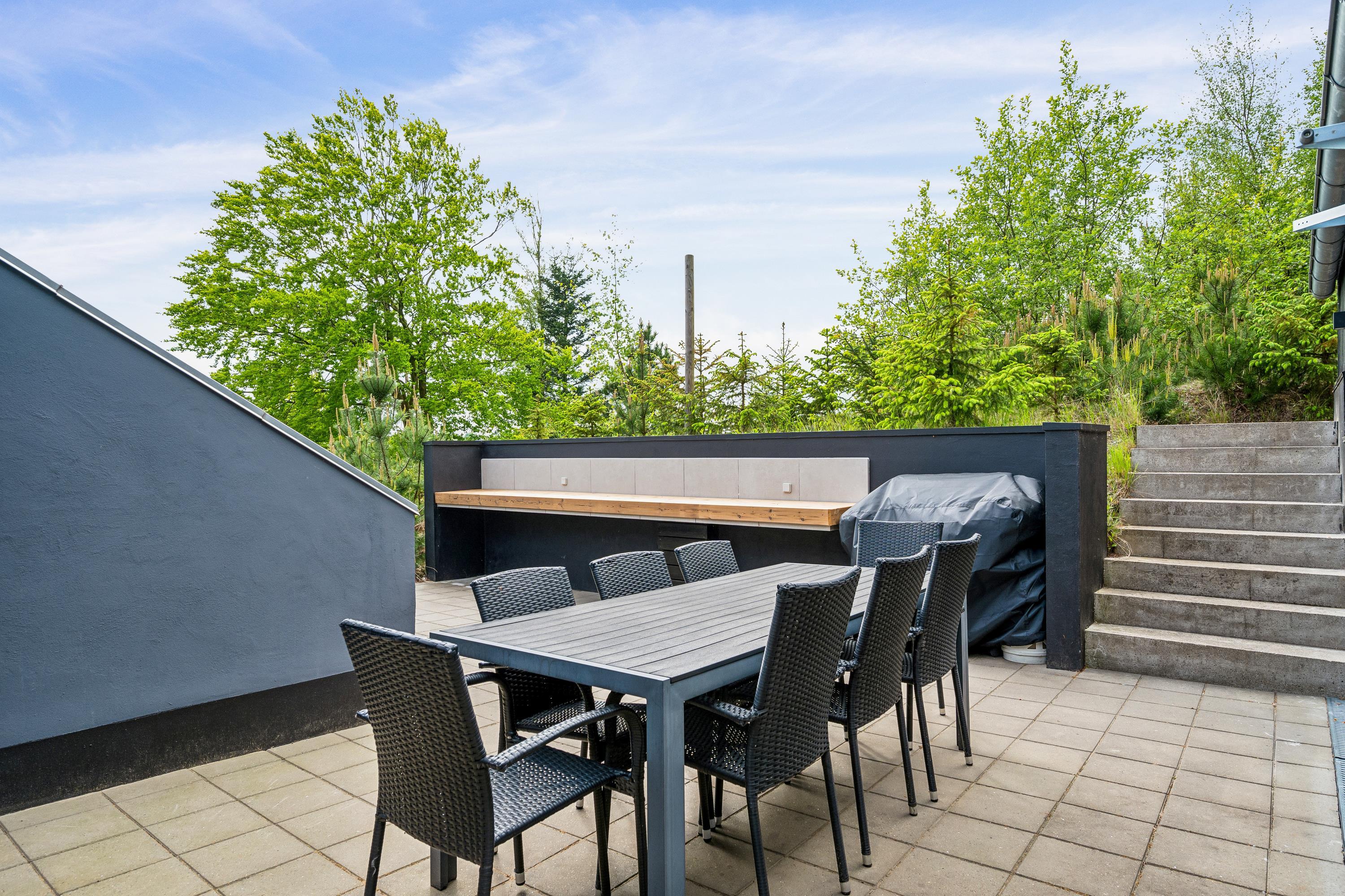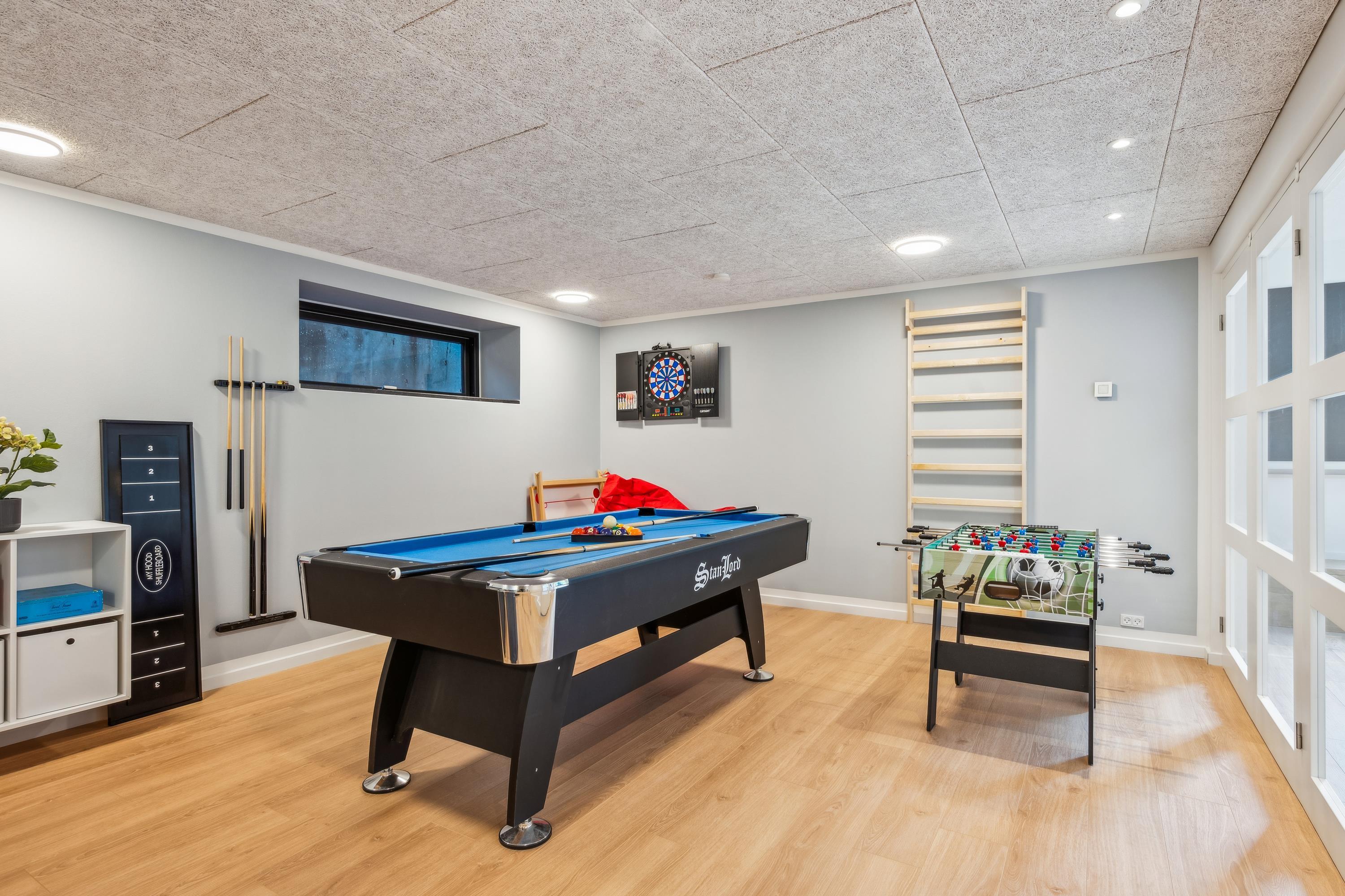 Velkommen til dette fantastiske feriehus ved Femmøller – ideelt til både afslapning og sjove aktiviteter. Dette hus er oplagt til at skabe uforglemmelige minder med familien, og de smukke omgivelser indbyder til sjove oplevelser og ren afslapning. Huset er i forskud plan og øverst finder man den flotte lyse stue, møbleret med gode møbler og med brændeovn. Herfra er der udgang til en skøn stor terrasse med loungemøbler og liggestole. Her finder man også husets fire flotte soveværelser, heraf to med dobbeltsenge og to med enkeltsenge. I entréen er der trappe som fører ned til det store flotte køkken og herfra er der udgang til endnu en terrasse. Her finder man også det ene af husets flotte badeværelser. Fra køkkenet er der en dør som fører ind til det store og velmøblerede aktivitetsrum. Her findes der b.la. billiard, bordfodbold, dart samt diverse spil til fri afbenyttelse. Fra aktivitetsrummet går man videre ned af trappen til husets bryggers med vaskemaskine og tørretumbler. Meget stort og super flot badeværelse med spa-bad og en dobbelt bruseniche samt en stor sauna. Huset opvarmes med luft til vand og er derfor billig i forbrug. Udendørs finder man flere gode terrasser med havemøbler, grill og udekøkken, samt en stor græsplæne, hvoraf et stykke er udlagt til at gro vildt. Huset er ikke egnet til gangbesværede