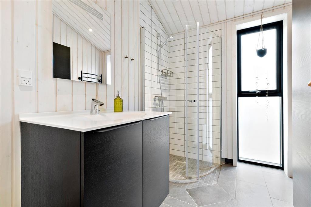 Træd ind i et feriehus, hvor kvalitet og æstetik går op i en højere enhed. Huset er indrettet med 2 flotte badeværelser – det ene med vaskemaskine og tørretumbler – og et lækkert køkken med kogeø og quooker, som indbyder til hyggelige madlavningsstunder. De 3 soveværelser er rummelige og indbydende, med to dobbeltsenge og en dobbeltsovesofa. Ønsker du ekstra eventyr, kan madrasserne fra sovesofaen tages med op på hemsen. Den store stue, med sit imponerende vinduesparti, giver en fornemmelse af, at naturen inviterer sig selv indenfor. Fra stuen har du direkte adgang til en skøn terrasse, hvor du kan lade dagens oplevelser synke ind.