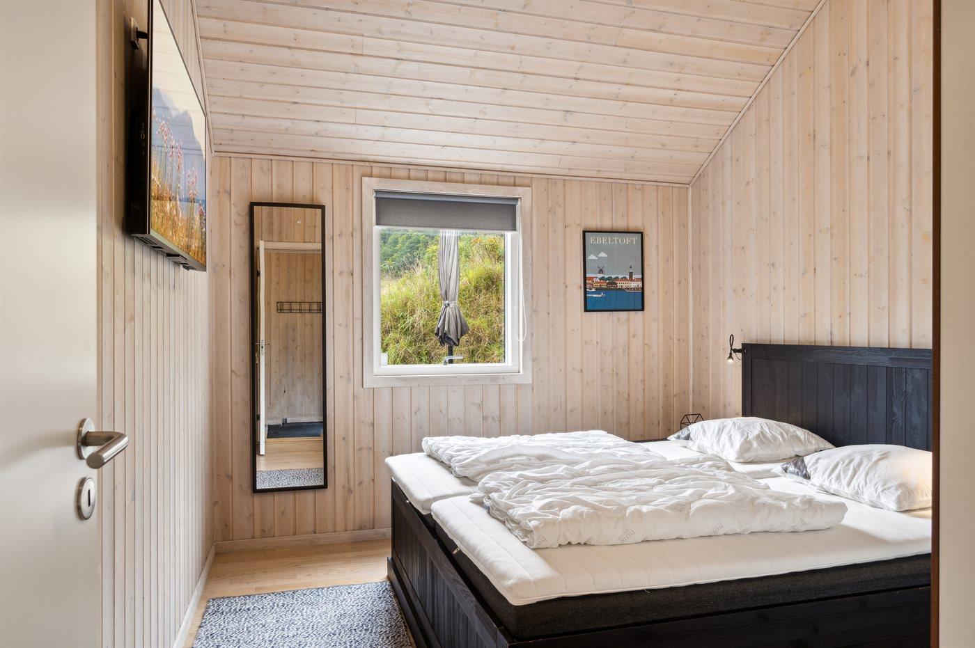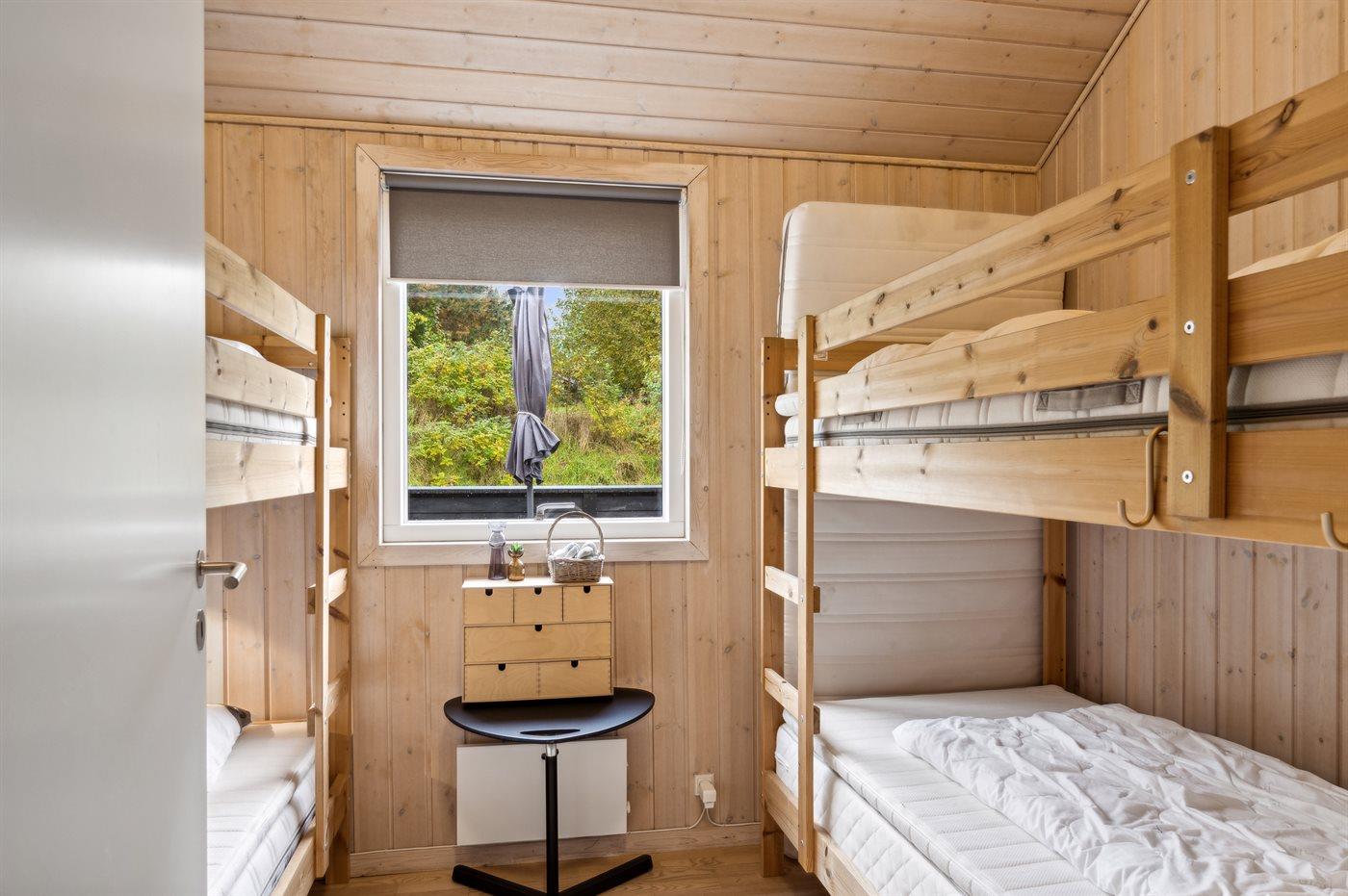 Der er i alt 2 soveværelser. Sovepladserne fordeler sig på: 2 sovepladser i dobbeltseng. 4 sovepladser i køjesenge. Derudover er der 1 stk. barneseng.
