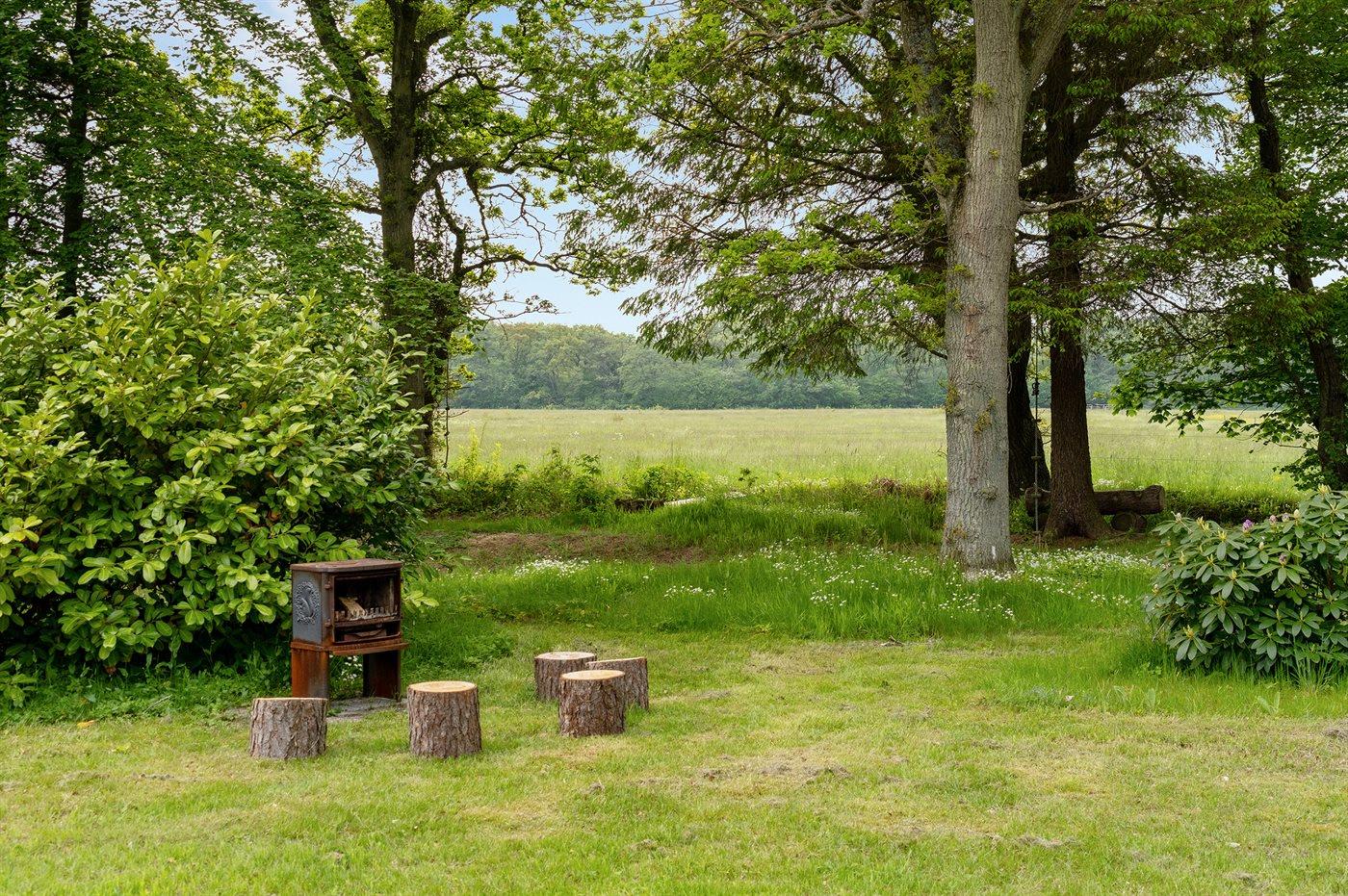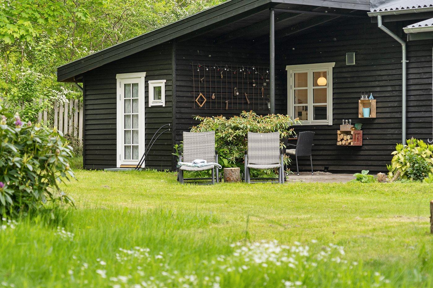 Ferieboligen er beliggende på en 1600 m² stor naturgrund. Der er 500 m til havet. Nærmeste forretning er beliggende i en afstand af 1000 m. Til ferieboligen hører 20 m² terrasseareal. Desuden er der 20 m² overdækket terrasse. Sandkasse. Bålsted. Udendørs bruser med varmt og koldt vand. På lune aftener sørger en udendørs pejs for hyggelig stemning. Grill til rådighed. Parkering ved ferieboligen.