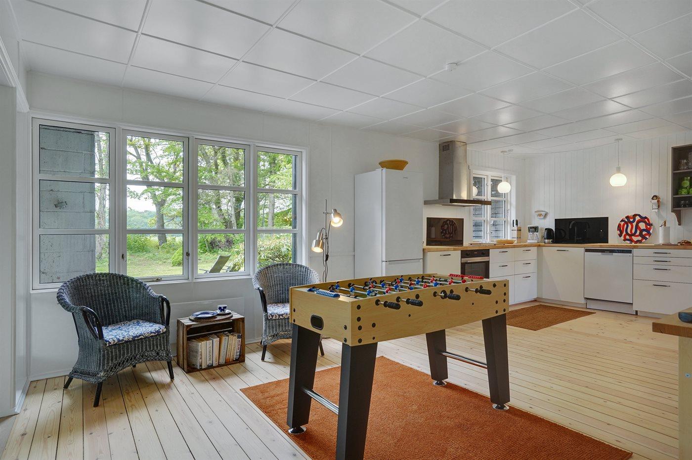 Flot og moderne sommerhus ved Femmøller Strand med naturskøn udsigt, aktivitetsrum og tæt på havet.