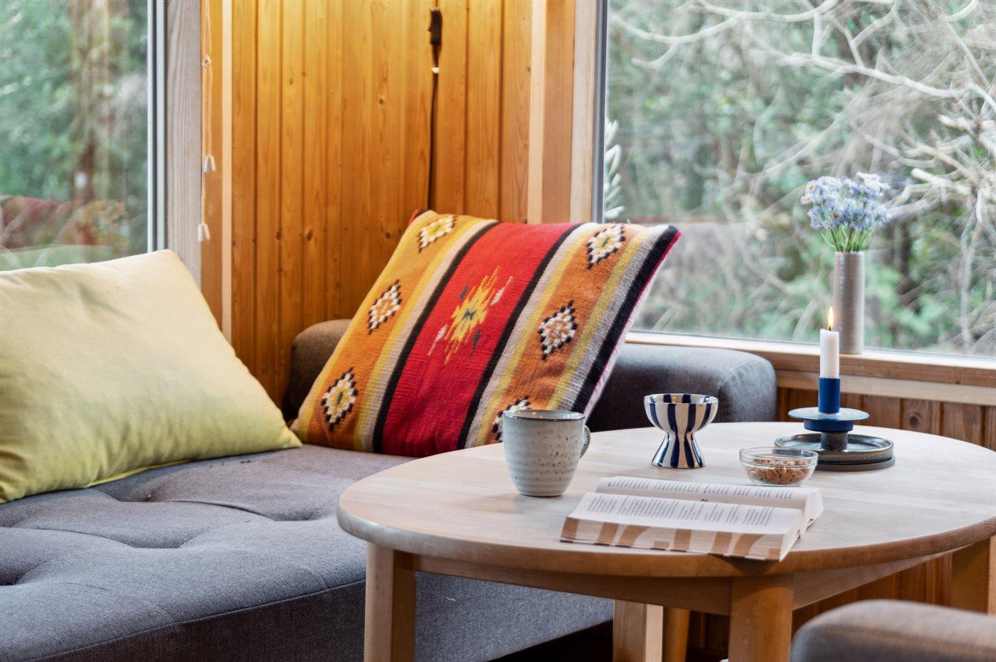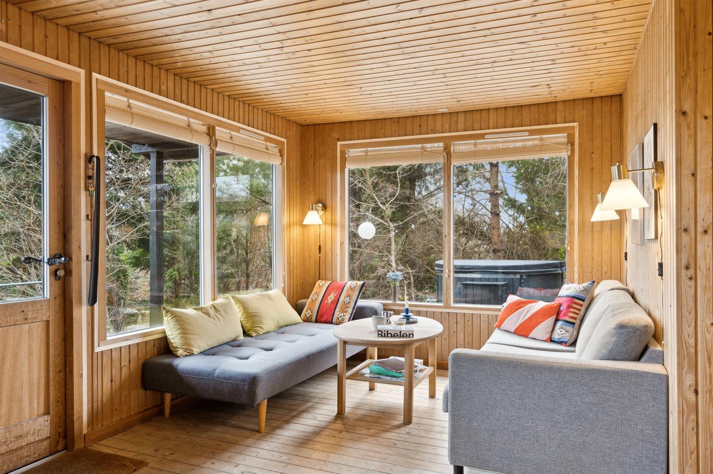 Hyggeligt sommerhus i Femmøller med spa, naturgrund og nærhed til Mols Bjerge og Ebeltoft.