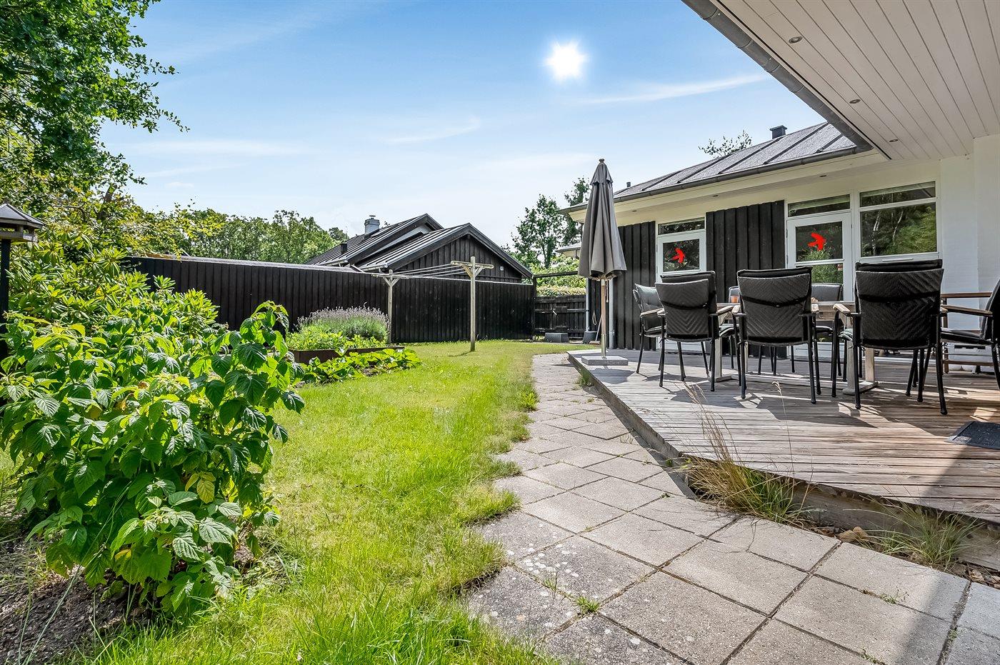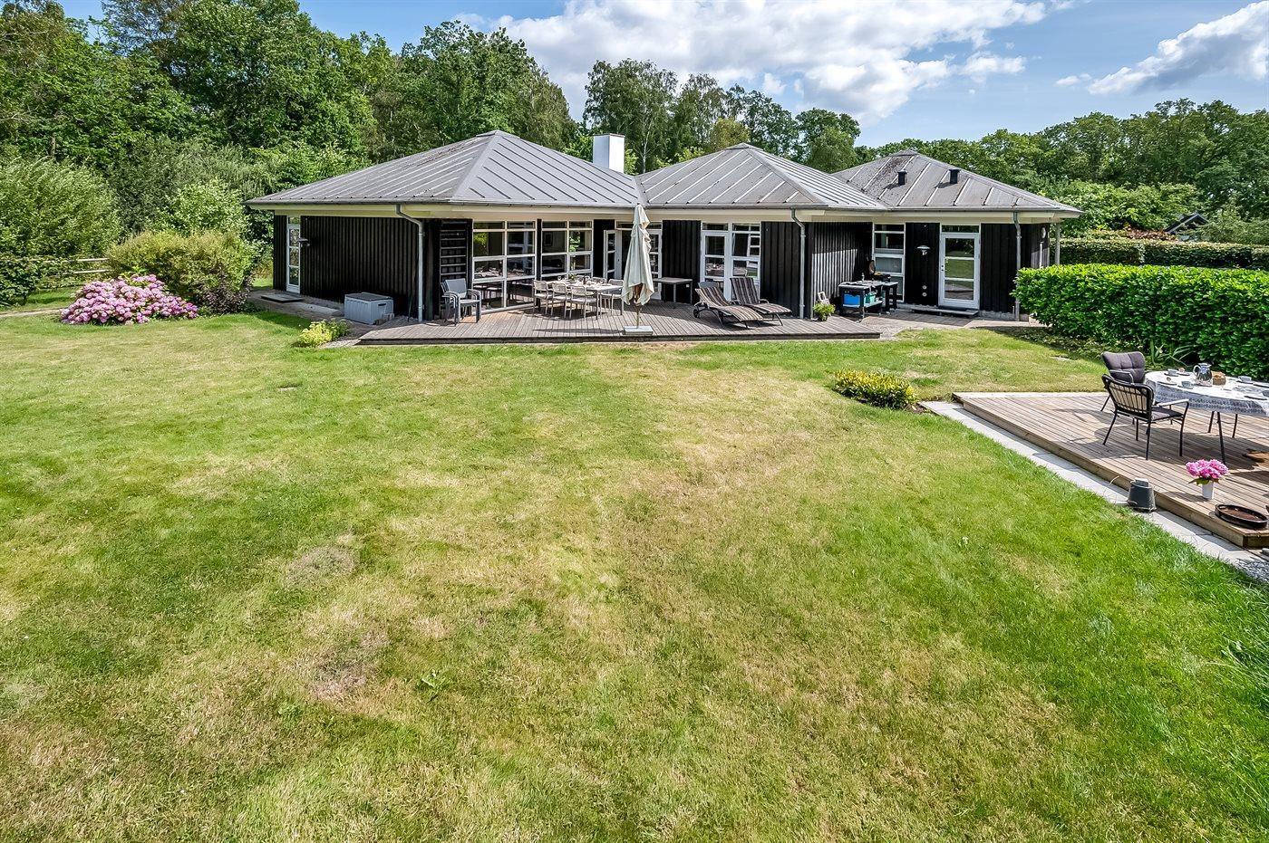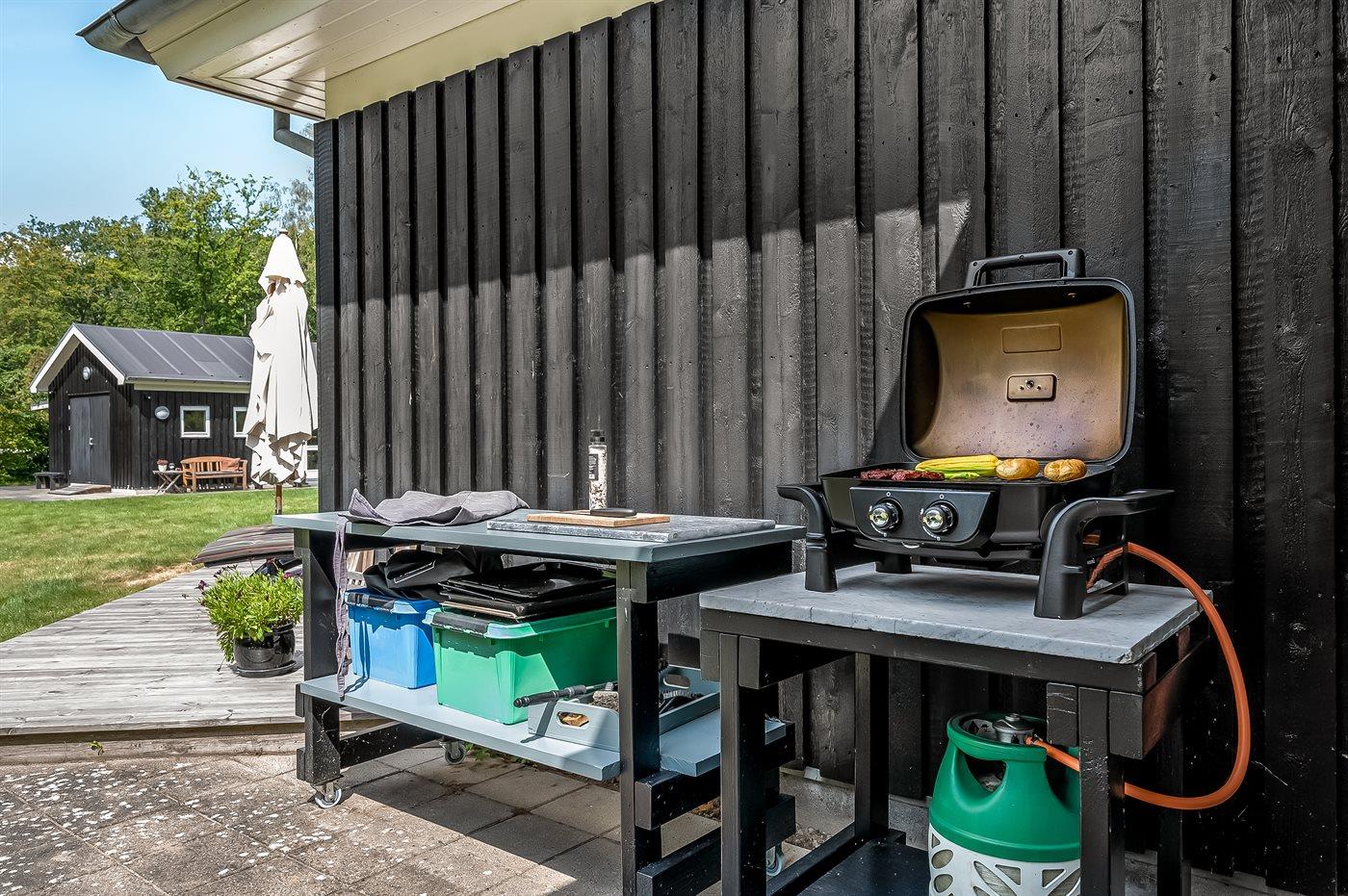 Ferieboligen er beliggende på en 1100 m² stor havegrund. Der er 100 m til havet. Nærmeste forretning er beliggende i en afstand af 1500 m. Til ferieboligen hører åbent terrasseareal. Desuden er der overdækket terrasse. Grill til rådighed. Der er carport til rådighed. Parkering ved ferieboligen.