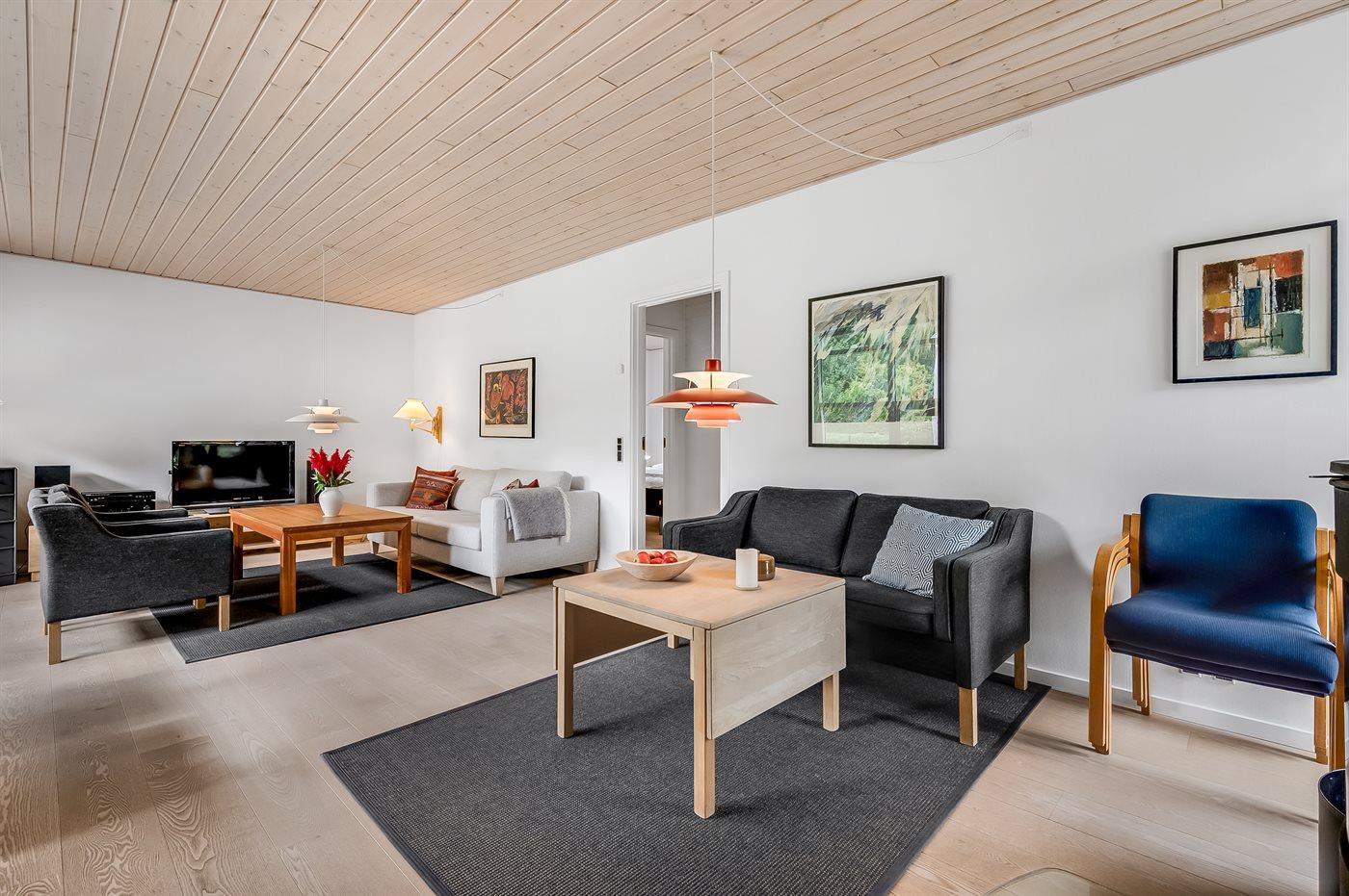 Huset er indrettet med 3 gode soveværelser med fuldstørrelse dobbeltsenge, fordelt på to afdelinger. Til begge afdelinger hører hver sit badeværelse. Der findes en dejlig stor stue og du har adgang til terrassen fra næsten alle rum i huset. Det veludstyrede køkken og spisestuen er kombineret og herfra er der også direkte forbindelse til den dejlige terrasse, som vender ud mod den velholdte og private have.