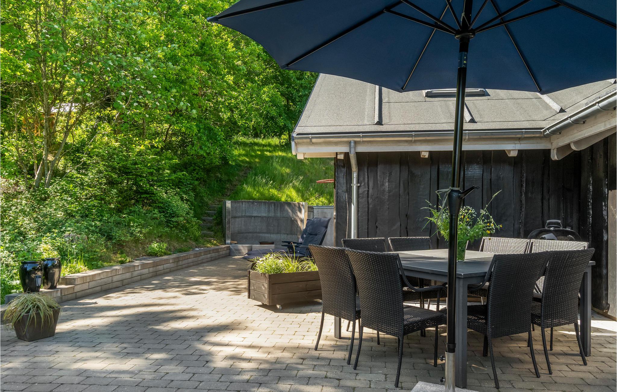 Den store terrasse får både sol og skygge, så her kan I virkelig suge sommervejret til jer. Der er noget beroligende over at læne sig tilbage og kigge ud på landskabet – og hvem ved, måske ser I et rådyr komme forbi?