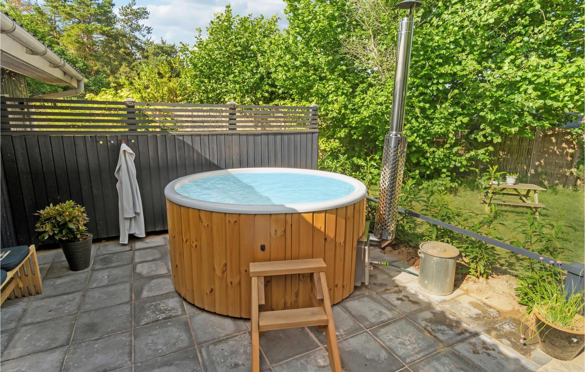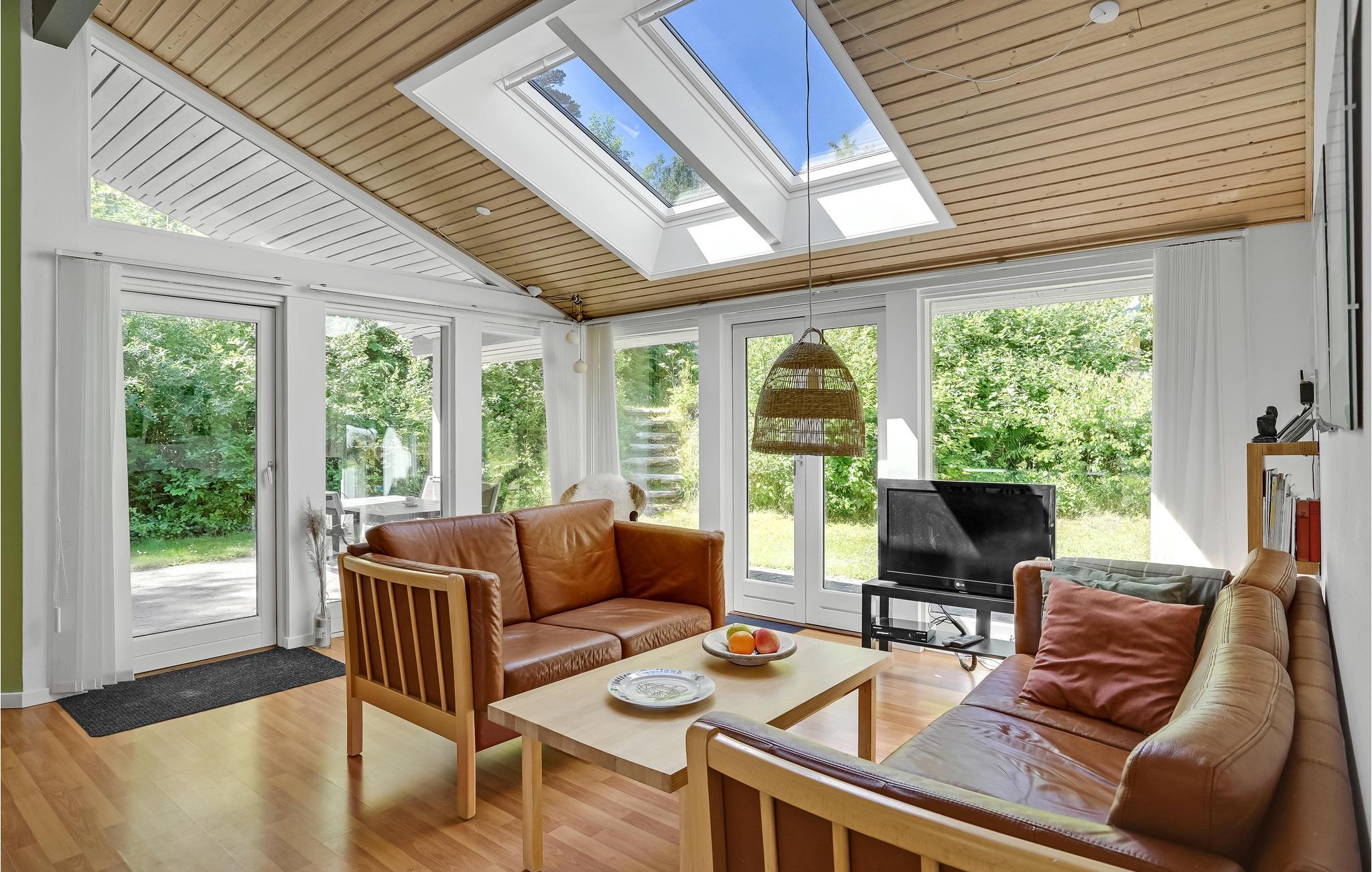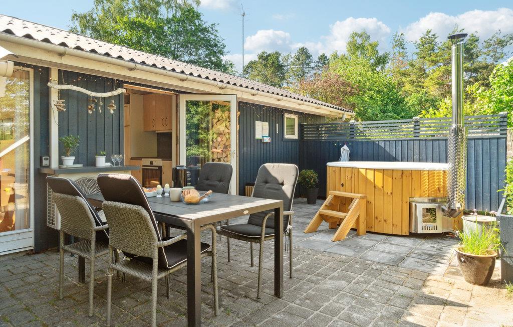 Hyggeligt sommerhus i Femmøller Bakker med adgang til natur og wellnessfaciliteter.