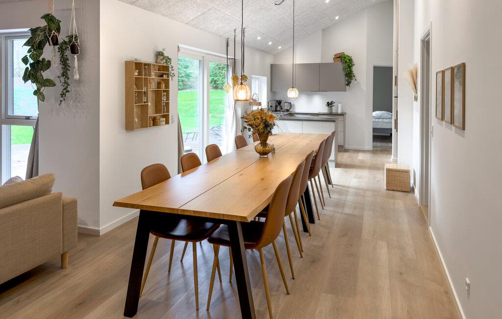 Velkommen til en kombination af flotte indretningsløsninger, afdæmpede farver og moderne møbler. Her finder I et sted, hvor I kan falde til ro og nyde nogle afslappede stunder – uanset om I holder en hyggelig spilleaften, streamer en podcast eller tilbringer fornøjelige timer med leg og sjov i saltvandspoolen.