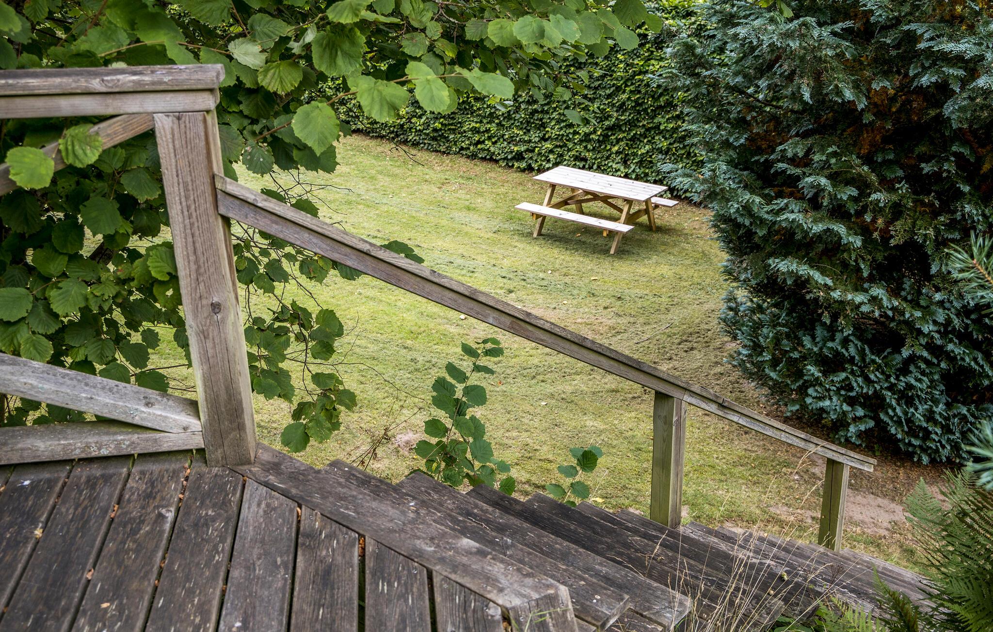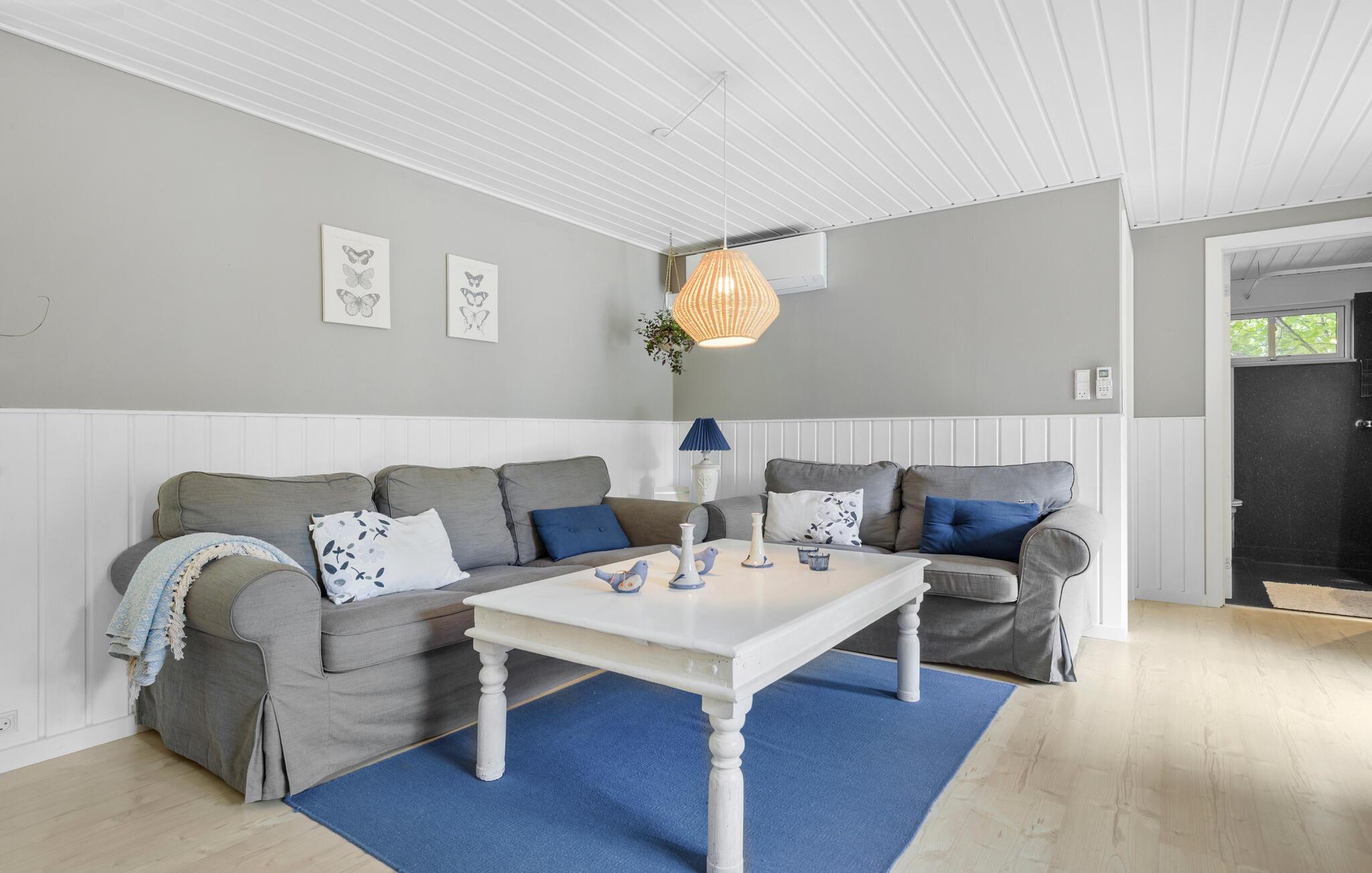 Lyst og hyggeligt sommerhus med to soveværelser og stor naturgrund nær børnevenlig strand.