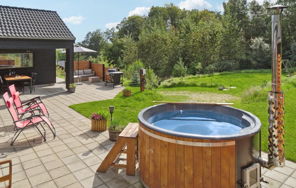Eksklusivt feriehus i Femmøller med smuk udsigt, spabad, sauna og moderne faciliteter, perfekt til luksusferie.