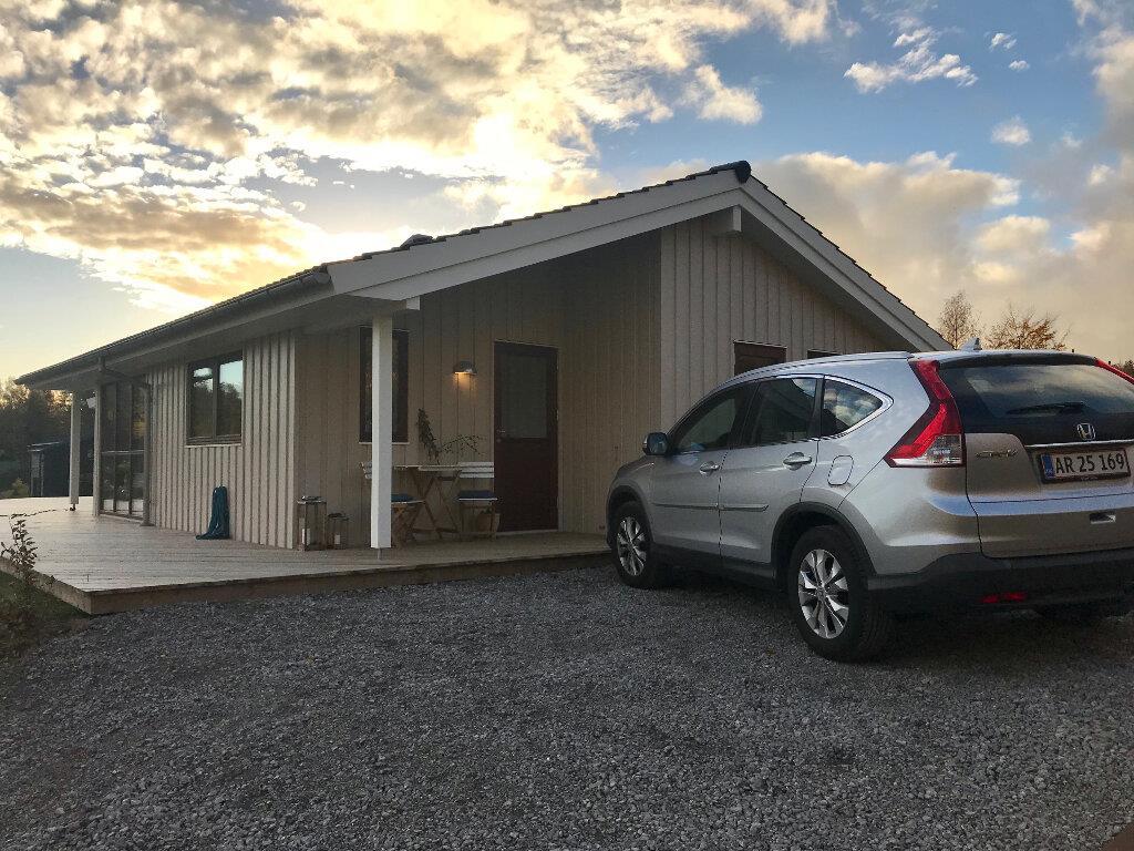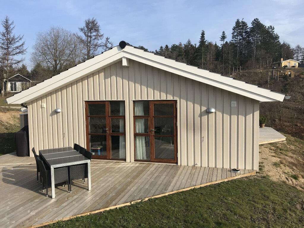 Nyere hus (2018) med helt speciel høj beliggenhed, og en fantastisk udsigt. Huset ligger i Femmøller/Mols Bjerge og kan rumme 8 personer. Her er tre dobbeltværelser med dobbeltseng. I et aktivitetsrummet er der en 2 personers sovesofa (slås ud fra sofa - kan også bruges som alm. sofa), og her er også en stor hems med madrasser til to personer, og hvor mindre børn også kan boltre sig.