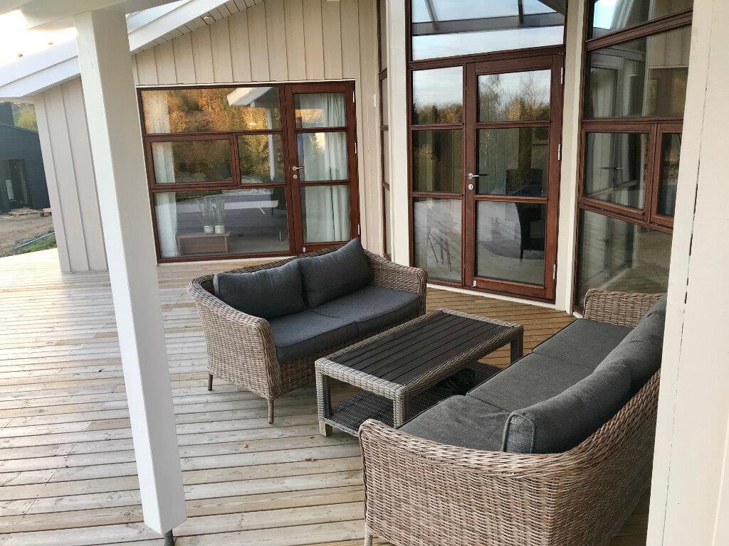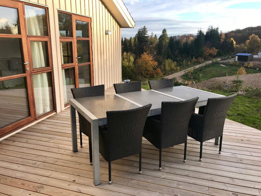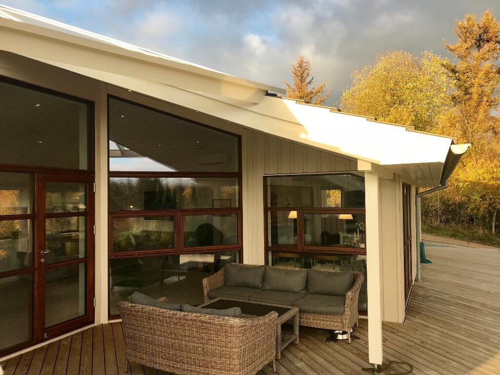 Der er flere terrasser udenfor, hvor man kan sidde og slappe af og nyde den helt unikke udsigt. På den åbne terrasse på 15 m2 er en markise med motordrev. I tilknytning til denne terrasse er der et shelter med plads til 4 personer. Der er naturligvis også havemøbler og en grill, et stort, flytbart bål-fad og en Morsø Pizzaovn. Har I har lyst til at overnatte ude og komme tættere på naturen, er der en shelter (helt tæt på huset) ved vest-terrassen med fin udsigt mod øst.