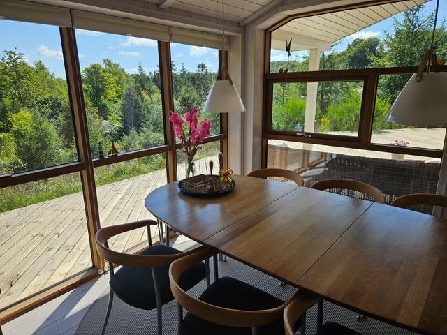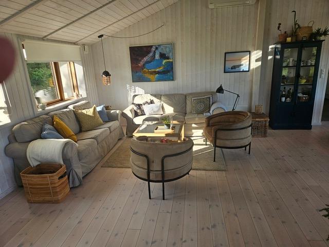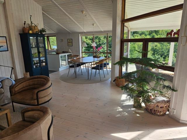Huset er på hele 146 m2, har gulvvarme og med varmepumpe. Udover at ligge midt i en enestående natur, så er huset fuldt udstyret til den perfekte ferie. Her er åbent køkken i forbindelse med den store stue, hvor der bl.a. er brændeovn. Der er TV med både danske og internationale kanaler, ligesom der naturligvis er internet.