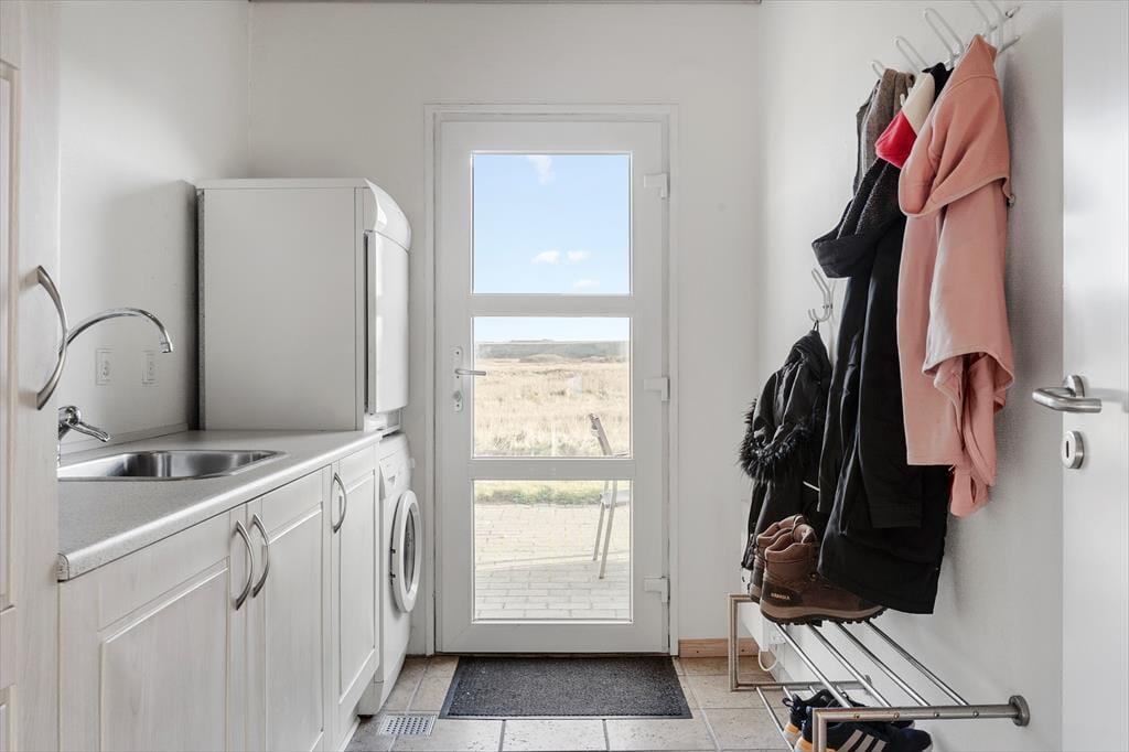Gåskærvej 95 h ligger dejligt placeret i Ferring Strand – tæt på både havet og spændende udflugtsmål i lokalområdet. En kort gåtur fører dig direkte ned til den brede sandstrand ved Vesterhavet, hvor der er god plads til både badeture, sandslotte og lange gåture i strandkanten. Vil du opleve mere af området, kan du tage cyklen og følge stierne til det ikoniske Bovbjerg Fyr, som byder på storslået udsigt og ofte har udstillinger og café. Kunstinteresserede bør heller ikke gå glip af Jens Søndergaards Museum, der ligger lige i nærheden. Og hvis du gerne vil tage på en lille togtur, finder du stationen i Vejlby Klit blot få minutters kørsel væk – herfra kan du nemt komme til Lemvig eller Thyborøn, hvor du kan opleve vestjysk kystkultur, besøge hyggelige caféer og handle lokale specialiteter.
