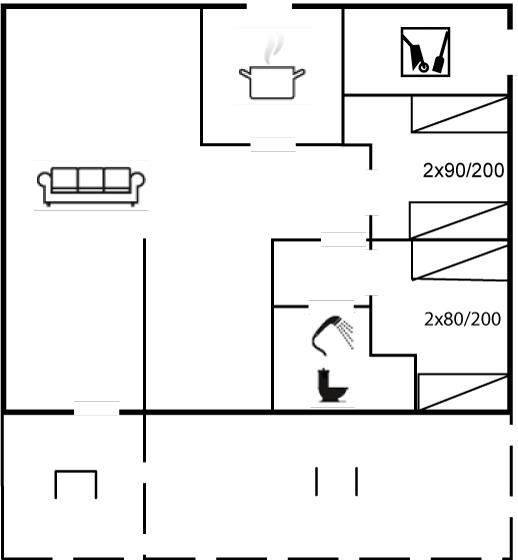 Der er i alt 2 soveværelser. Sovepladserne fordeler sig på: 4 sovepladser i enkeltsenge. Derudover er der 1 stk. barneseng.