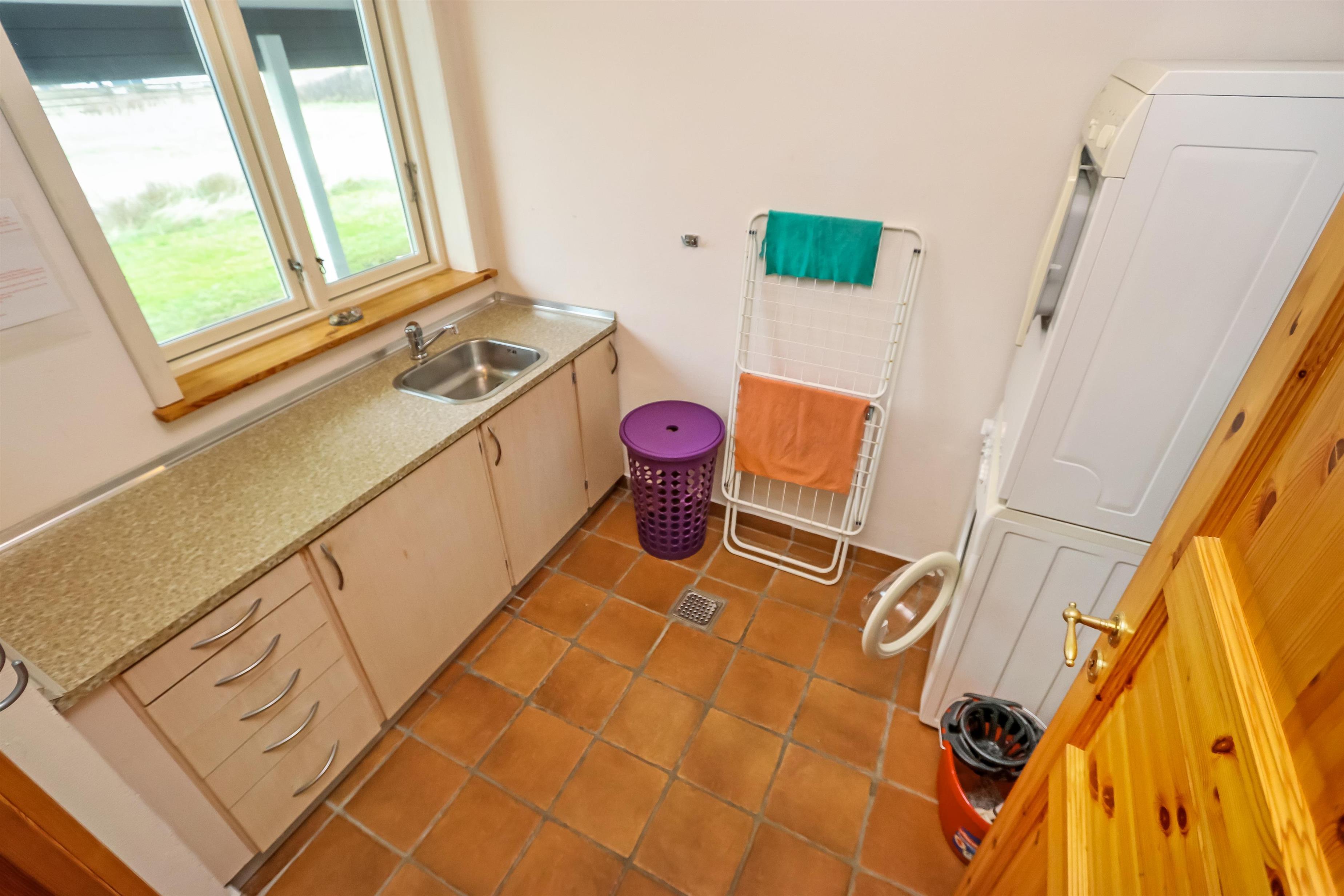 Dette dejlige og meget velholdte bjælkehus er meget rummeligt og pænt møbleret. Flot udstyret køkken med elkomfur, køleskab med frostboks, mikroovn, opvaskemaskine. I køkkenet er der desuden et spisebord med stole og en skøn brændeovn som sammen med varmepumpen sørger for en hyggelig og billig varme, fra køkkenet er der også udgang til terrassen. Stor stue med hjørnesofa og TV med parabol og dk-antenne, stereoanlæg med CD samt DVD, i stuen er der et ekstra spisebord med stole samt et skrivebord, hvor man kan sidde med sin computer og arbejde. Fra stuen er der udgang til en dejlig terrasse. Stort badeværelse med toilet, håndvask, bruser, infrarød sauna-kabine og gulvvarme. I Indgangspartiet er der god plads til at hænge overtøjet samt sætte sko og støvler. Herfra er der indgang til et bryggers hvor vaskemaskine og tørretumbleren er, her er desuden en ekstra håndvask. 3 store og dejlige soverum som er indrettet med 1DS + 1DS + 2S. Til de mindste gæster er der barneseng og højstol. Har man el-bil eller en Plug-In hybrid, så er der ved Ladeboks til Type 2 ladestik, der kan lade op til 11 kWh. Husdyr er ikke tilladt. Ikke rygerhus.