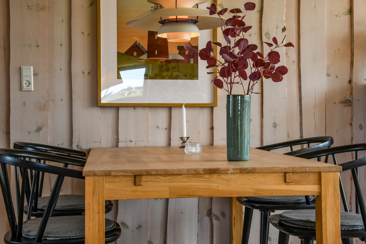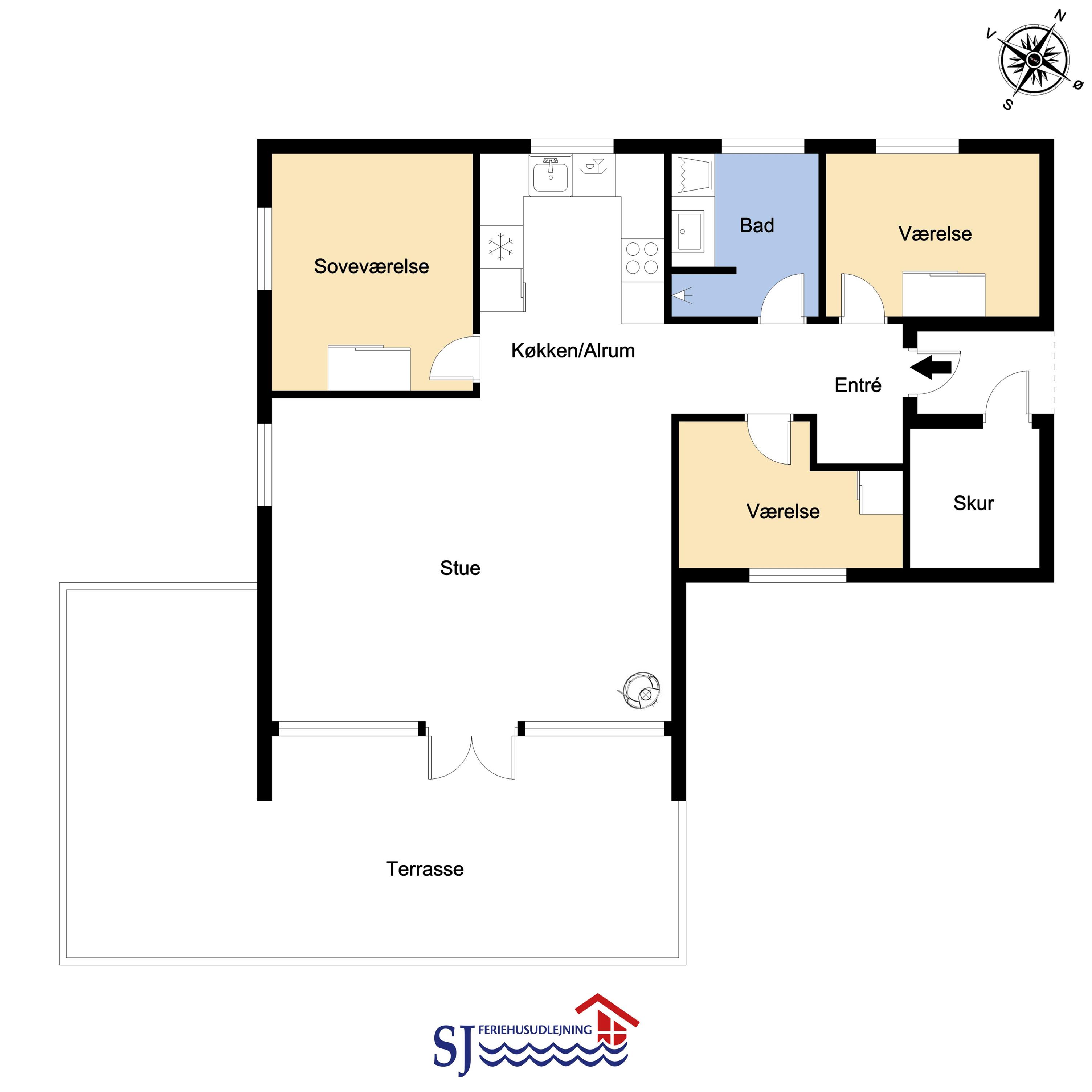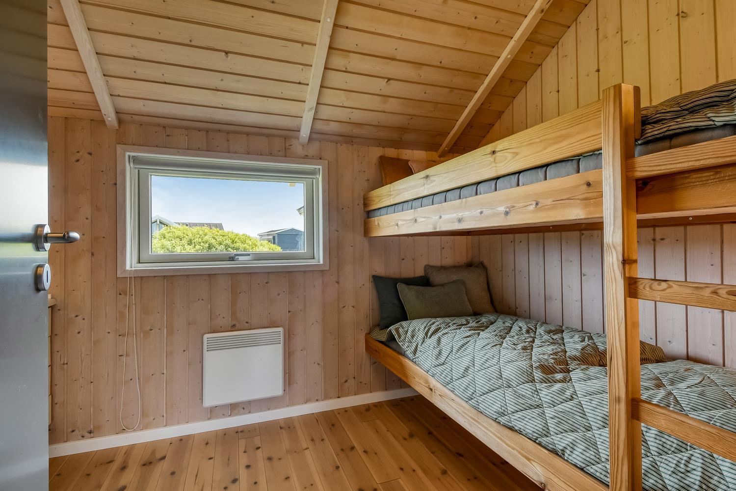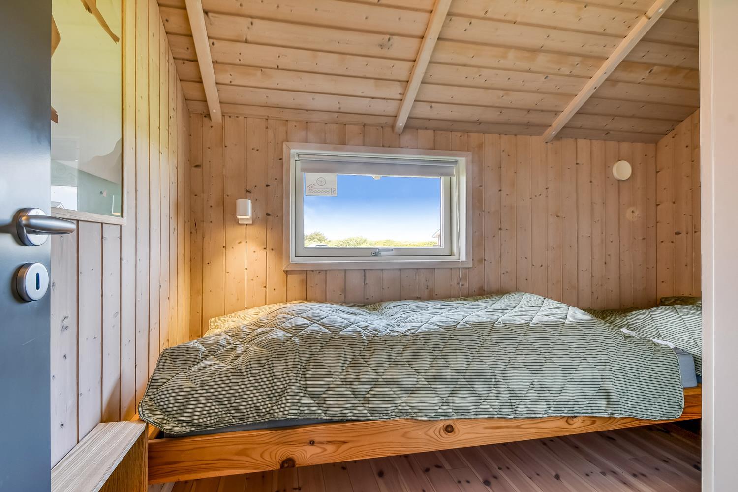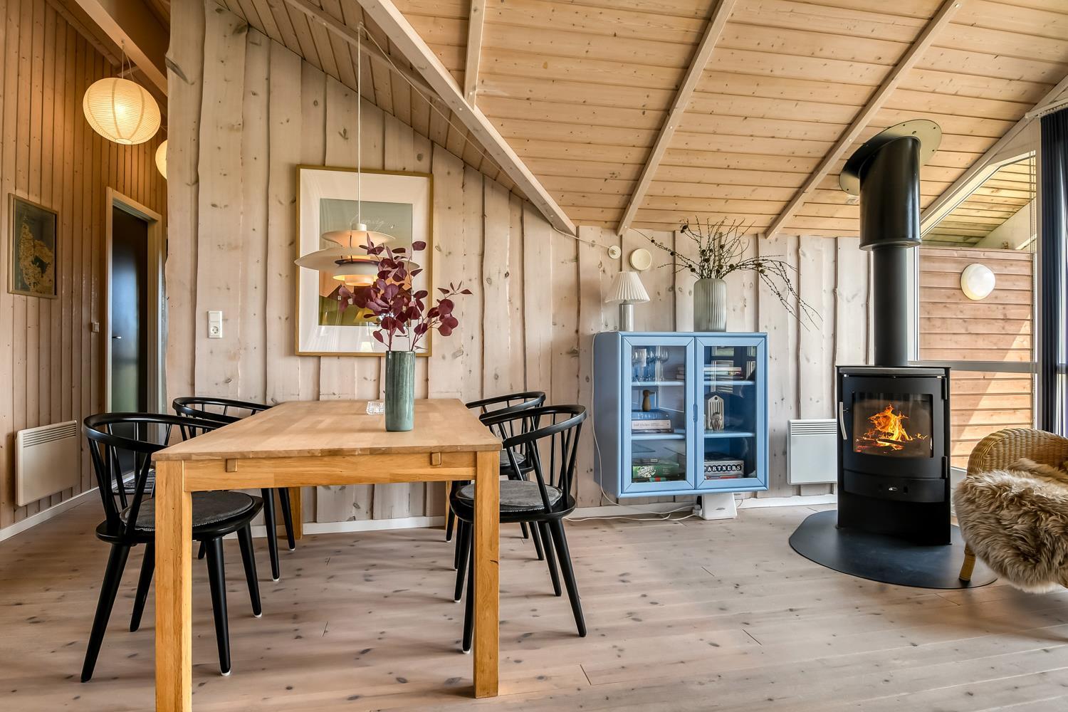 Så snart man har hentet nøglen til huset kan ferien begynde. Man bliver mødt af et hyggeligt indrettet hus på 70 m2 som er bygget 2005. En lille entré byder velkommen til et lyst og indbydende opholdsrum. Opholdsrummet består af en stor og godt udnyttet stue med loft til kip og et køkkenhjørne. I stuen er der et stort vinduesparti der giver et godt lysindfald og blik på den nye terrasse. Desuden er der hyggelige polstermøbler og fjernsyn med danske og tyske kanaler. Brændeovnen bidrager til god opvarmning og ekstra hygge på køligere dage, og lænestolen lige ved siden af indbyder til afslapning ved f.eks. at læse en bog. Køkkenhjørnet er veludstyret med blandt andet glaskeramisk komfur, emhætte, køle-/fryseskab, opvaskemaskine og mikroovn. I huset er der et fint lyst badeværelse med toilet, håndvask og bruser og der er også en vaskemaskine. Badeværelse opvarmes med gulvvarme. Til sidst er der tre hyggelige soveværelser. Et værelse er med dobbeltseng, det andet værelse er med to enkeltsenge og det sidste værelse er med en køjeseng.