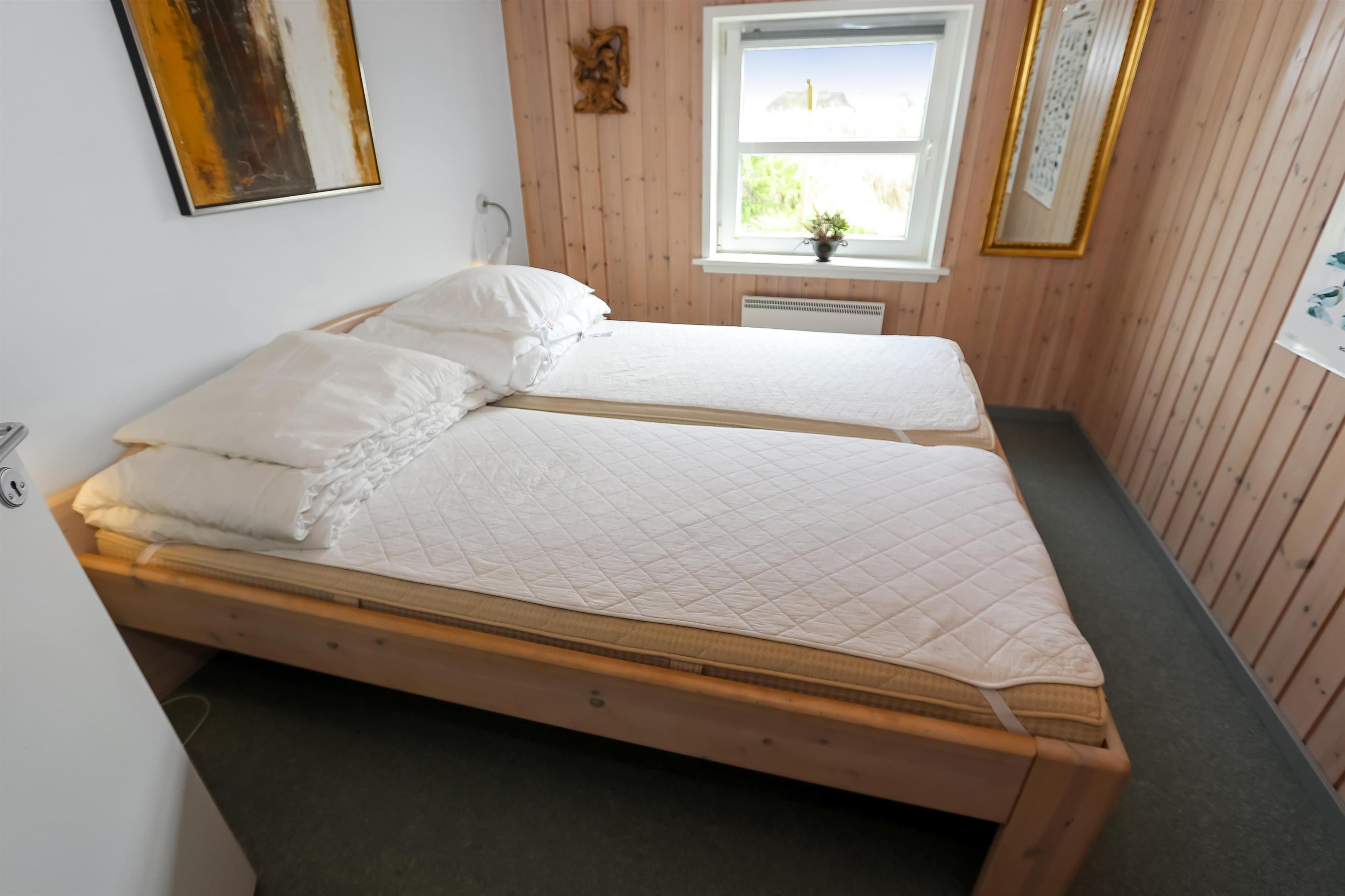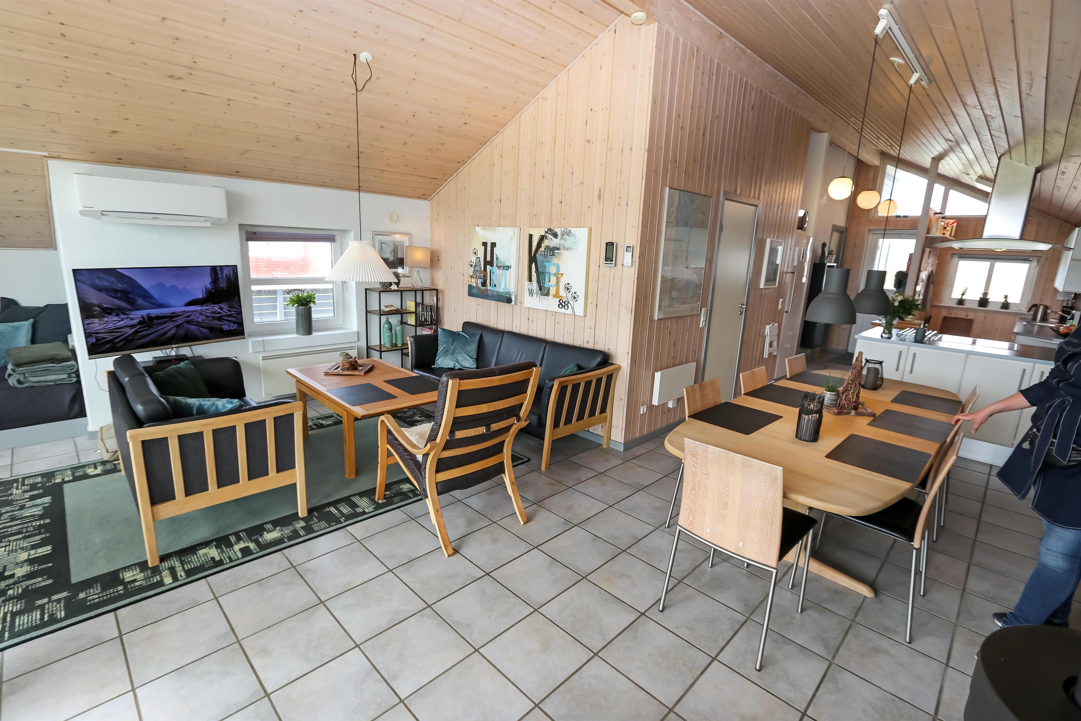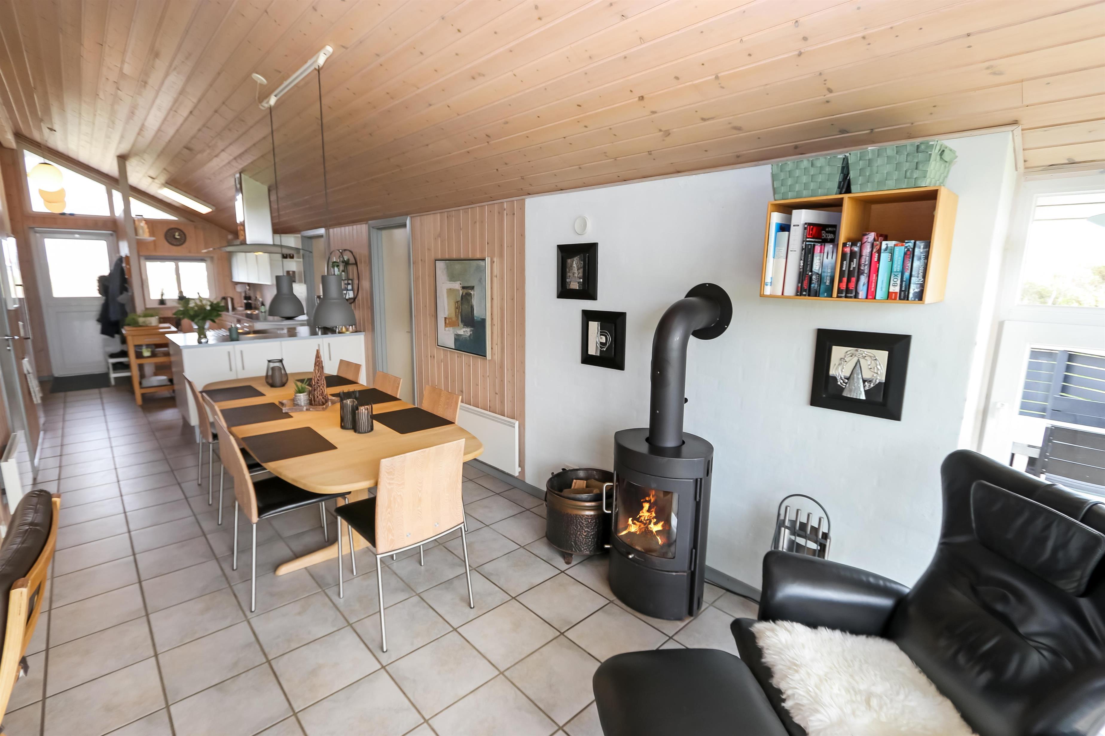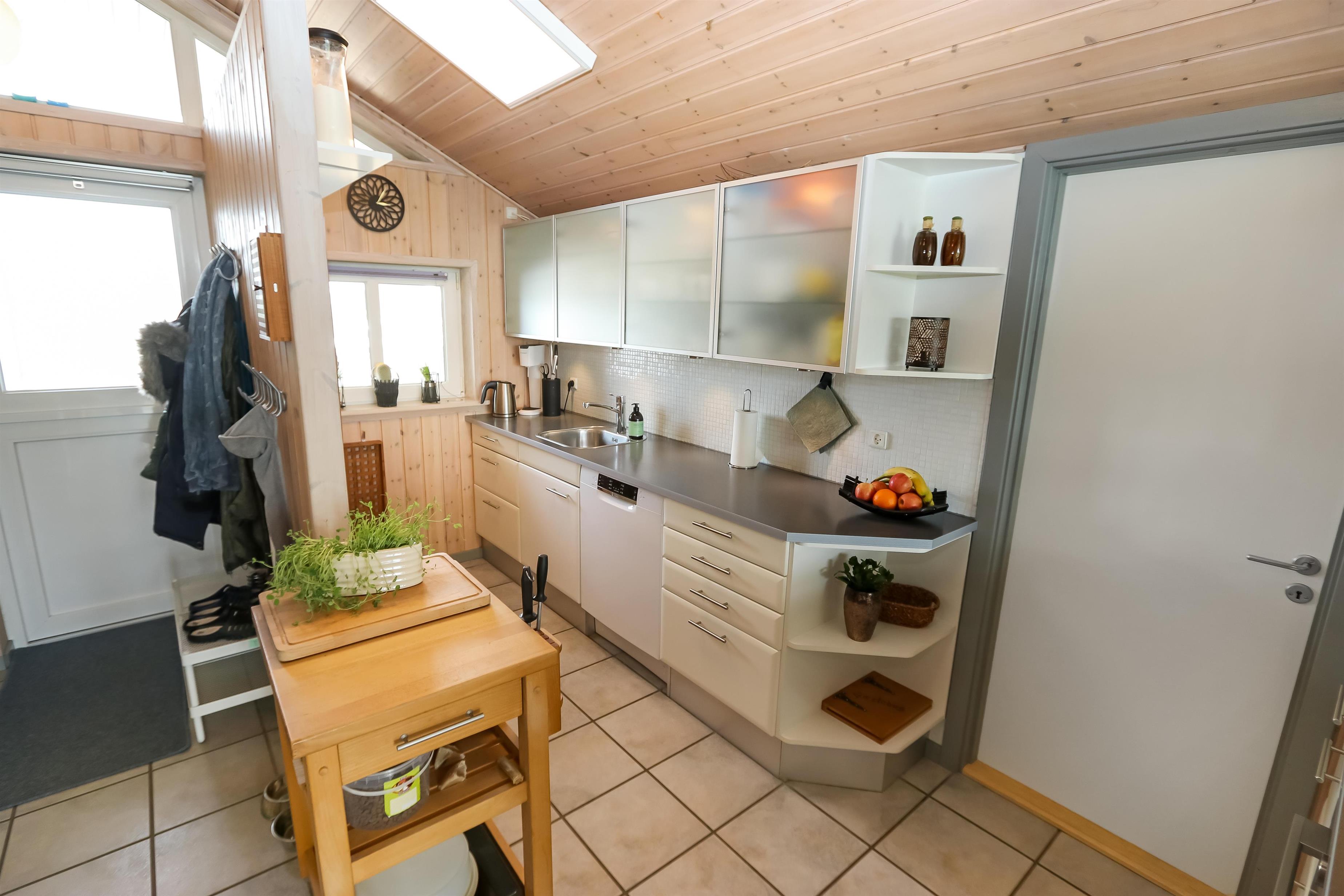 Godt udnyttet feriehus på ca. 105m2 som er bygget i 2003. Huset har 3 soveværelser (1DS, 1DS+2KS). Alle soverum har gulvtæpper. Huset er smagfuldt og praktisk indrettet i kvalitetsmaterialer og er holdt i flotte, afstemte farver. Allerede når I parkerer bilen lige ved huset bliver I klar over at det er noget specielt. Flot køkkenhjørne, byder jer velkommen. Køkkenhjørnet har alt i hårde hvidevarer og i service og køkkengrej. Der er keramiske kogeplader, emhætte, indbygningsovn, mikroovn, opvaskemaskine, køleskab samt separat fryser i teknikrums. I opholdsstuen er der bl.a. et dejligt spisebord tæt ved køkkenet, fladskærms-TV med tyske og danske kanaler, Chromecast, DVD-afspiller, bluetoothhøjtaler med mulighed for streaming fra din telefon eller medbragte device, læder møbler samt en hyggelig brændeovn der sammen med den opsatte varmepumpe er med til at minimere el-regningen. Opholdsrummene er bygget i kip og har praktiske klinkegulve. Det får huset til at fremstå luftigt, moderne og meget rengøringsvenligt. Flot badeværelse med toilet, håndvask, muret bruseniche, klinkegulv med gulvvarme, vaskemaskine, tørretumbler og nedsænket wellnesafdeling med spabad og direkte adgang til saunaen. Ekstra badeværelse med toilet, håndvask, bruser og klinkegulv med gulvvarme. Ikke ryger hus. Max 2 husdyr tilladt. Der er gratis brænde til brændeovnen i skuret
