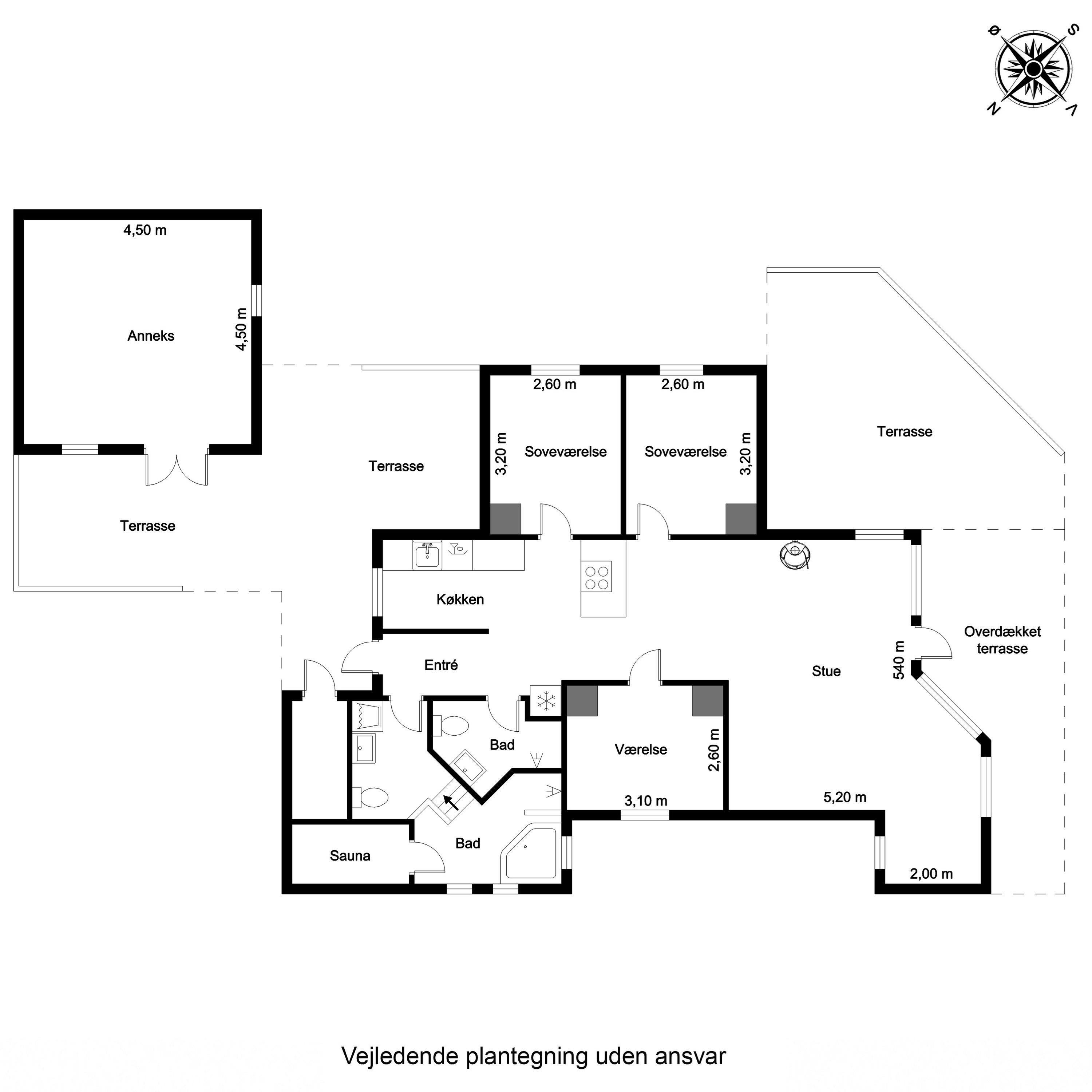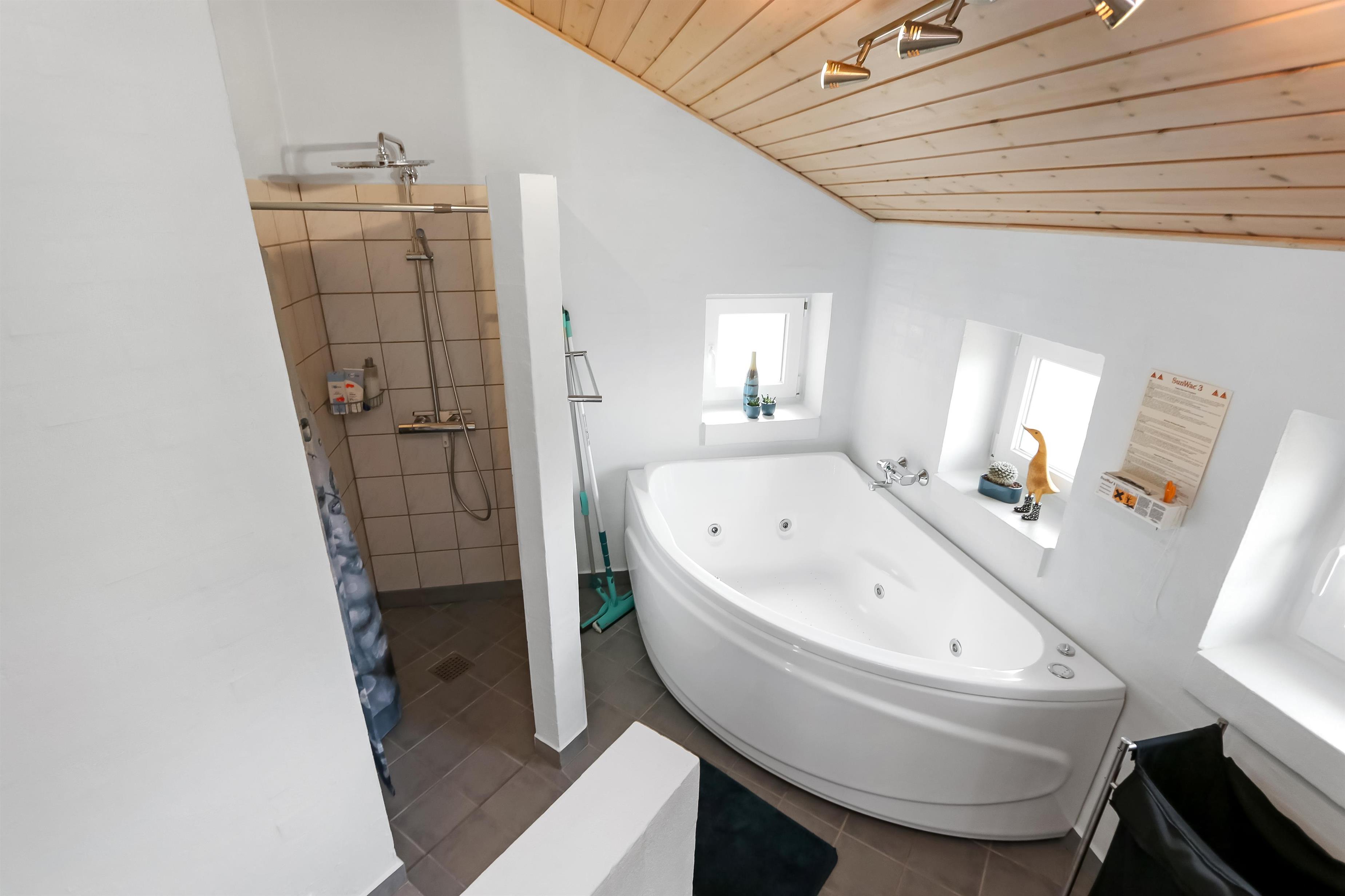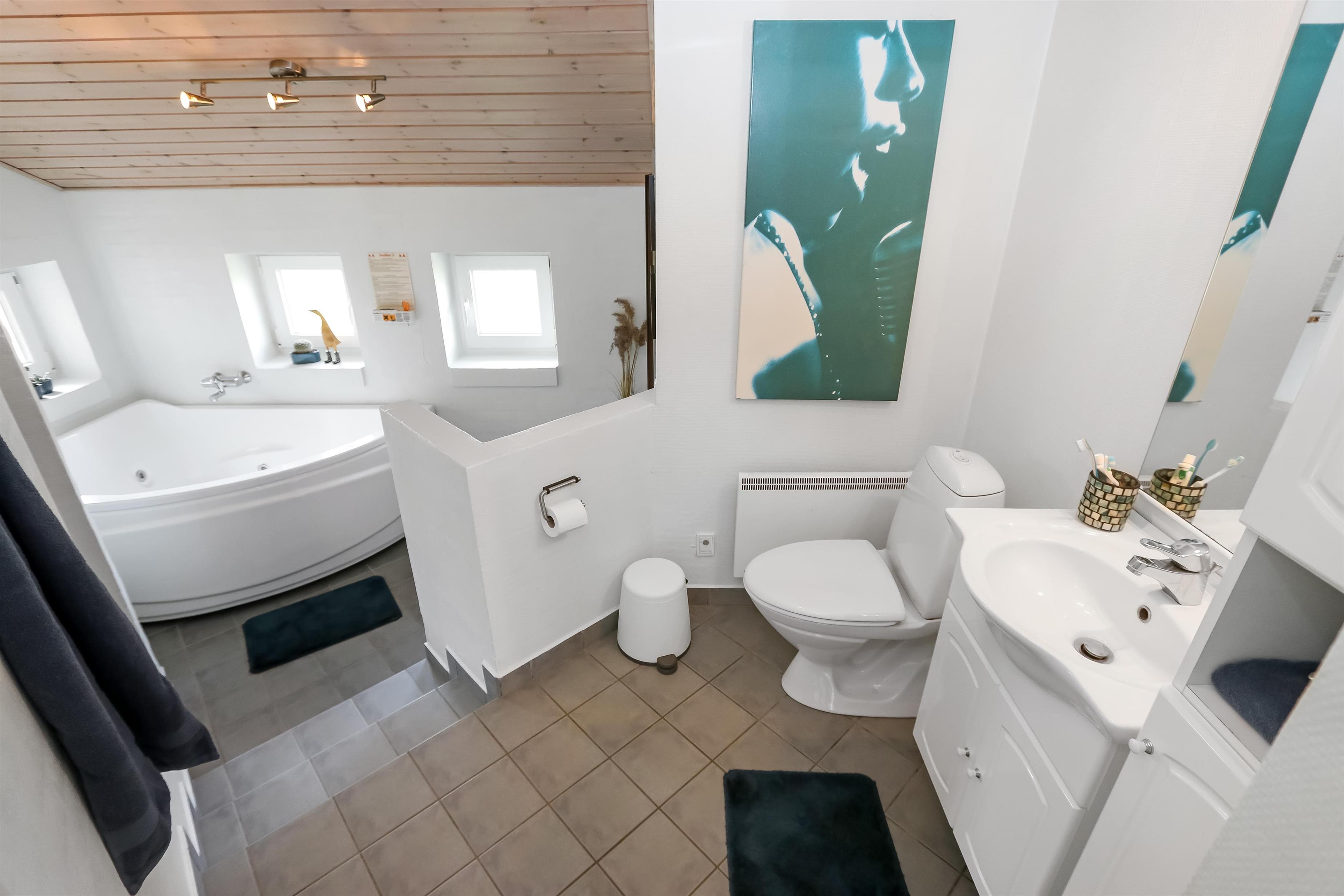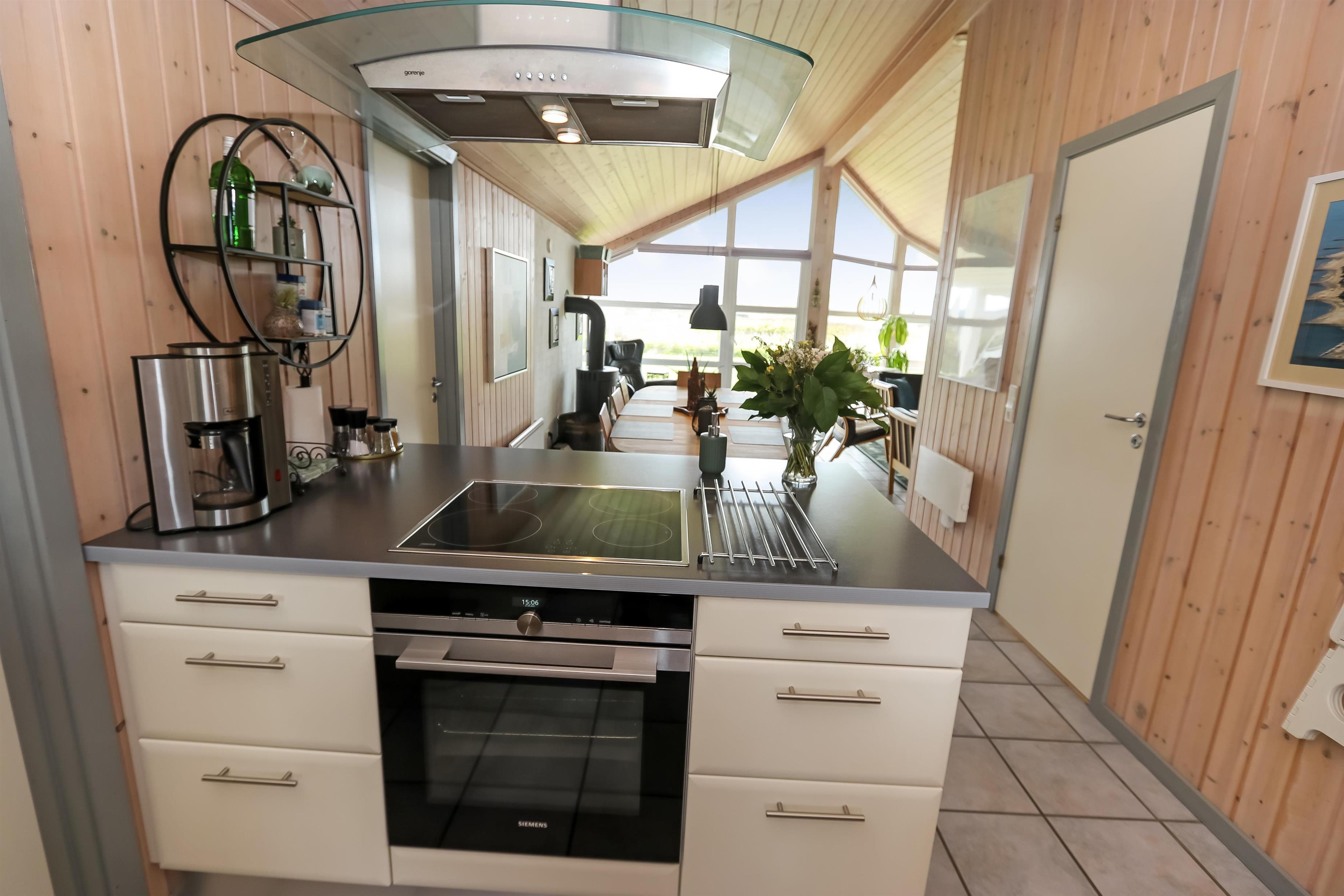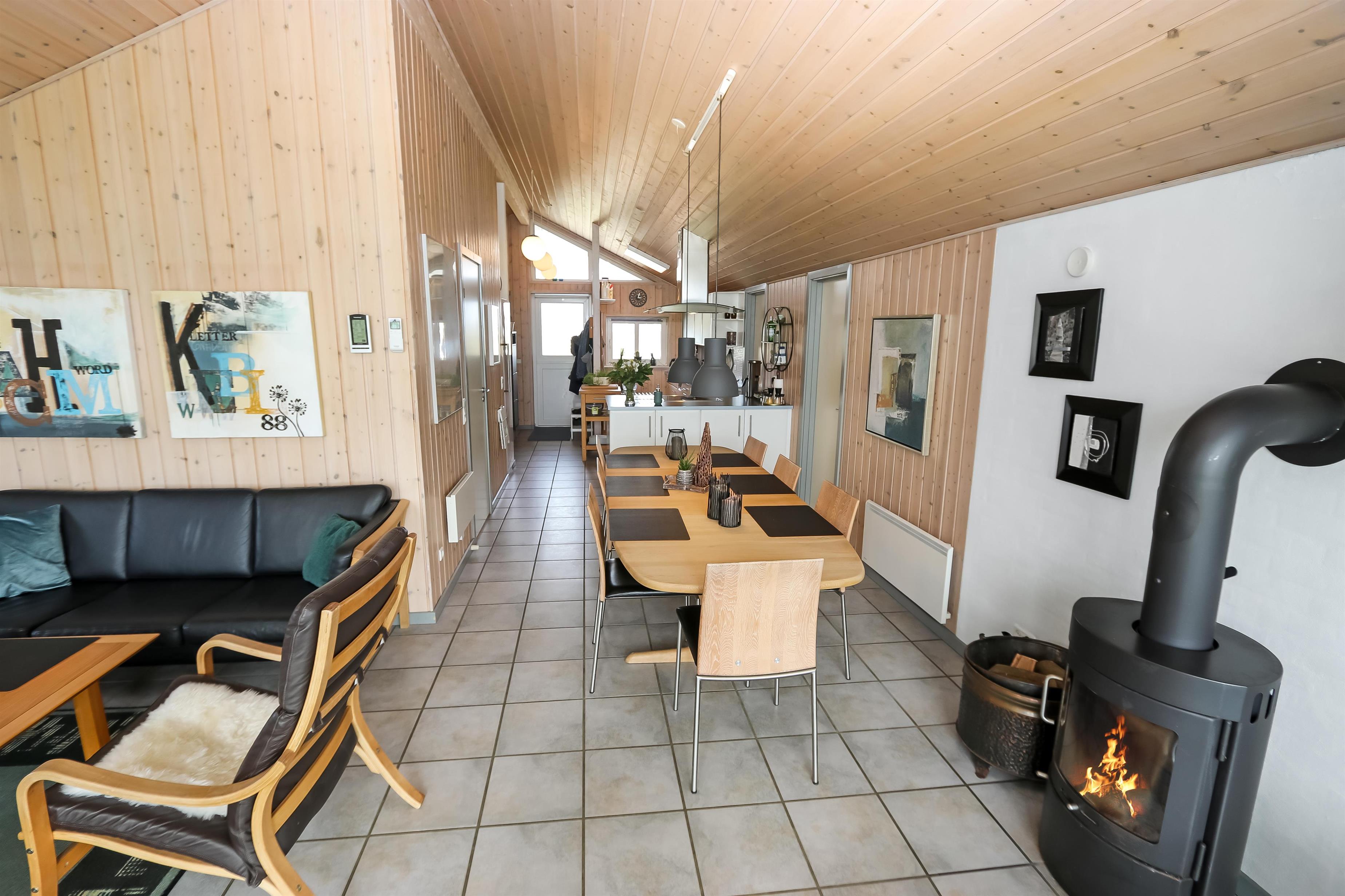 Godt udnyttet feriehus på ca. 105m2 som er bygget i 2003. Huset har 3 soveværelser (1DS, 1DS+2KS). Alle soverum har gulvtæpper. Huset er smagfuldt og praktisk indrettet i kvalitetsmaterialer og er holdt i flotte, afstemte farver. Allerede når I parkerer bilen lige ved huset bliver I klar over at det er noget specielt. Flot køkkenhjørne, byder jer velkommen. Køkkenhjørnet har alt i hårde hvidevarer og i service og køkkengrej. Der er keramiske kogeplader, emhætte, indbygningsovn, mikroovn, opvaskemaskine, køleskab samt separat fryser i teknikrums. I opholdsstuen er der bl.a. et dejligt spisebord tæt ved køkkenet, fladskærms-TV med tyske og danske kanaler, Chromecast, DVD-afspiller, bluetoothhøjtaler med mulighed for streaming fra din telefon eller medbragte device, læder møbler samt en hyggelig brændeovn der sammen med den opsatte varmepumpe er med til at minimere el-regningen. Opholdsrummene er bygget i kip og har praktiske klinkegulve. Det får huset til at fremstå luftigt, moderne og meget rengøringsvenligt. Flot badeværelse med toilet, håndvask, muret bruseniche, klinkegulv med gulvvarme, vaskemaskine, tørretumbler og nedsænket wellnesafdeling med spabad og direkte adgang til saunaen. Ekstra badeværelse med toilet, håndvask, bruser og klinkegulv med gulvvarme. Ikke ryger hus. Max 2 husdyr tilladt. Der er gratis brænde til brændeovnen i skuret