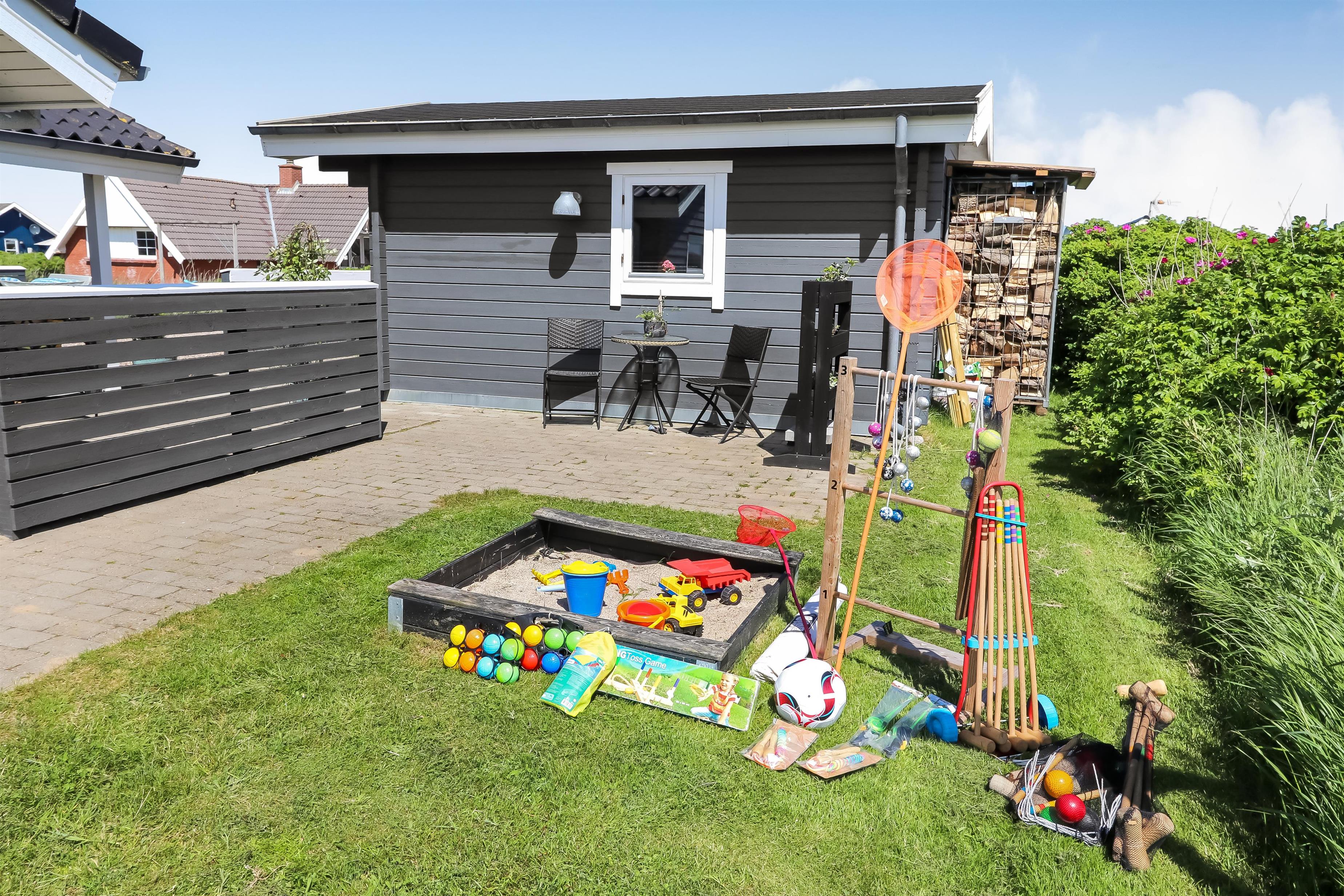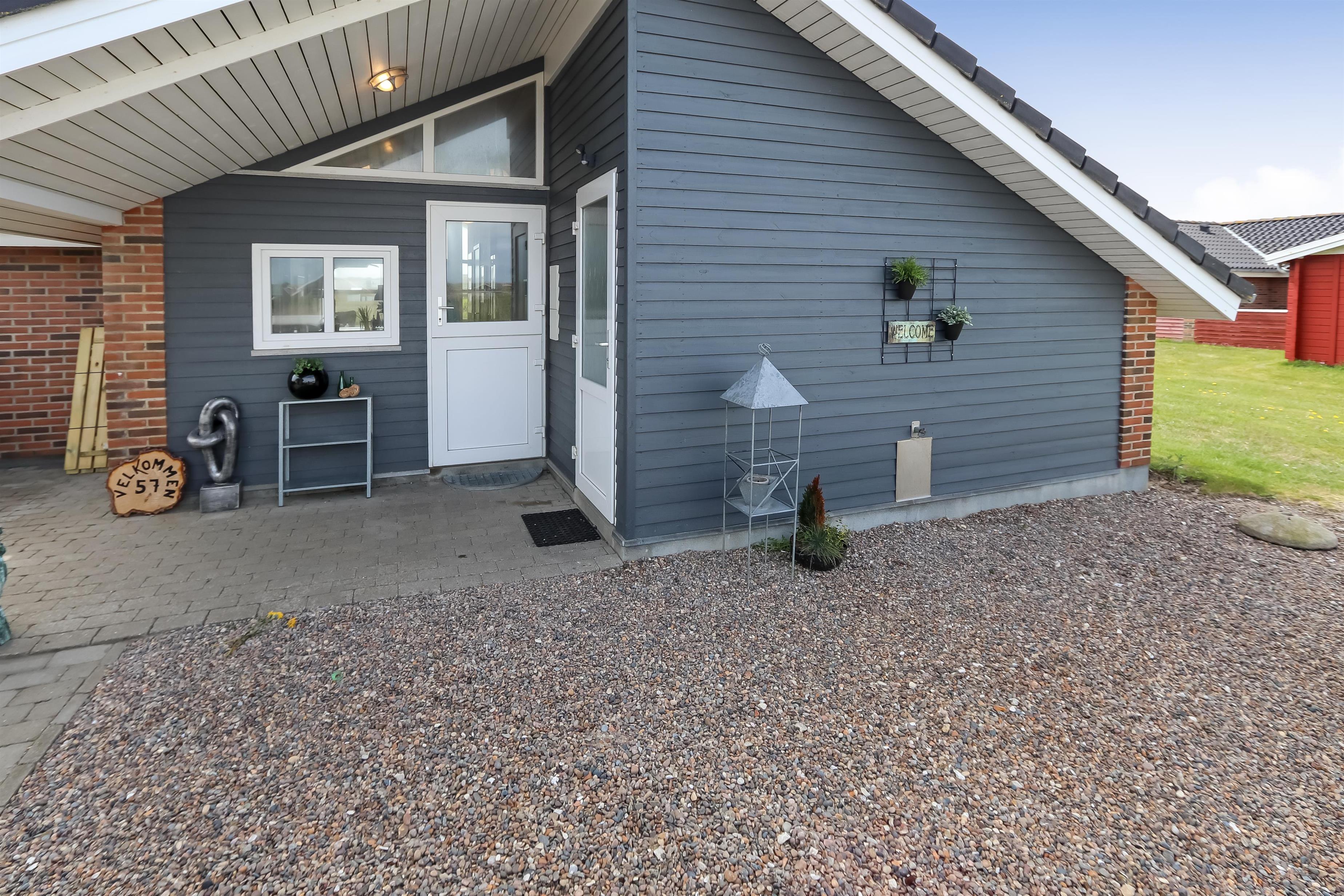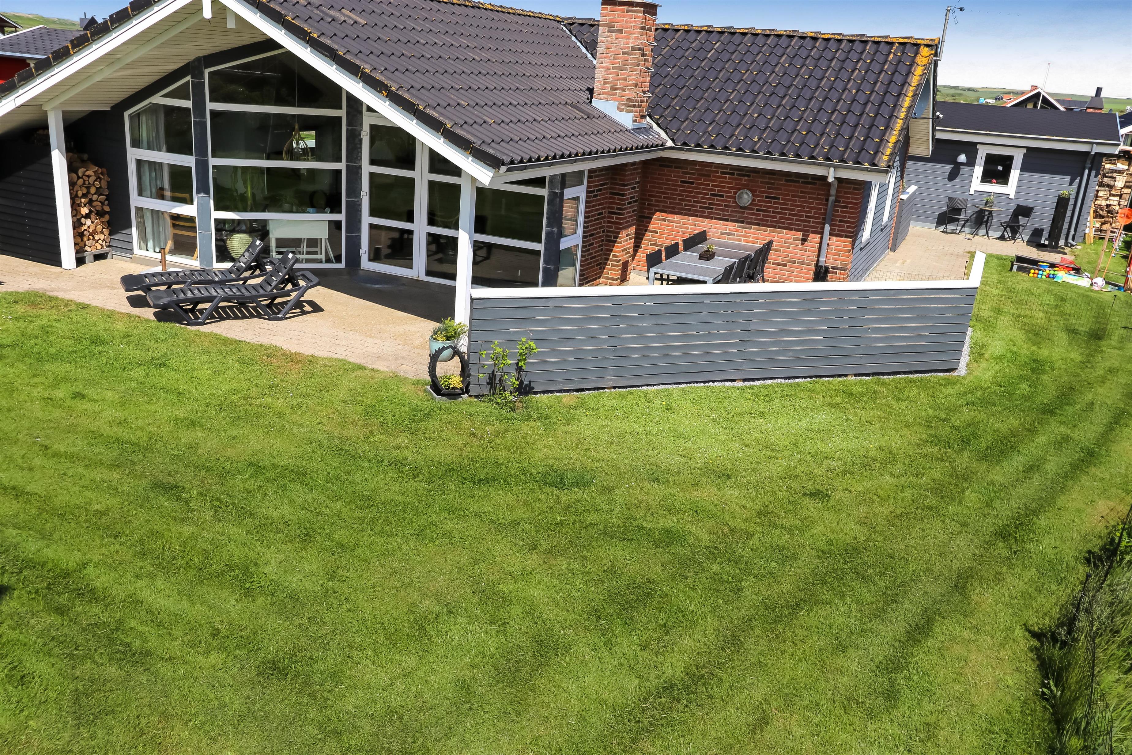 Huset ligger på en ca. 1.100 m2 stor, velholdt lukket grund i rolige omgivelser med rige muligheder for gå og cykelture. Der er kun ca. 300m til Ferring sø og ca. 300m til Vesterhavet. Der er utrolig gode terrasseforhold. Huset har i alt 3 fantastiske terrasser. Fra opholdsstuen er der udgang til dejlig, delvis overdækket og indhegnet terrasse samt en mindre solterrasse. Fra køkkenet er der også udgang til en dejlig, delvis overdækket terrasse. Der er altid sol på en af terrasserne og der er altid gode læ forhold. Det er en selvfølge at der er havemøbler, grill og liggestole som kan flyttes rundt efter behov. Alt i alt et særdeles attraktivt feriehus, med flot udsigt, der vil danne rammerne om jeres helt unikke ferie tæt ved Vesterhavet. Her er høj kvalitet og fantastiske omgivelser for de kræsne. Besøg de mange attraktioner og oplevelser som nås indenfor max 30 min eller besøg fiskerbyen Thyborøn eller den dejlige handelsby Lemvig med masser af specialbutikker. I Sommermånederne kan de mest nødvendige indkøb klares hos Bovbjerg Camping