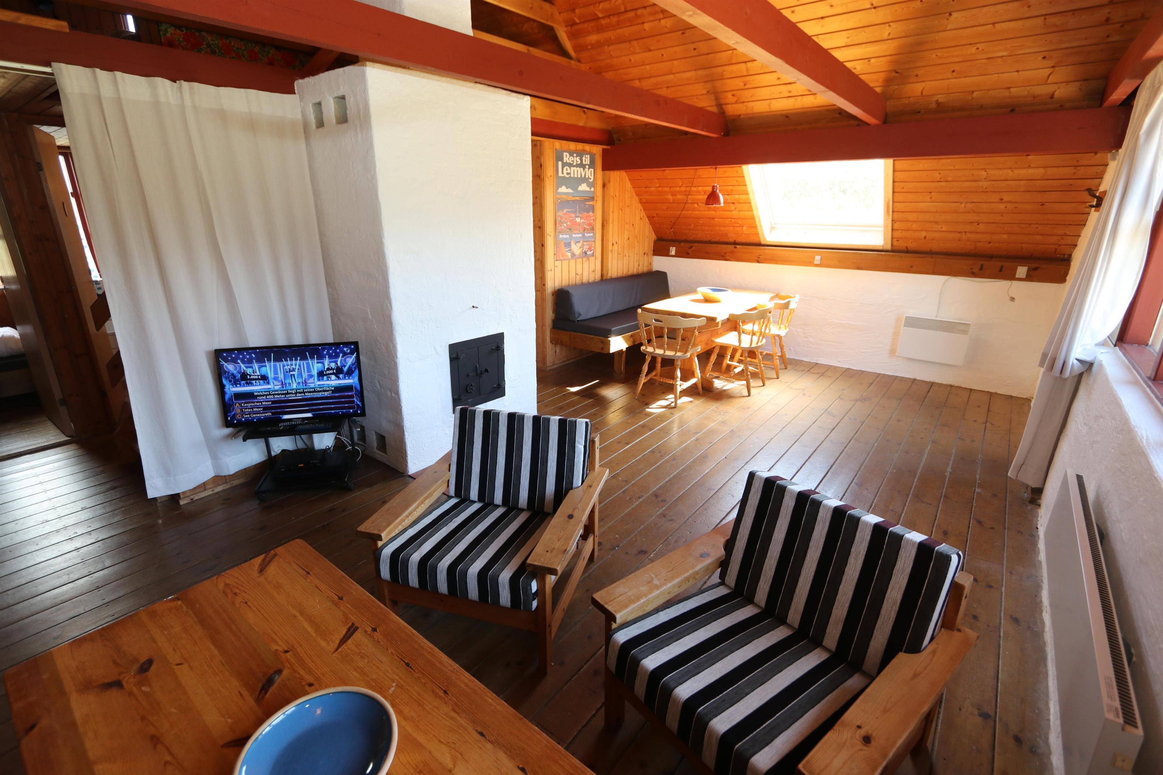 Fra opholdsstuen er der udgang til en lille, overdækket terrasse med havemøbler, 2 solvogne og grill. Huset er en del af Fjaltring Ferieby som består af 25 næsten identiske A-huse fordelt i 5 cirkler. Hele Feriebyen ligge i en dejlig ”gryde” i det fredede klitlandskab kun ca. 200m fra Vesterhavet. Nyd en økonomisk ferie i et enkelt feriehus med en helt unik beliggenhed. Parker bilen og nyd at I resten af ferien kan gå til stranden på under 5 minutter. Oplev det brusende Vesterhav som hverdag byder på nye oplevelser. Gå en tur eller dyrk den daglige motion langs med havet, i det smukke landskab eller udforsk områdets mange andre muligheder.