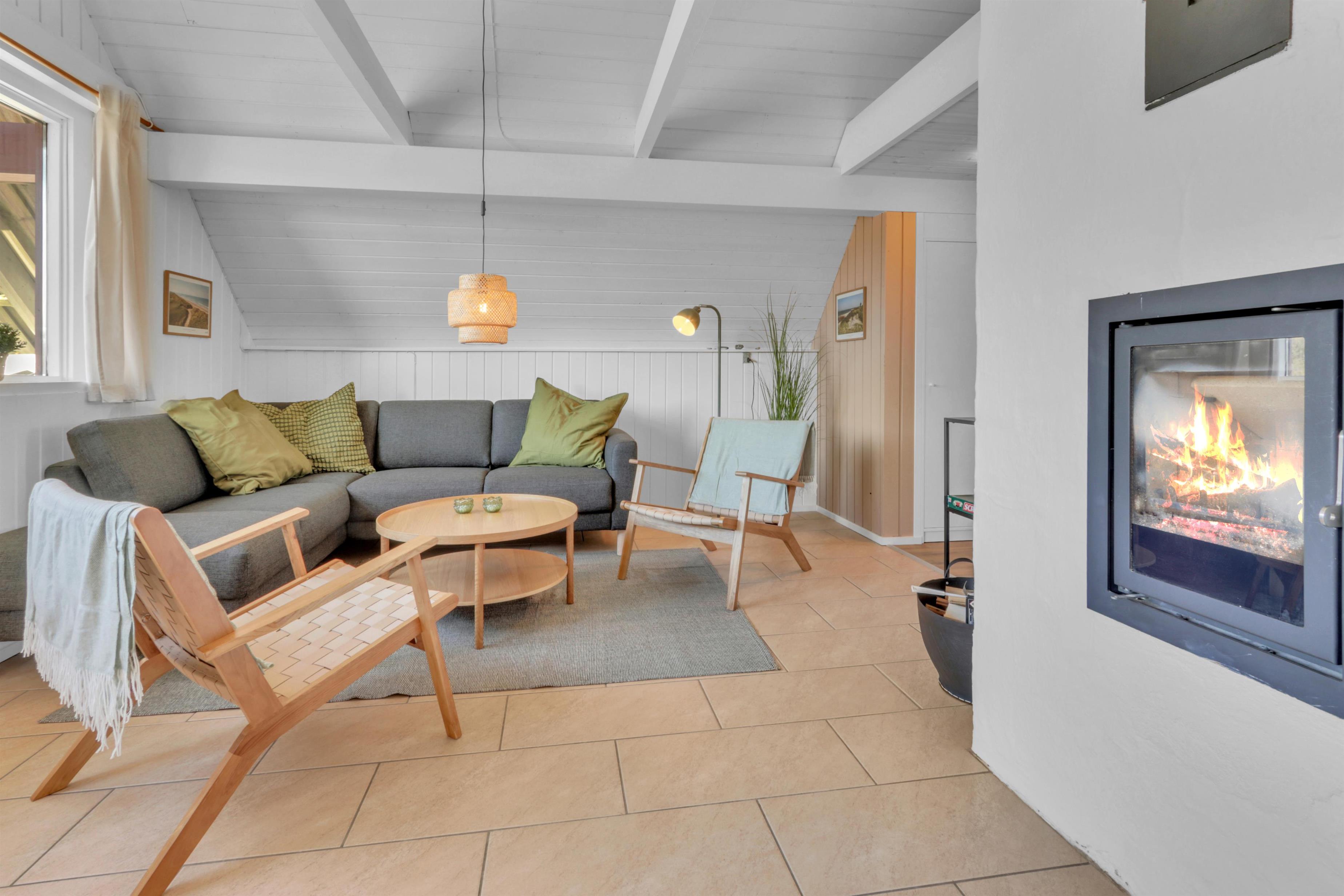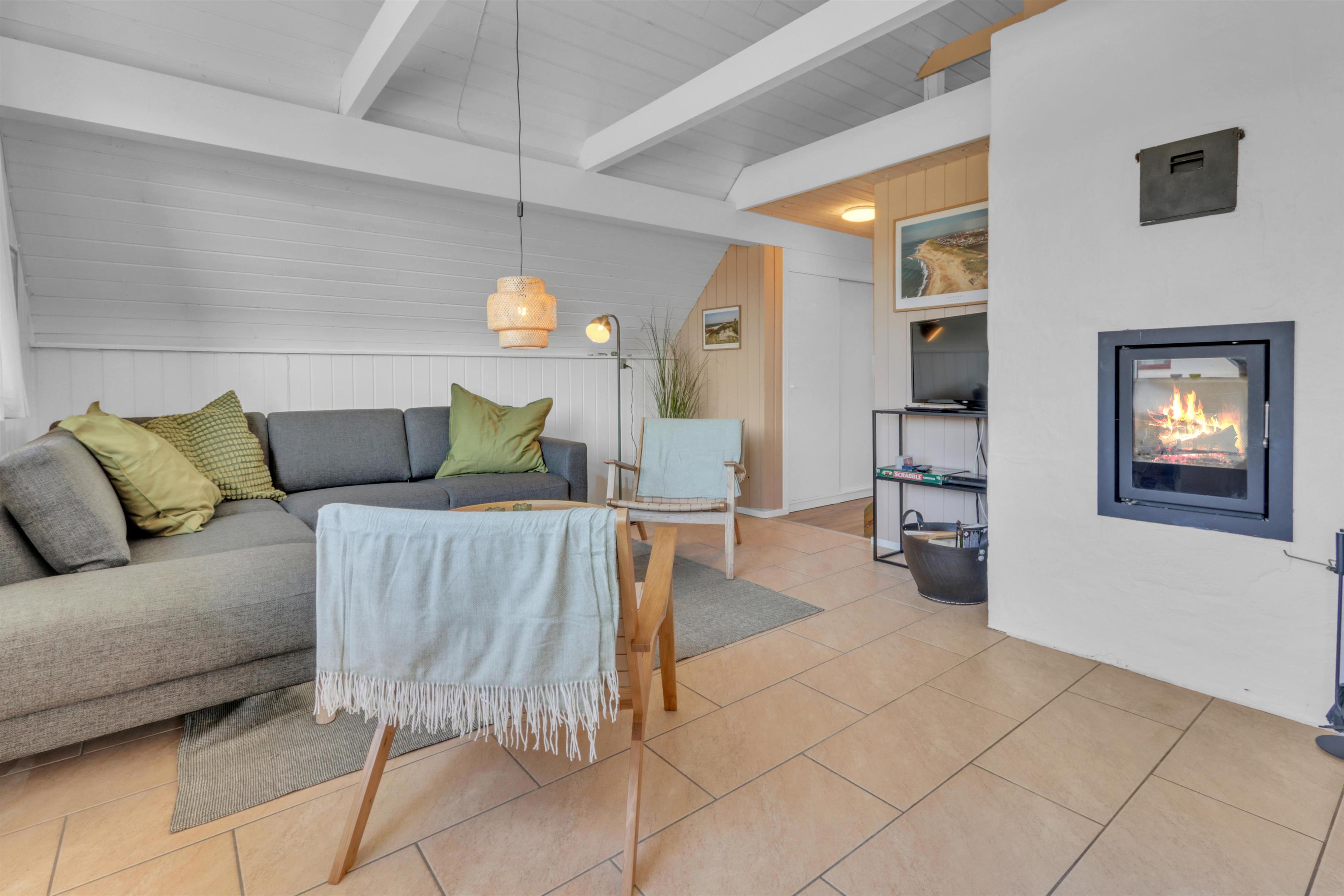 Feriehuset er 90 m2 stort og er blevet renoveret i 2025. Husets hjerterum er den lyse og indbydende stue. Her er der komfortable polstermøbler og fjernsyn med danske og tyske kanaler. En varmepumpe og en hyggelig brændeovn sørger for en dejlig atmosfære og varme på kølige dage.