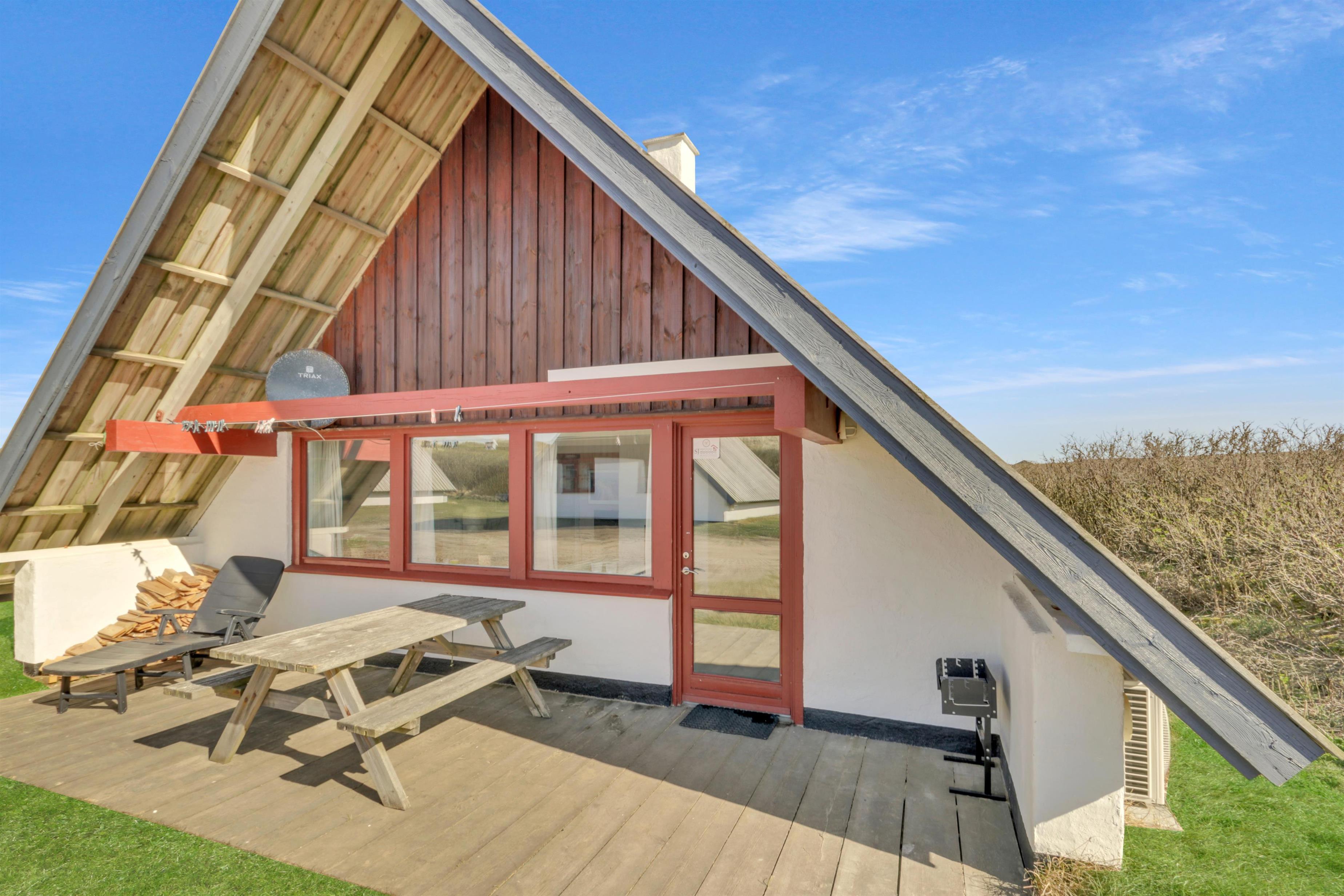 Udenfor stuen er der en dejlig ny terrasse. Terrassen er delvis overdækket og her forefindes der havemøbler, grill og 2 solvogne. Terrassen er ideel til blandt andet at nyde morgenkaffen, mens man lytter til havets bølgegang eller nyde dagens sidste solstråler i godt selskab.