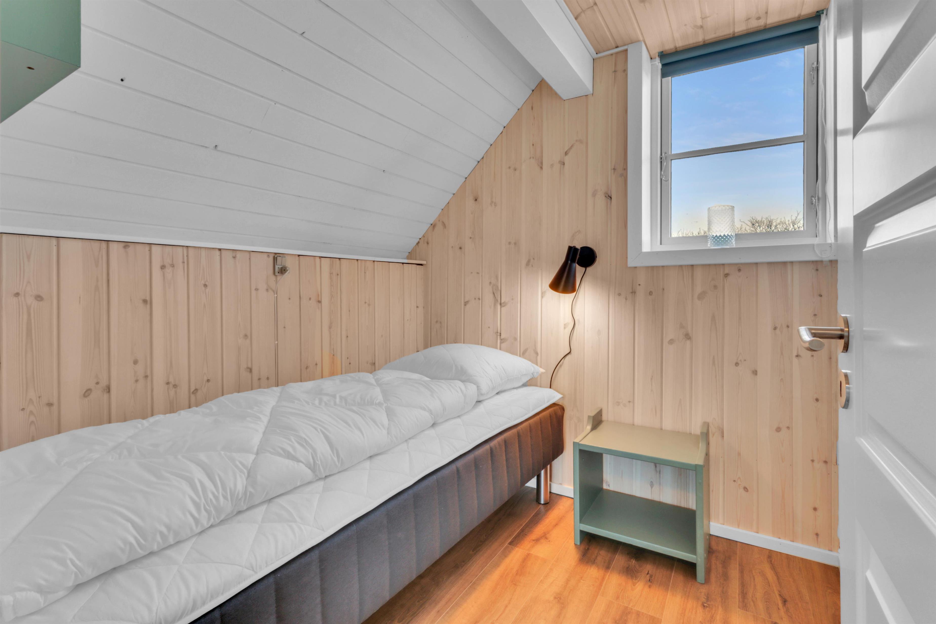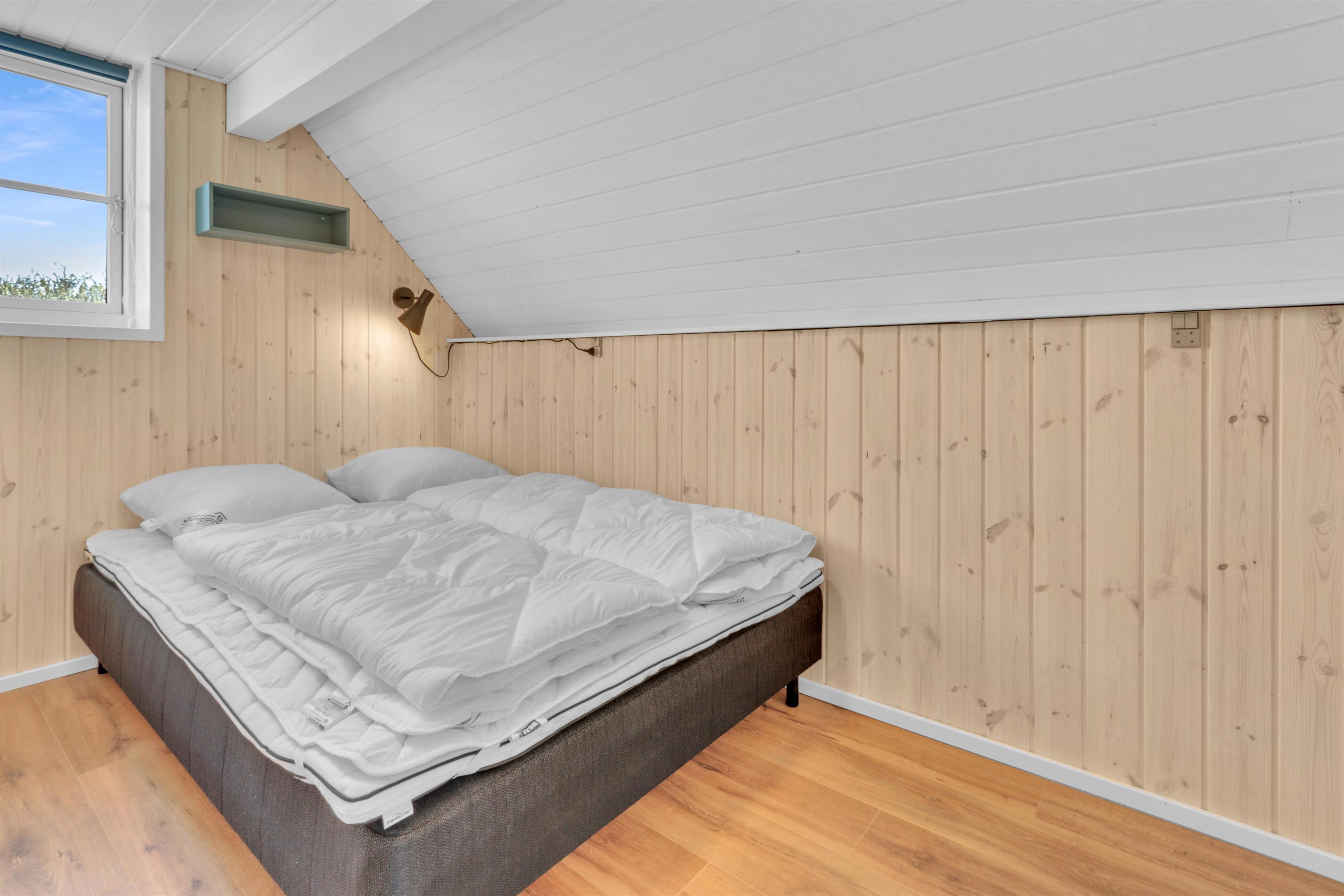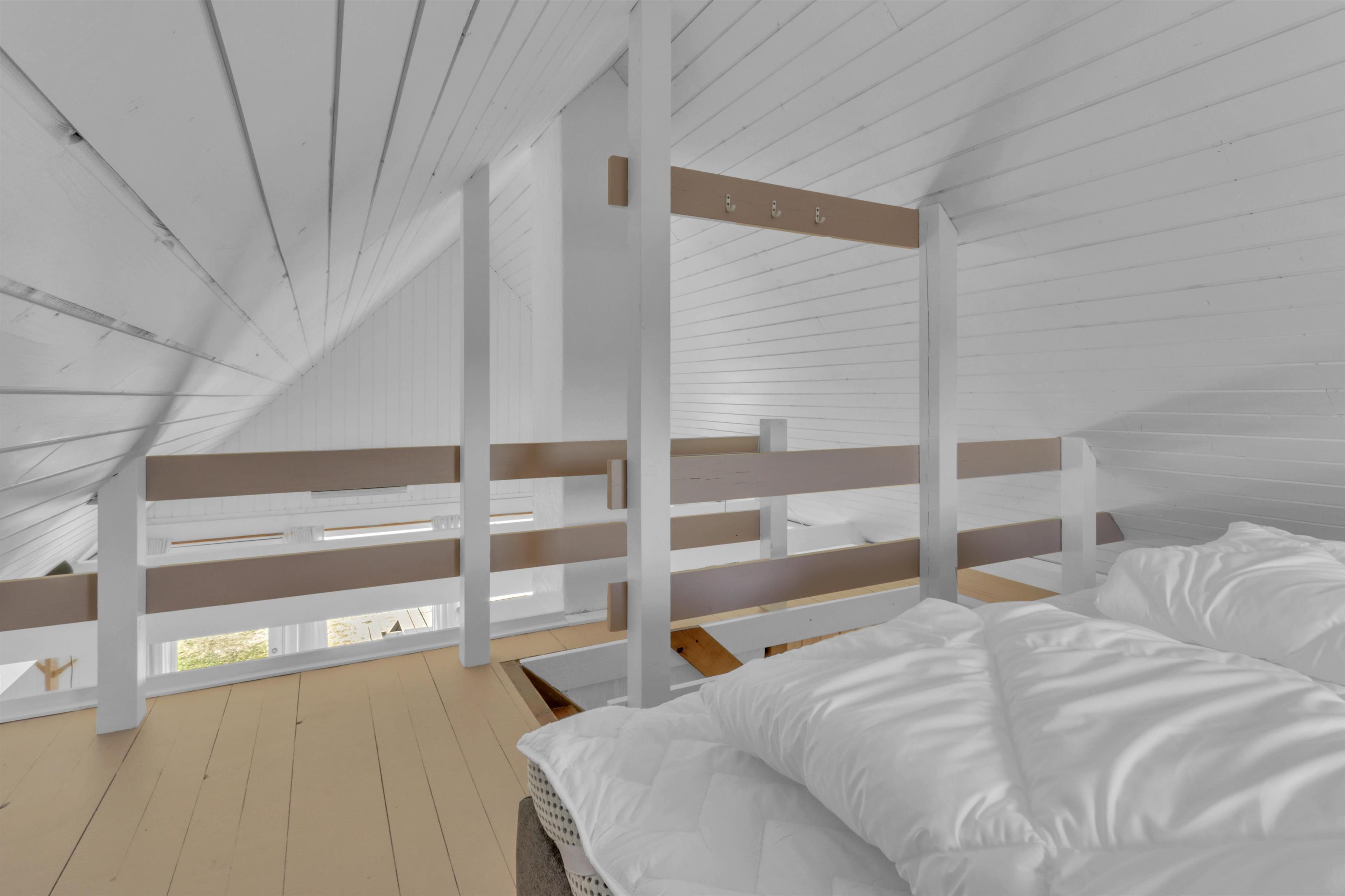 I feriehuset er der to hyggelige soveværelser i stueetagen og en charmerende hems. I det ene soveværelse er der en 3/4 seng (140x200cm) og i det andet soveværelse er der en enkeltseng (80x190cm). På hemsen er der en dobbeltseng (160x200cm).