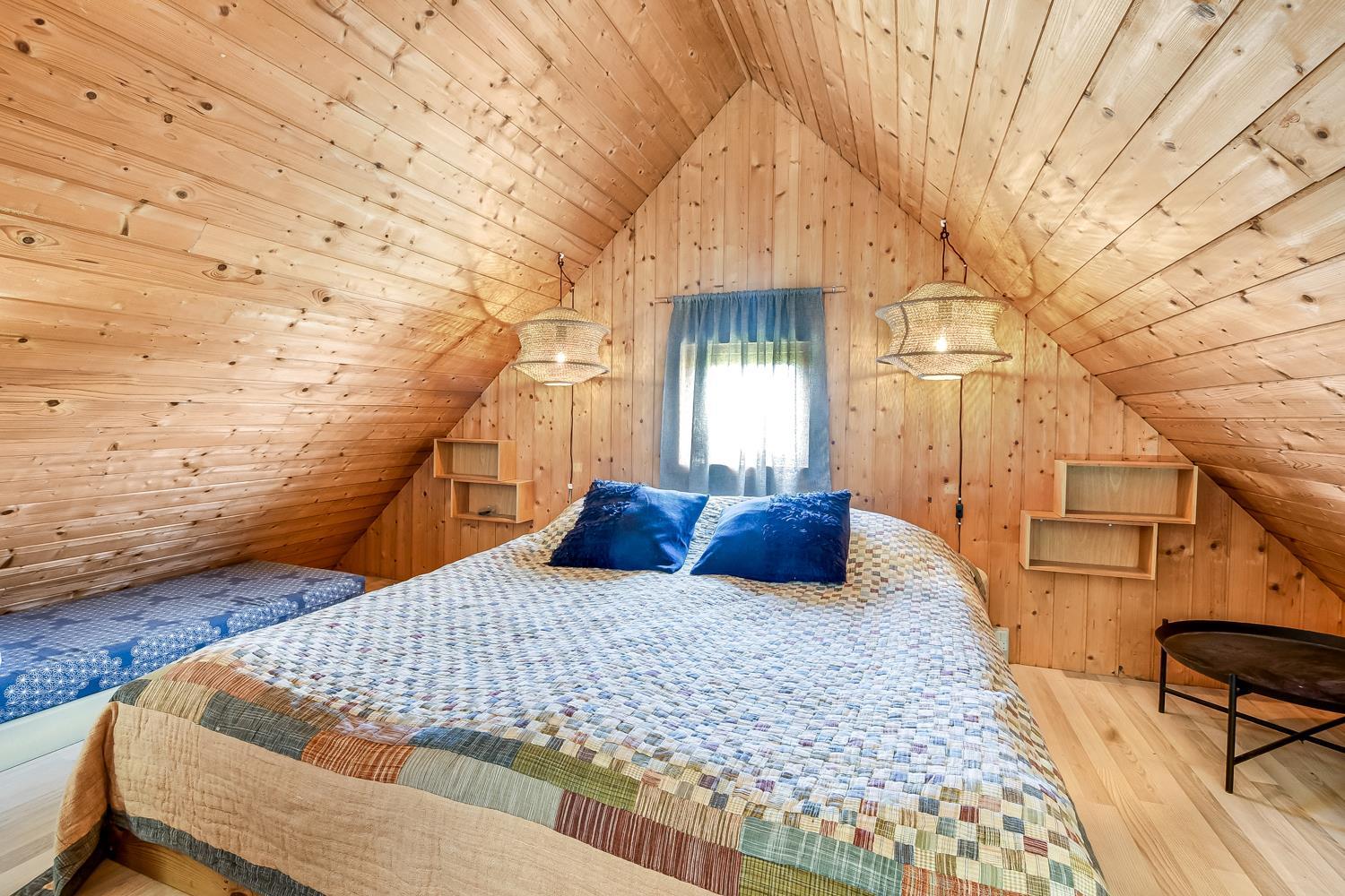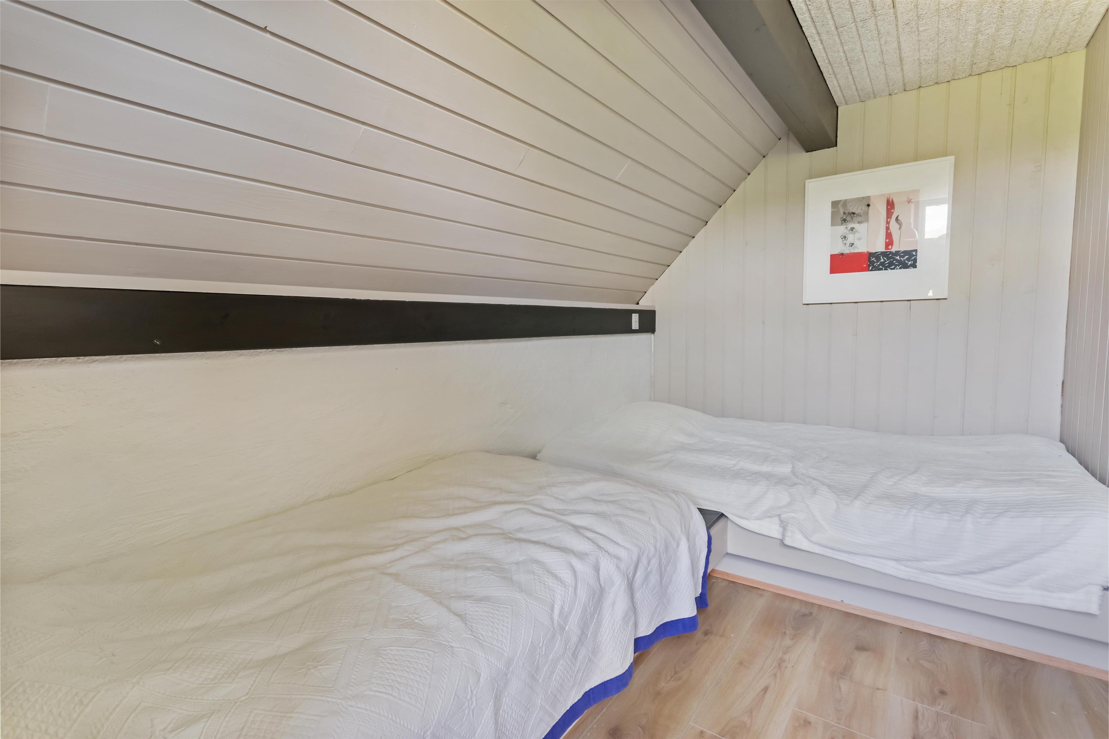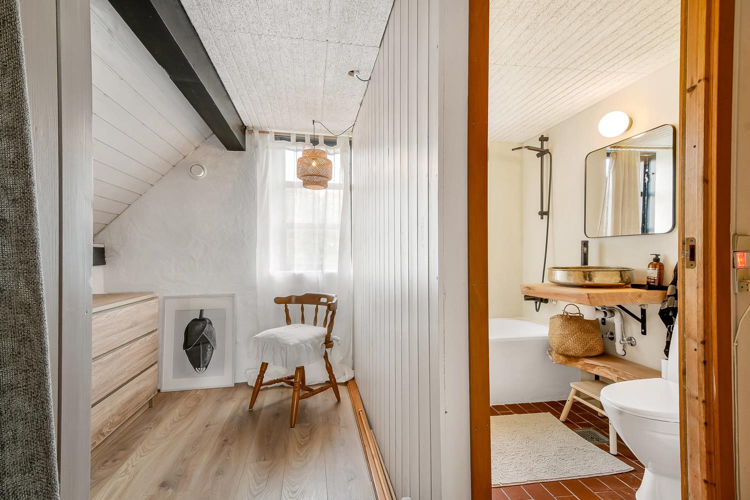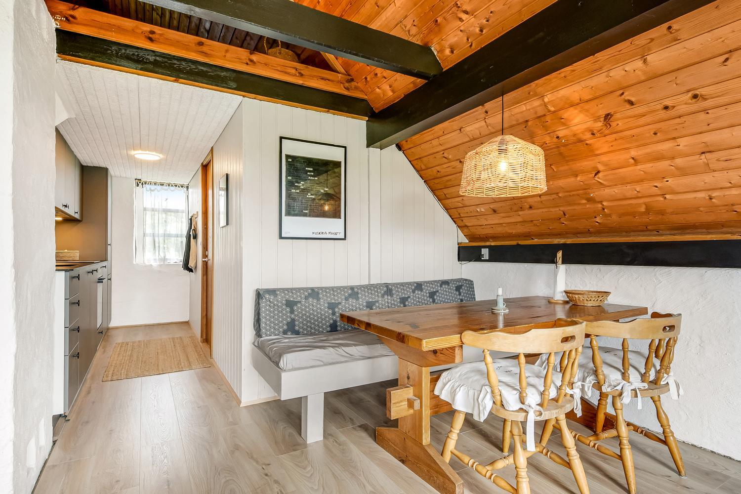 Rustikt sommerhus på 90 m2 med 2 soverum (1DS, 2ES). Soverum med 1 DS (180x200) er på 1. sal. 2 ES (80x200 og 120x200) i soverum i stueplan. Huset er enkelt indrettet med en opholdsstue med polstermøbler, TV med tyske programmer samt mulighed for at streame egne programmer og pejs. Der er installeret en varmepumpe. Køkkenhjørne med induktionskogeplade og indbygget ovn, opvaskemaskine og køle-/fryseskab. Badeværelse med toilet, håndvask og badekar med bruser. Desuden er der et opbevaringsrum med kommode.
