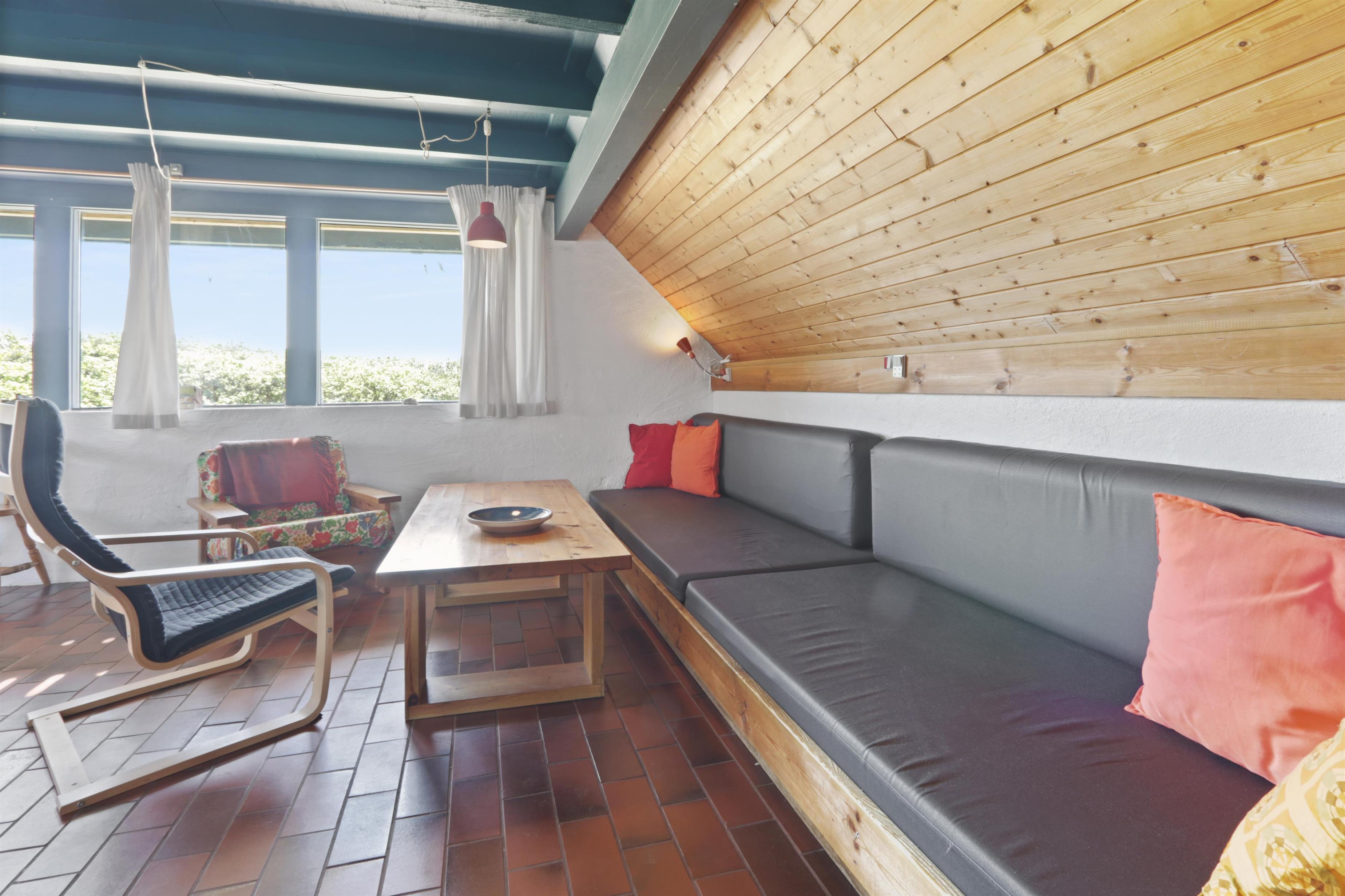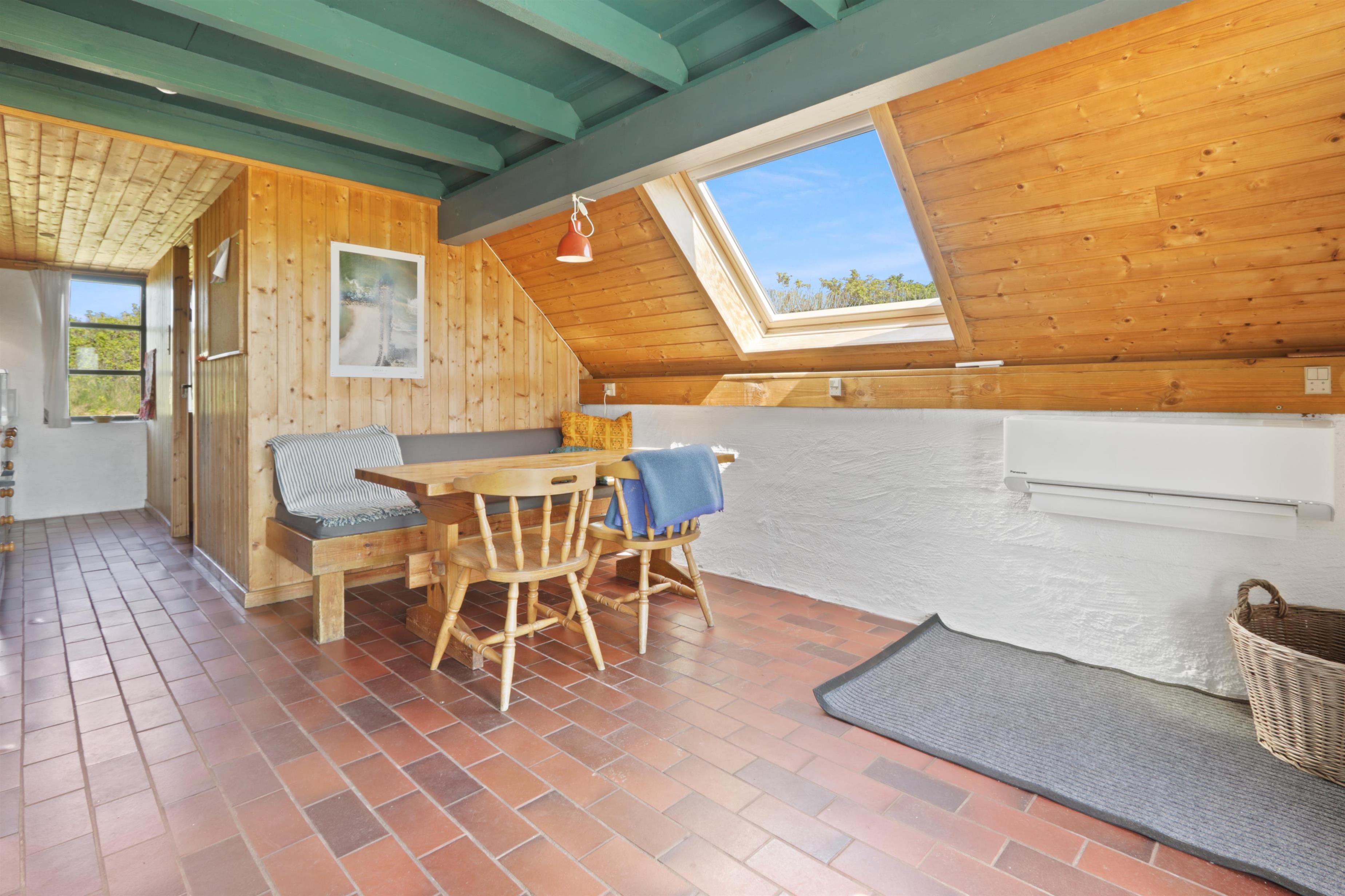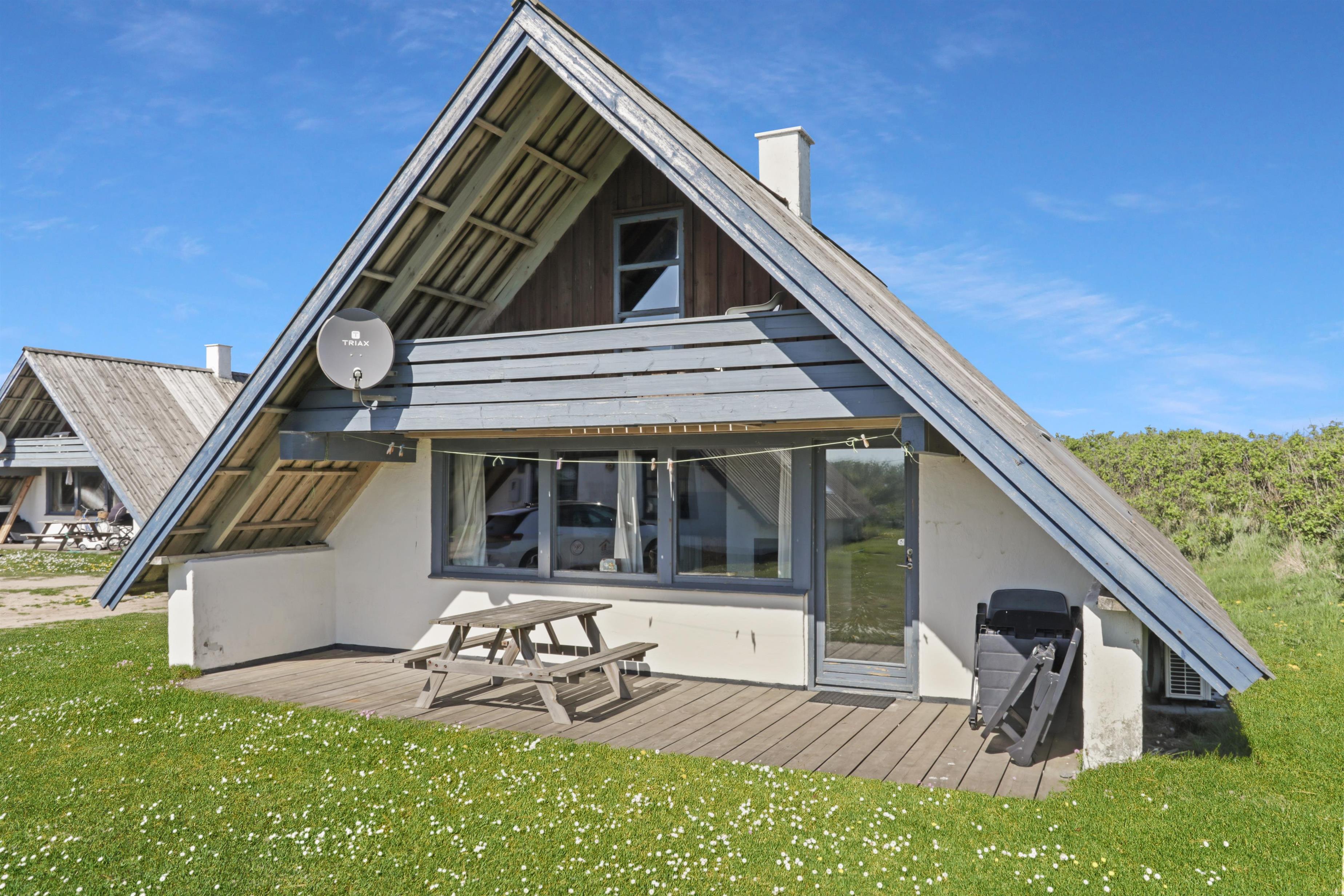 Fra opholdsstuen er der udgang til en lille, overdækket terrasse med havemøbler, 2 solvogne og grill og fra balkonen på 1. sal er der udsigt til Vesterhavet. Huset er en del af Fjaltring Ferieby som består af 25 næsten identiske A-huse fordelt i 5 cirkler. Hele Feriebyen ligge i en dejlig ”gryde” i det fredede klitlandskab kun ca. 200m fra Vesterhavet. Ved fælleshuset er der el-bil-oplader til rådighed. Nyd en økonomisk ferie i et enkelt feriehus med en helt unik beliggenhed. Parker bilen og nyd at I resten af ferien kan gå til stranden på under 5 minutter. Oplev det brusende Vesterhav som hverdag byder på nye oplevelser. Gå en tur eller dyrk den daglige motion langs med havet, i det smukke landskab eller udforsk områdets mange andre muligheder.