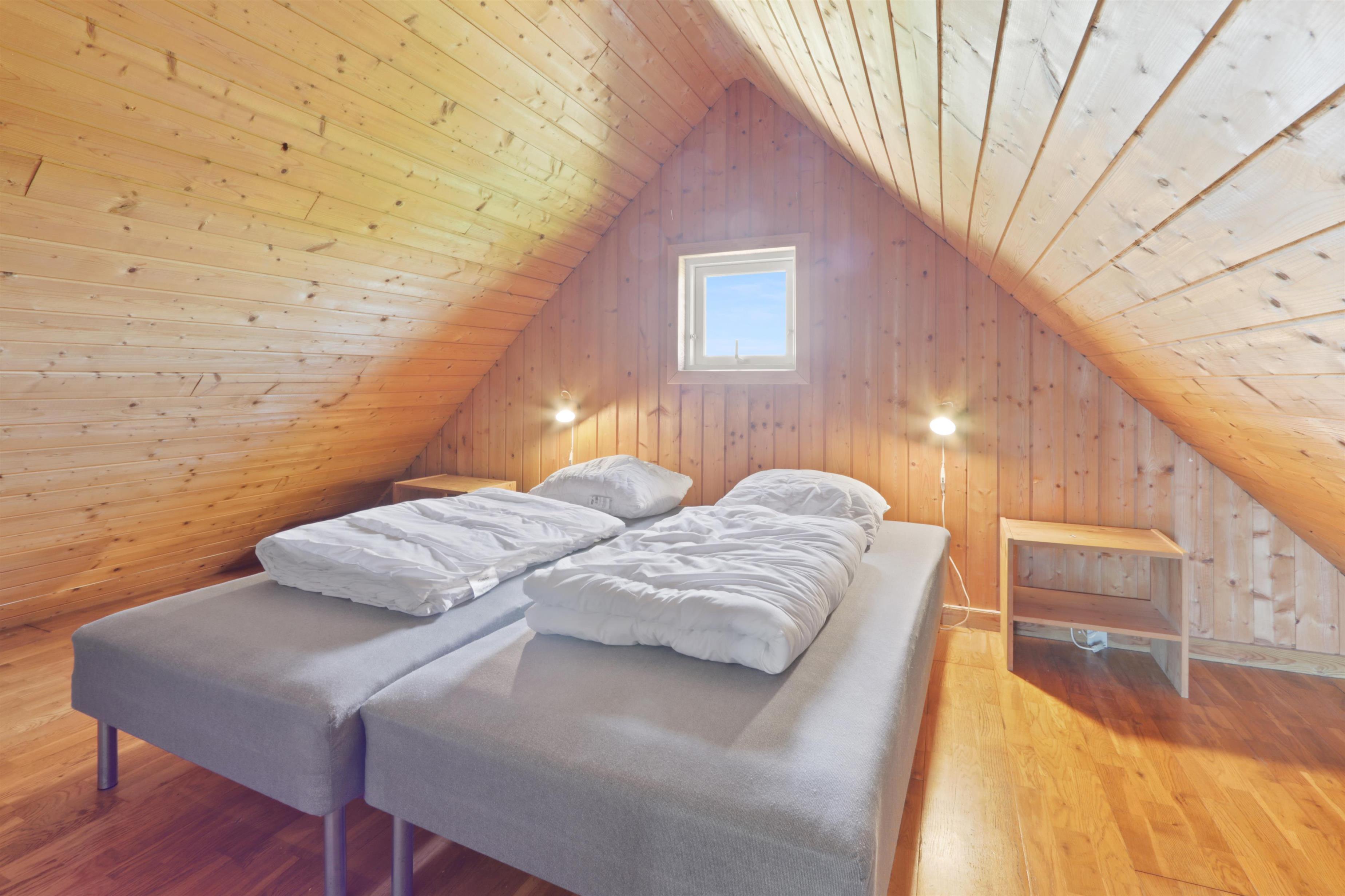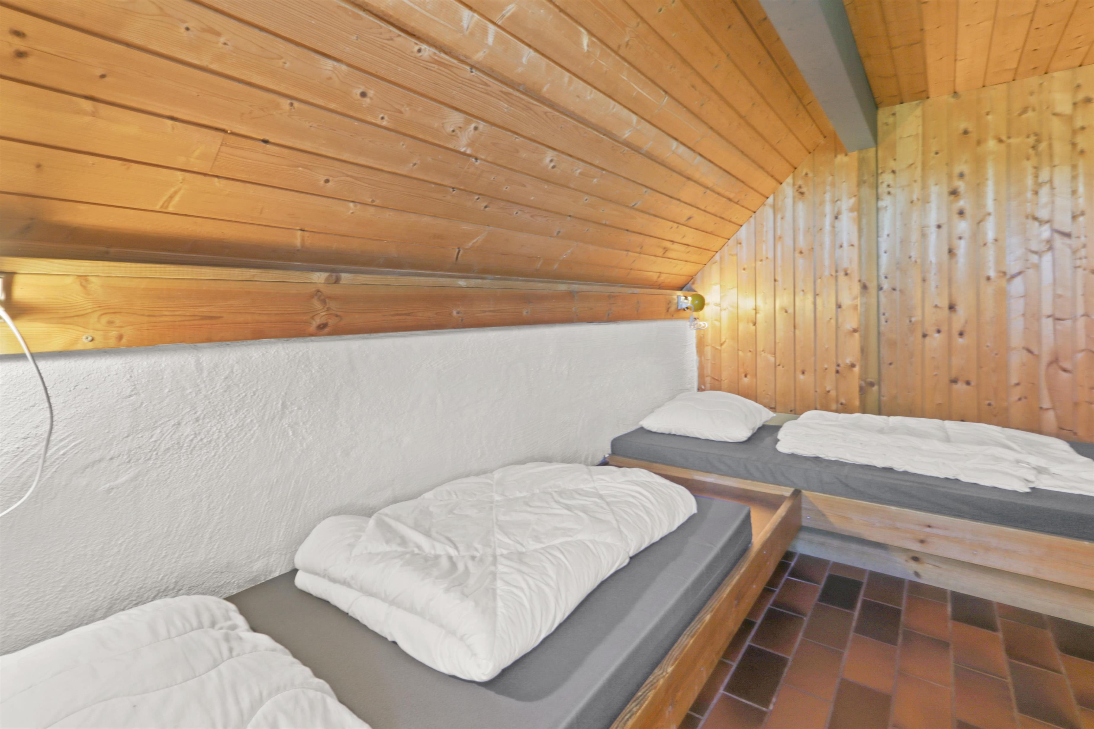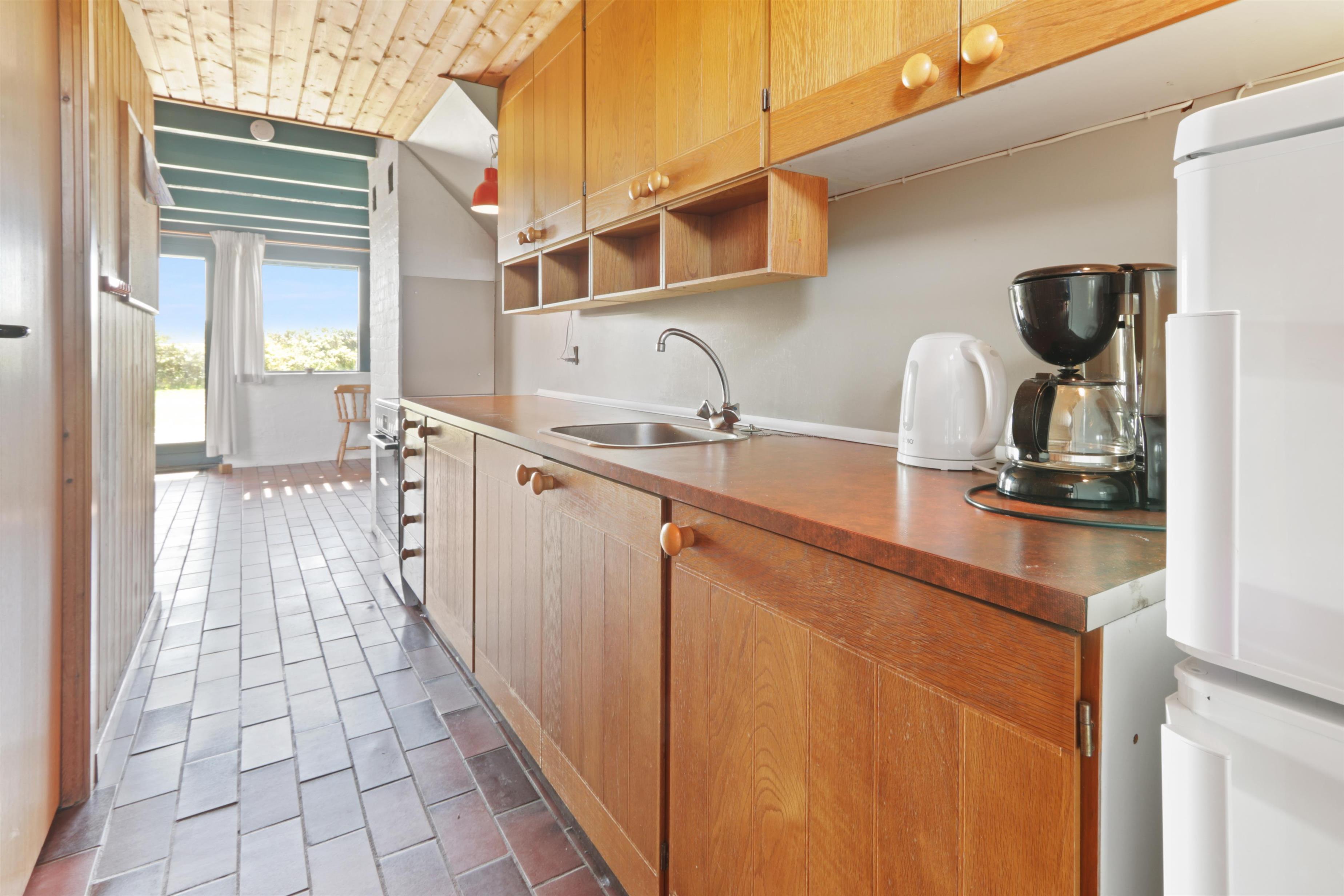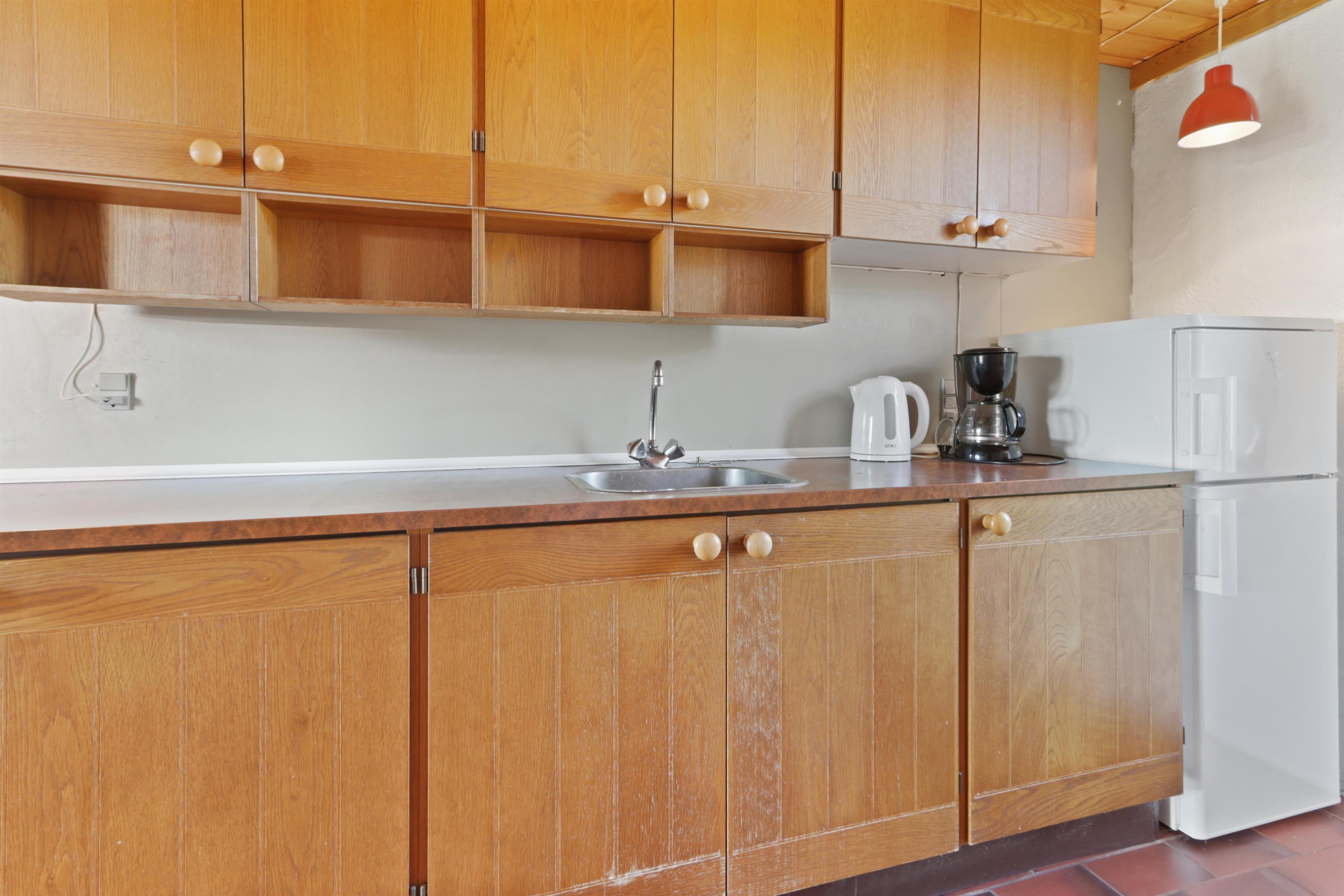 Rustikt sommerhus på100m2 med 2 soverum (1DS, 4ES). 2 åbne soverum på første sal med 1 DS og 2ES. sal. 2 ES i vinkel i værelse i stueplan. Huset er enkelt indrettet med en opholdsstue med polstermøbler, TV med danske og tyske programmer og pejs. Enkelt køkkenhjørne med elektrisk komfur med 4 kogeplader og køleskab med lille fryseboks. Der er installeret en varmepumpe. Badeværelse med toilet, håndvask og bruser. Klinkegulve med gulvvarme i stueplan. 2 husdyr tilladt.