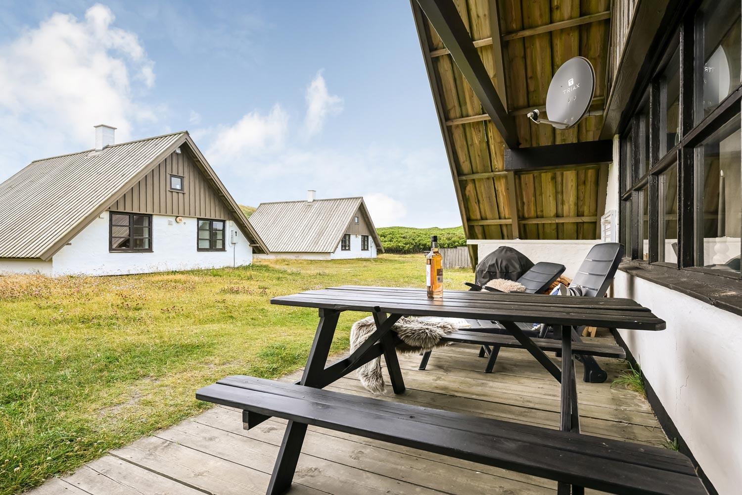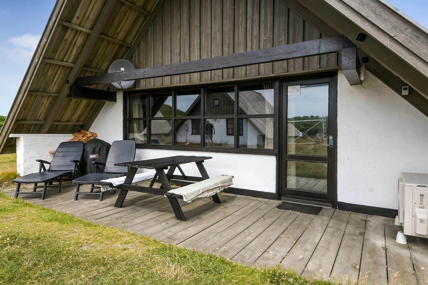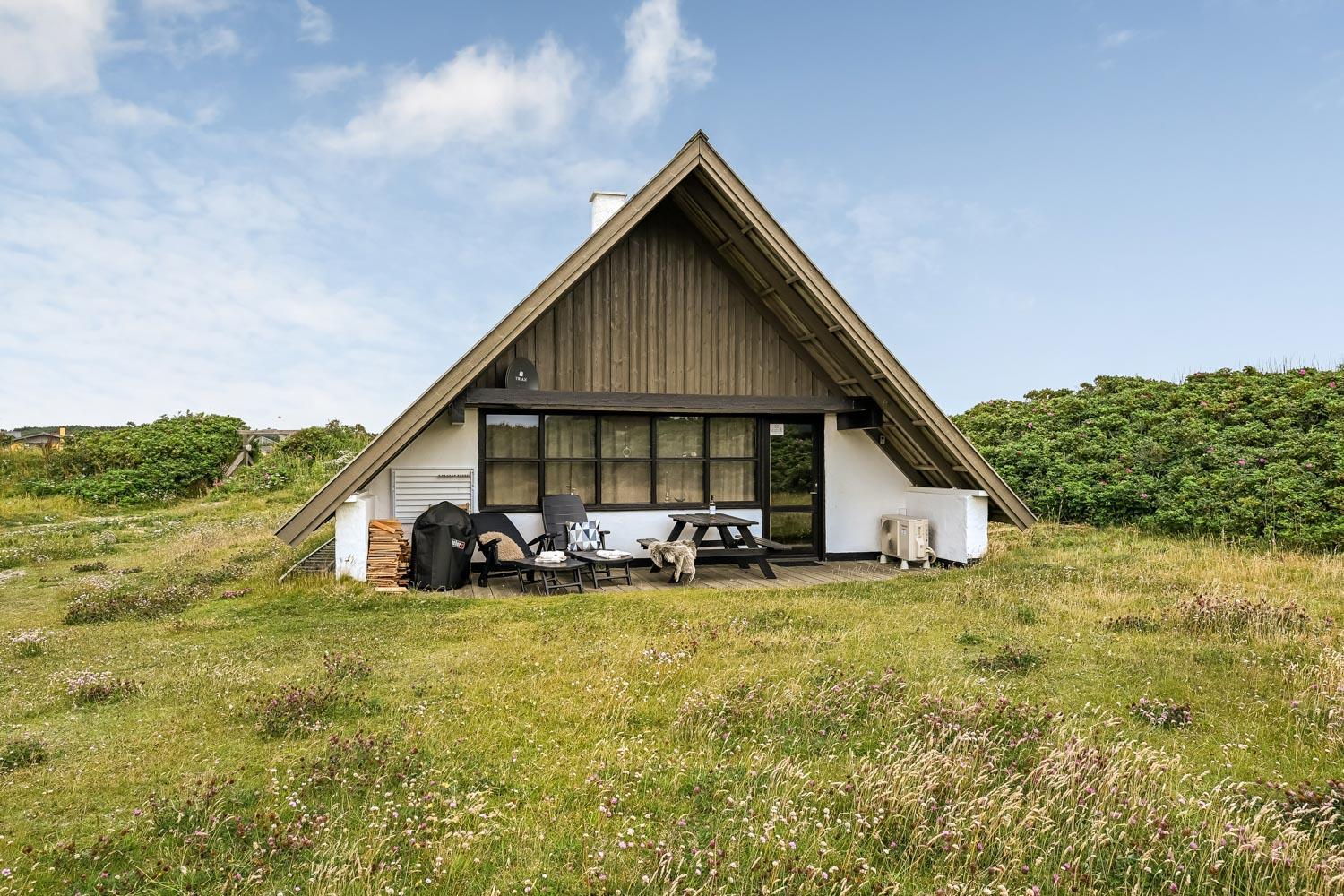 Fra opholdsstuen er der udgang til en lille overdækket terrasse med havemøbler, 2 solvogne og grill. Huset er en del af Fjaltring Ferieby, som består af 25 næsten identiske A-huse fordelt i 5 cirkler. Hele Feriebyen ligger i en dejlig ”gryde” i det fredede klitlandskab kun ca. 200m fra Vesterhavet. Ved fælleshuset er der el-bil-oplader til rådighed. Nyd en økonomisk ferie i et enkelt feriehus med en helt unik beliggenhed. Parkér bilen og nyd, at I resten af ferien kan gå til stranden på under 5 minutter. Oplev det brusende Vesterhav, som hver dag byder på nye oplevelser. Gå en tur eller dyrk den daglige motion langs med havet, i det smukke landskab eller udforsk områdets mange andre muligheder.