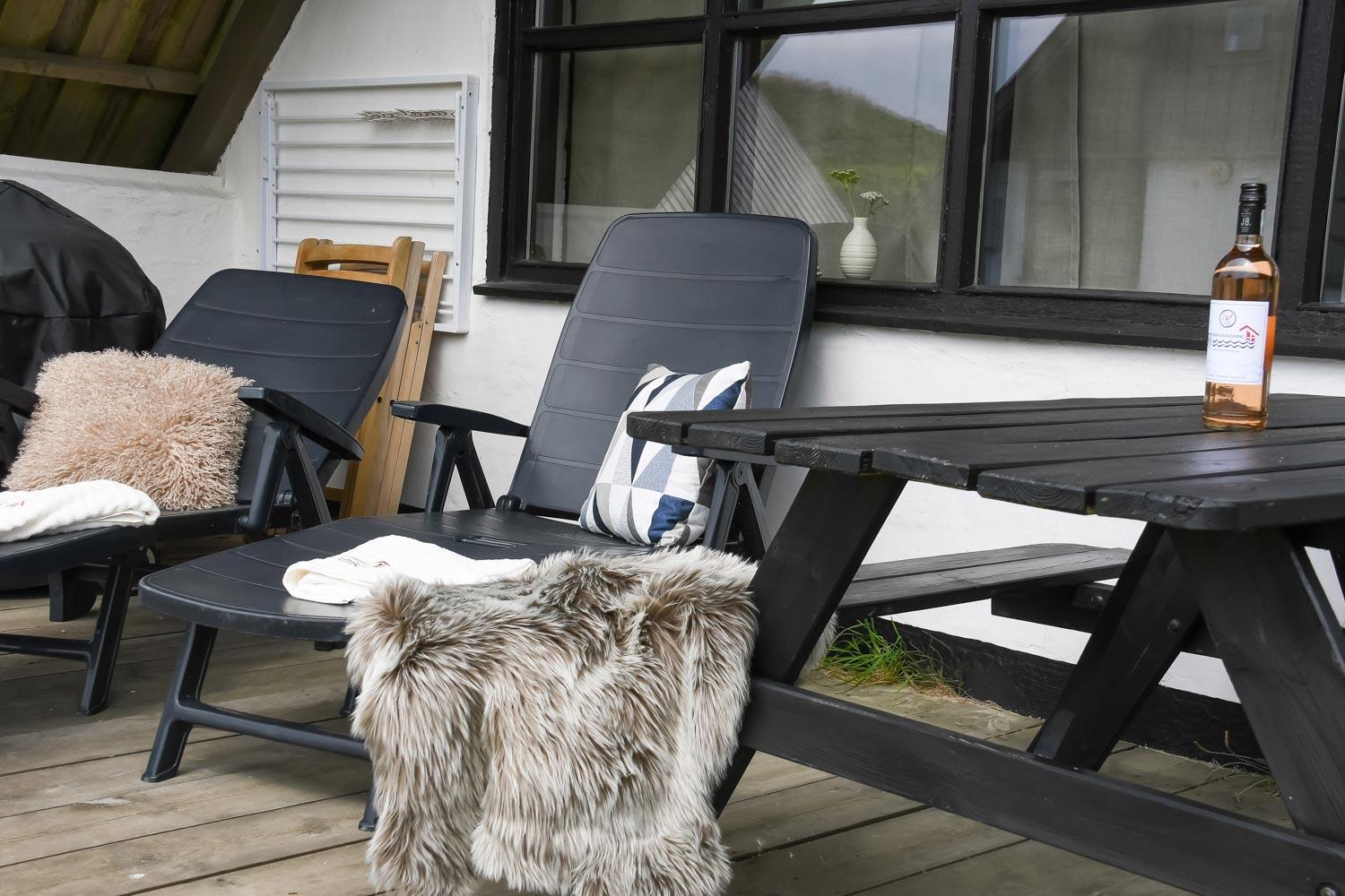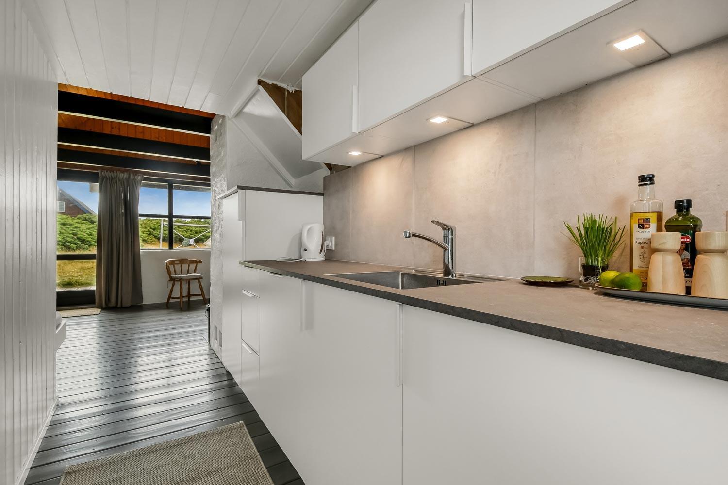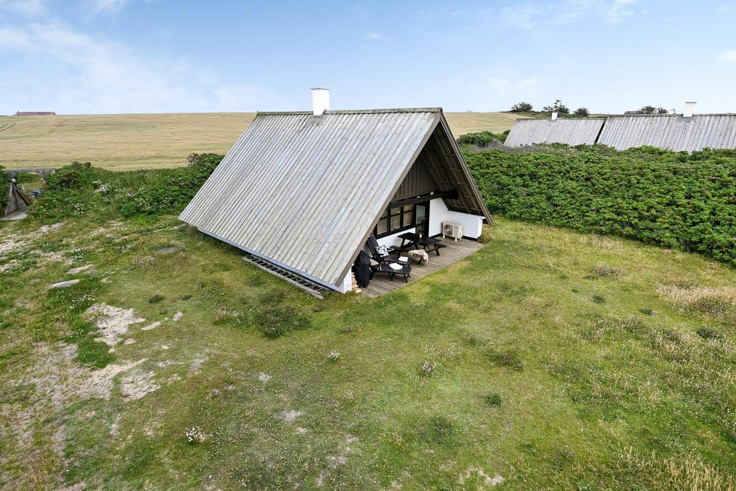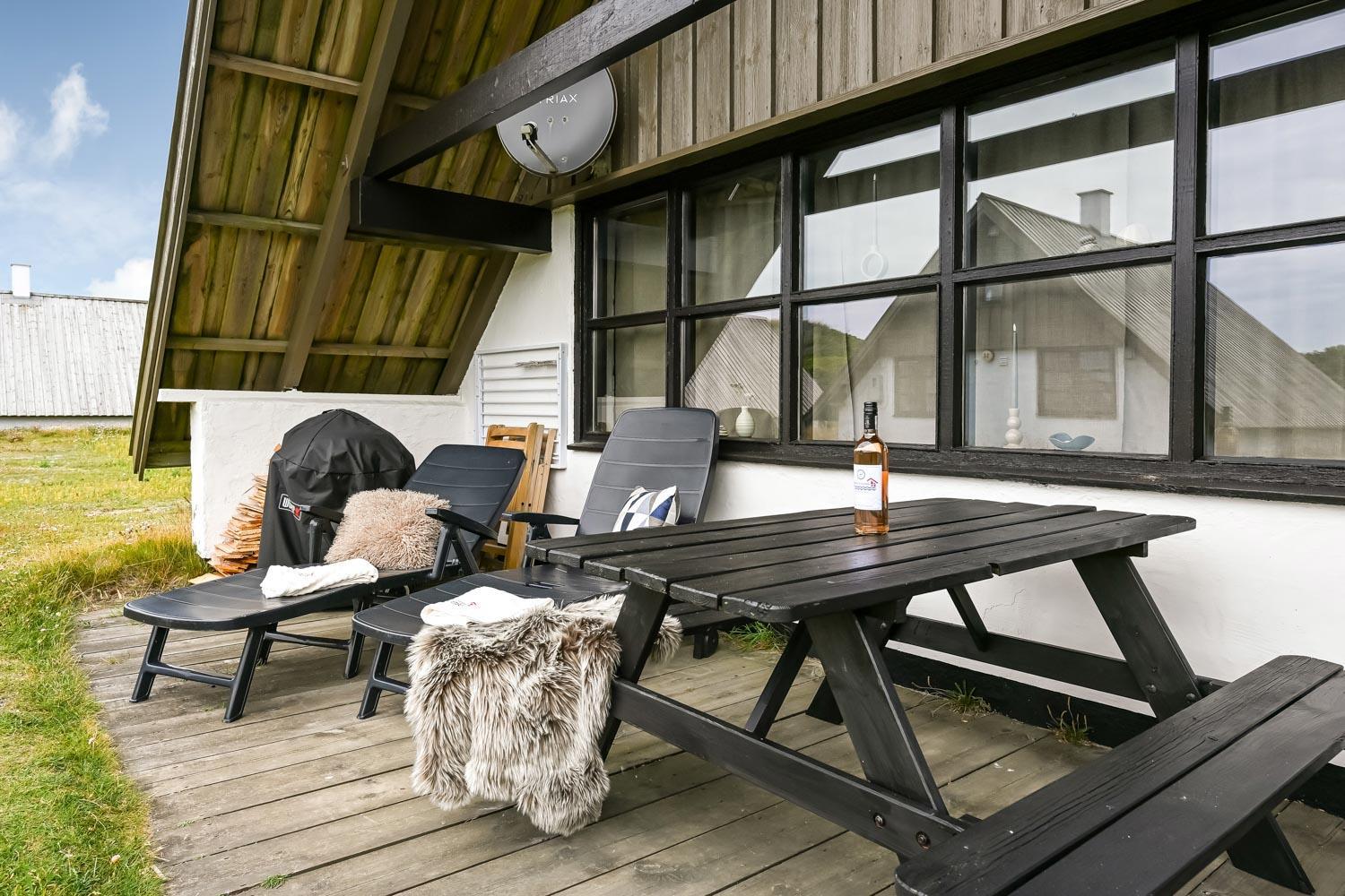 Fra opholdsstuen er der udgang til en lille overdækket terrasse med havemøbler, 2 solvogne og grill. Huset er en del af Fjaltring Ferieby, som består af 25 næsten identiske A-huse fordelt i 5 cirkler. Hele Feriebyen ligger i en dejlig ”gryde” i det fredede klitlandskab kun ca. 200m fra Vesterhavet. Ved fælleshuset er der el-bil-oplader til rådighed. Nyd en økonomisk ferie i et enkelt feriehus med en helt unik beliggenhed. Parkér bilen og nyd, at I resten af ferien kan gå til stranden på under 5 minutter. Oplev det brusende Vesterhav, som hver dag byder på nye oplevelser. Gå en tur eller dyrk den daglige motion langs med havet, i det smukke landskab eller udforsk områdets mange andre muligheder.