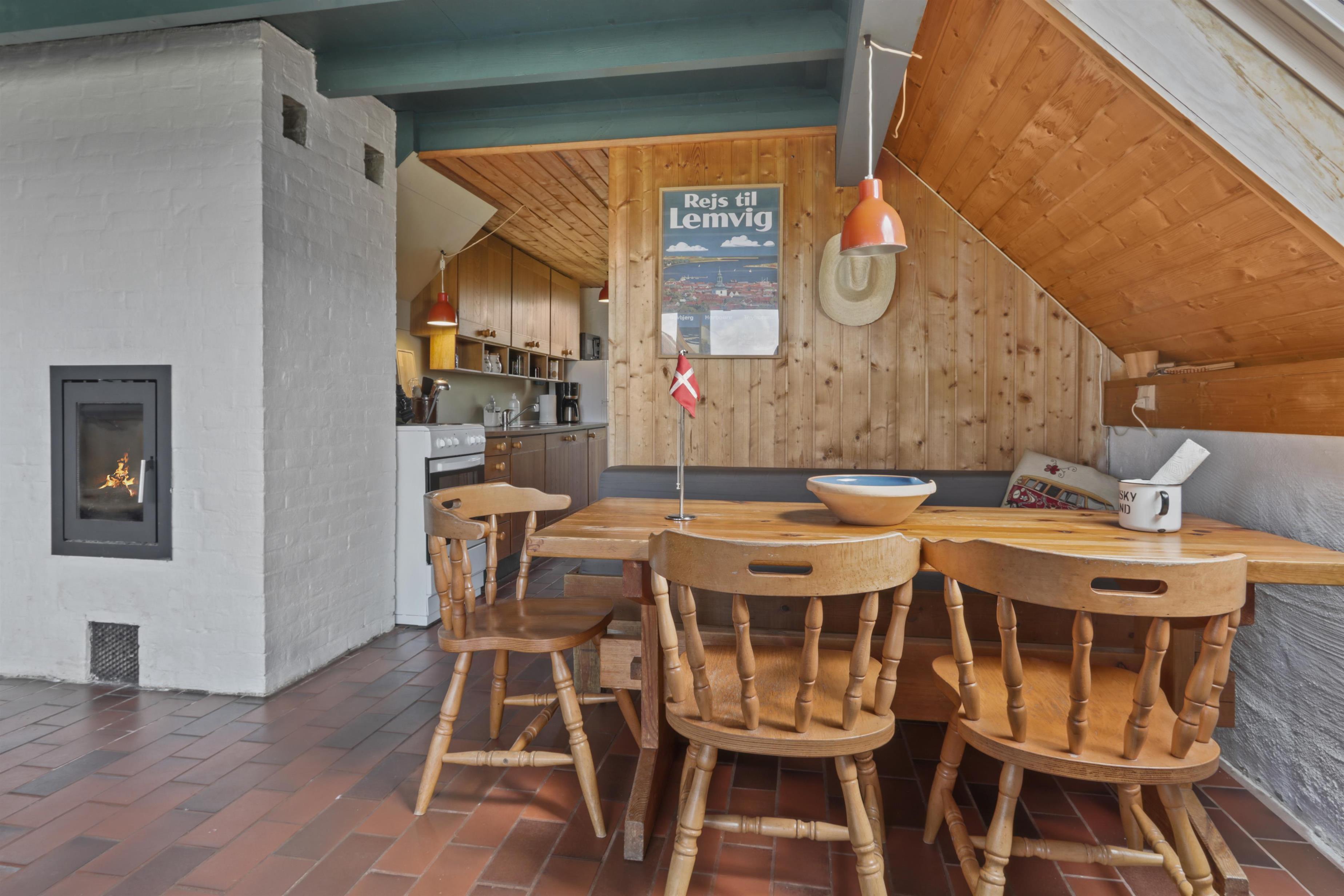 Indretningen er enkel og funktionel med fokus på hygge og afslapning. I stuen kan I samles i de bløde møbler foran pejsen eller se TV med både danske og tyske kanaler. Køkkenhjørnet er udstyret med komfur, køleskab med lille fryser samt det mest nødvendige til madlavning. Badeværelset har bruser og gulvvarme, som også findes i resten af stueplan. Huset har desuden gratis internet, varmepumpe og tillader op til 2 husdyr.
