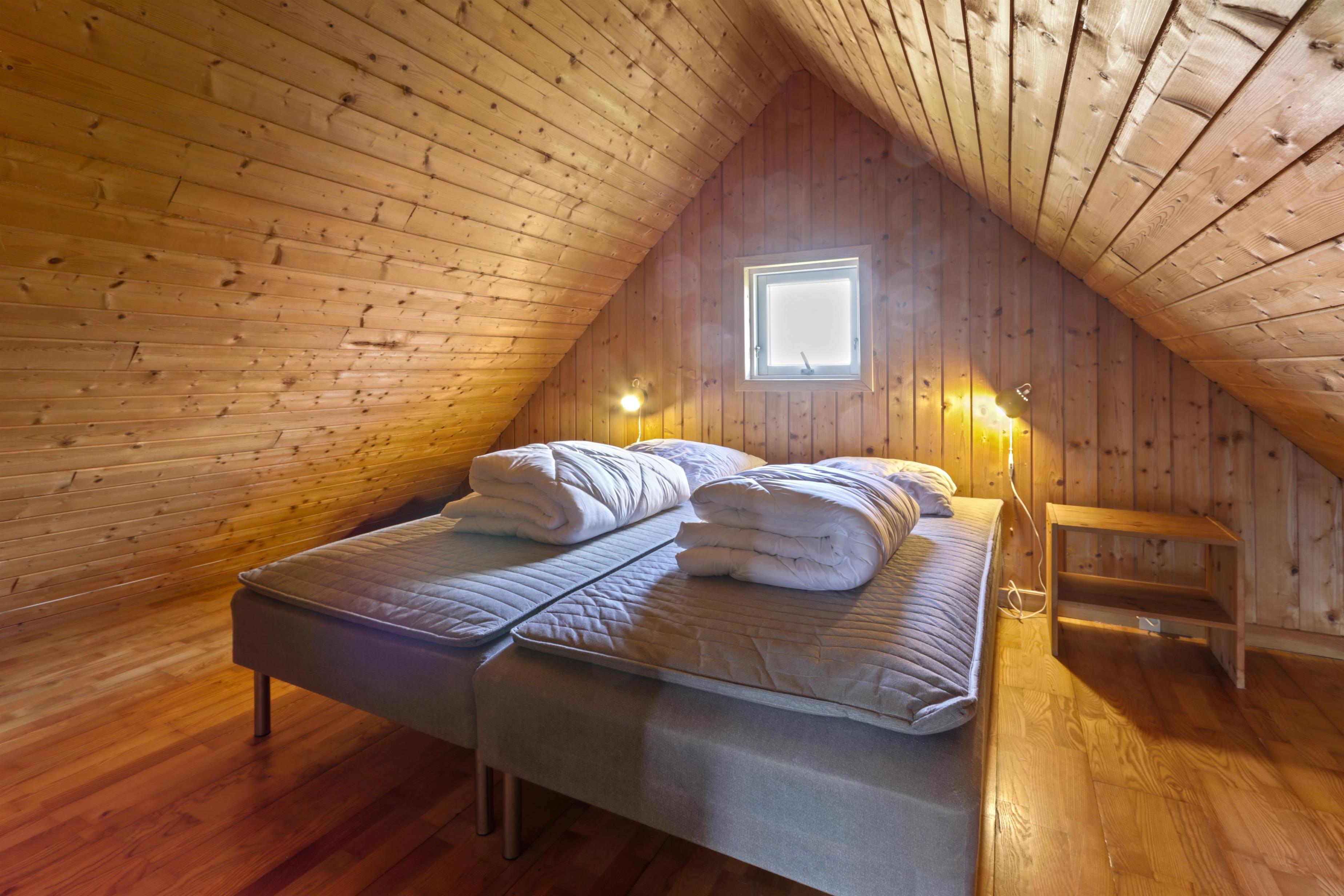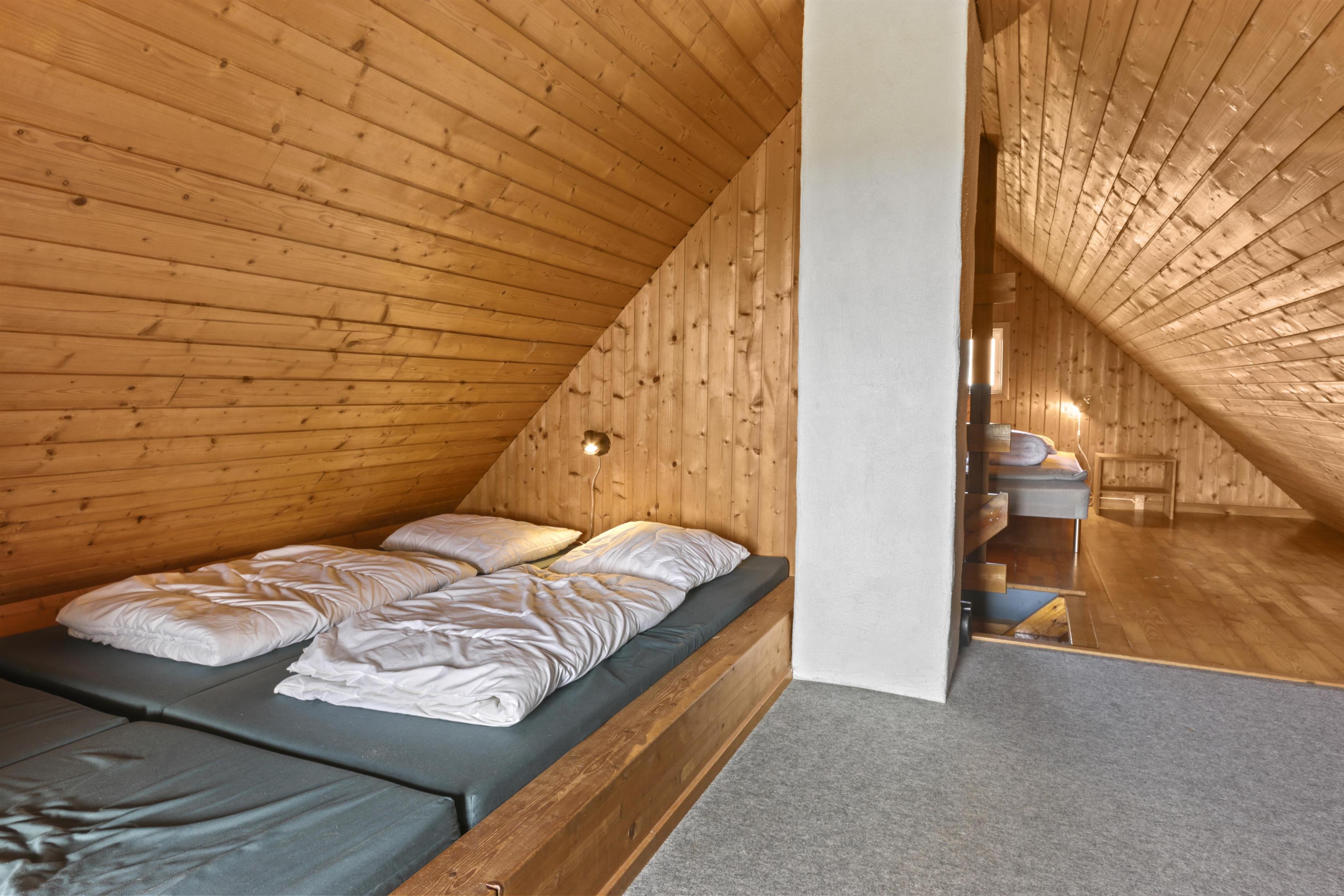 2 åbne soverum på 1. sal (1 dobbeltseng, 2 enkeltsenge)