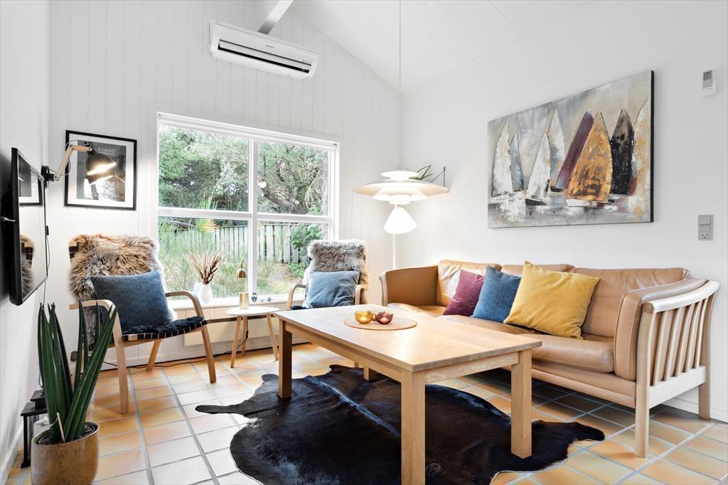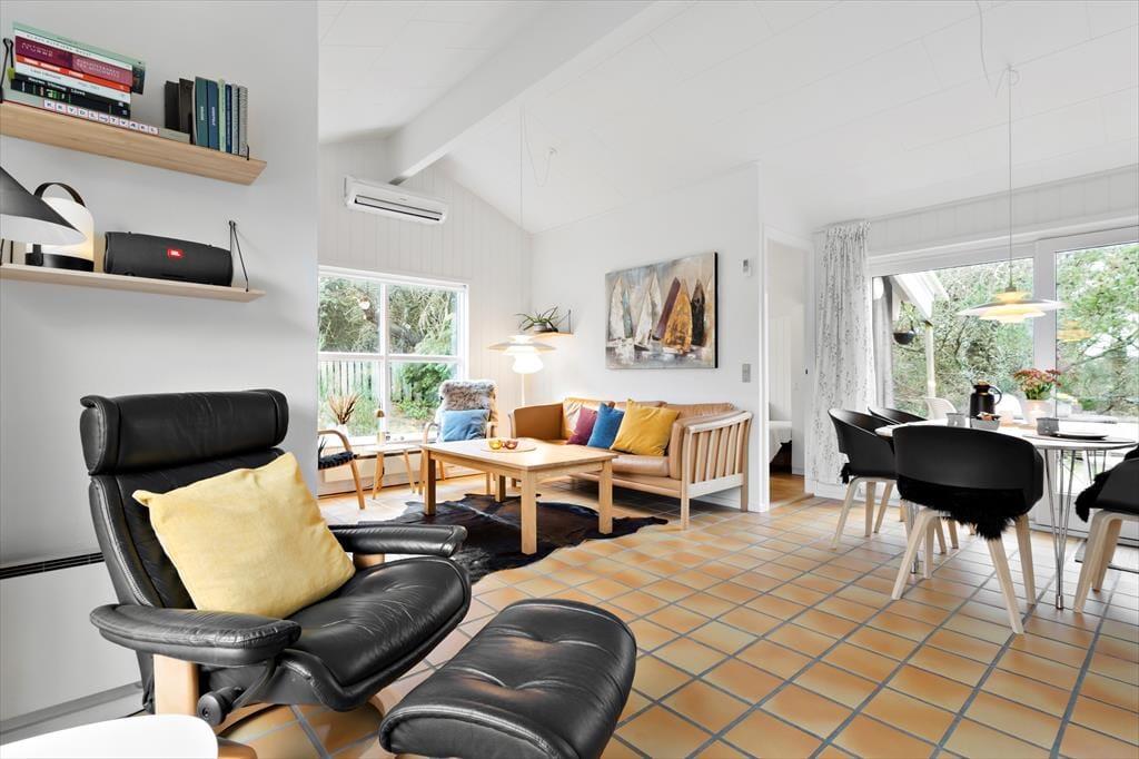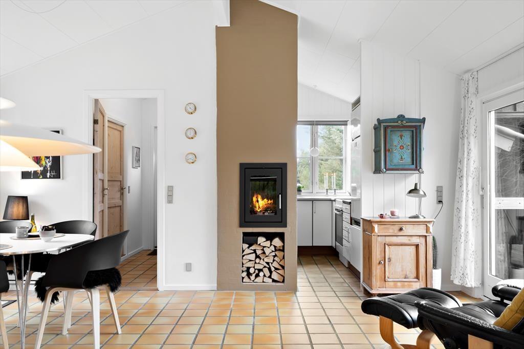 Varme hyggelige klinker og yderst flotte detaljer guider jer igennem dette lækre, arkitekttegnede feriehus. Nyd den dejlige rumlighed og det skønne køkken-alrum med loft til kip. Slå jer ned i det store køkken-alrum og nyd det smukke lysindfald, der bliver skabt af de store vinduer med fantastisk udsigt ud over grunden. I køkkenet kan I endda kigge lige ned på fjorden. Det store køkken-alrum gør det muligt for jer at være sammen, på trods af at I laver forskellige ting – nogle kan tilberede et lækkert måltid i køkkenet, mens andre nyder et hyggeligt spil kort og den gode samtale, der bare flyder, imens I nyder solens stråler gennem de store vinduer. Og når kroppen trænger til afslapning, kan I glæde jer over husets indbyggede sauna – den perfekte afslutning på en aktiv dag.
