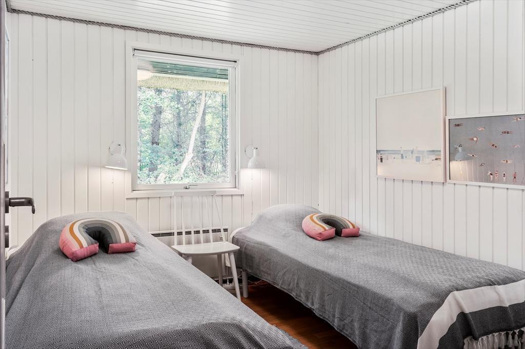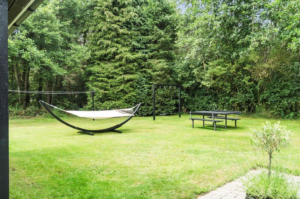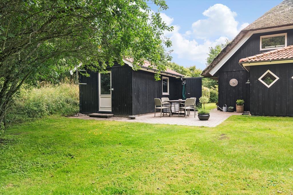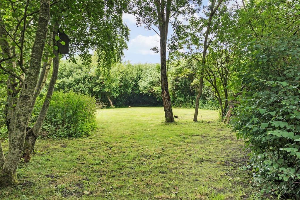 Sommerhuset ligger midt i naturen på en stor og fredelig grund med både åben græsplæne og vild bevoksning. Her er der masser af plads til at udfolde sig – om I vil spille bold, lege med børnene eller bare nyde roen omkring jer. Med to skønne terrasser kan I altid finde et solrigt hjørne eller læ, hvor I kan nyde morgenkaffen eller slappe af i eftermiddagssolen. Her er der plads til hele familien – og til ægte sommerhusliv.