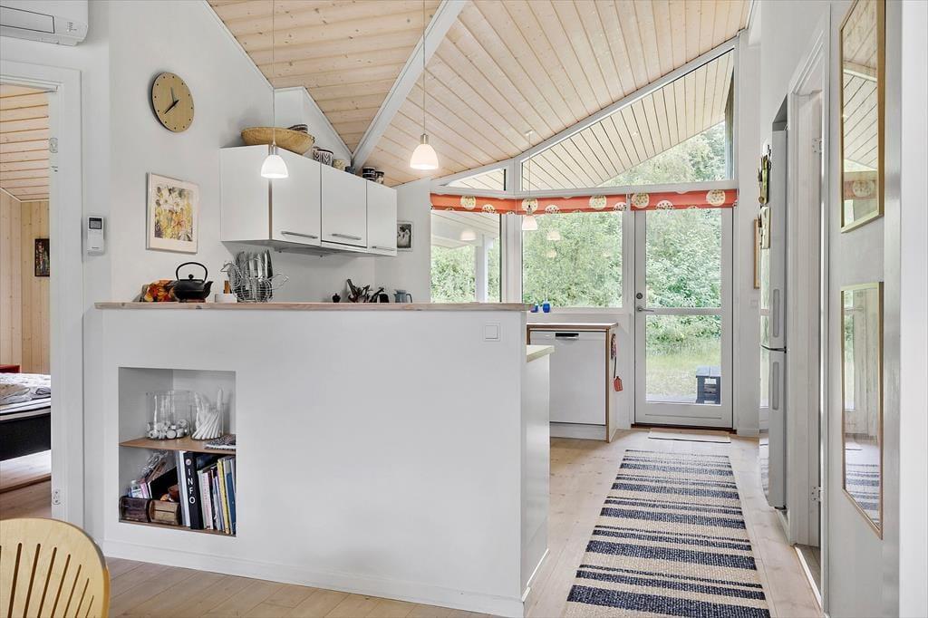 Velkommen til et moderniseret feriehus, hvor lys og rummelighed skaber de perfekte rammer for en afslappende og hyggelig ferie. Store vinduespartier åbner op mod den betagende jyske natur og fylder hjemmet med naturligt lys. Den åbne stue med integreret køkken indbyder til hyggelige stunder, hvad enten I laver mad, spiller spil eller slapper af foran brændeovnen. Efter en aktiv dag kan I nyde en stund i husets egen sauna og lade kroppen slappe helt af. Her kan I samle jer, nyde hinandens selskab og skabe uforglemmelige ferieminder – et hjem, hvor ro og nærvær går hånd i hånd.