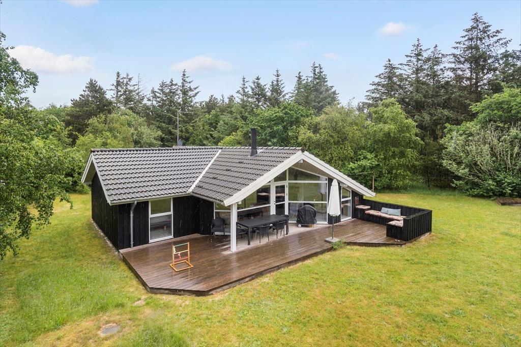 Fra stuen træder I direkte ud på en stor, skøn træterrasse, hvor I kan nyde solen og naturen i fulde drag. Terrassen er godt placeret med læ, og her kan I sætte jer i det komfortable loungesæt og slappe af med en god bog eller en kop kaffe. Den åbne have giver rig mulighed for leg og aktivitet, hvor både børn og voksne kan hygge sig og nyde tiden udendørs. Her er plads til at lade dagen glide stille forbi, skabe minder og nyde naturens skønhed.