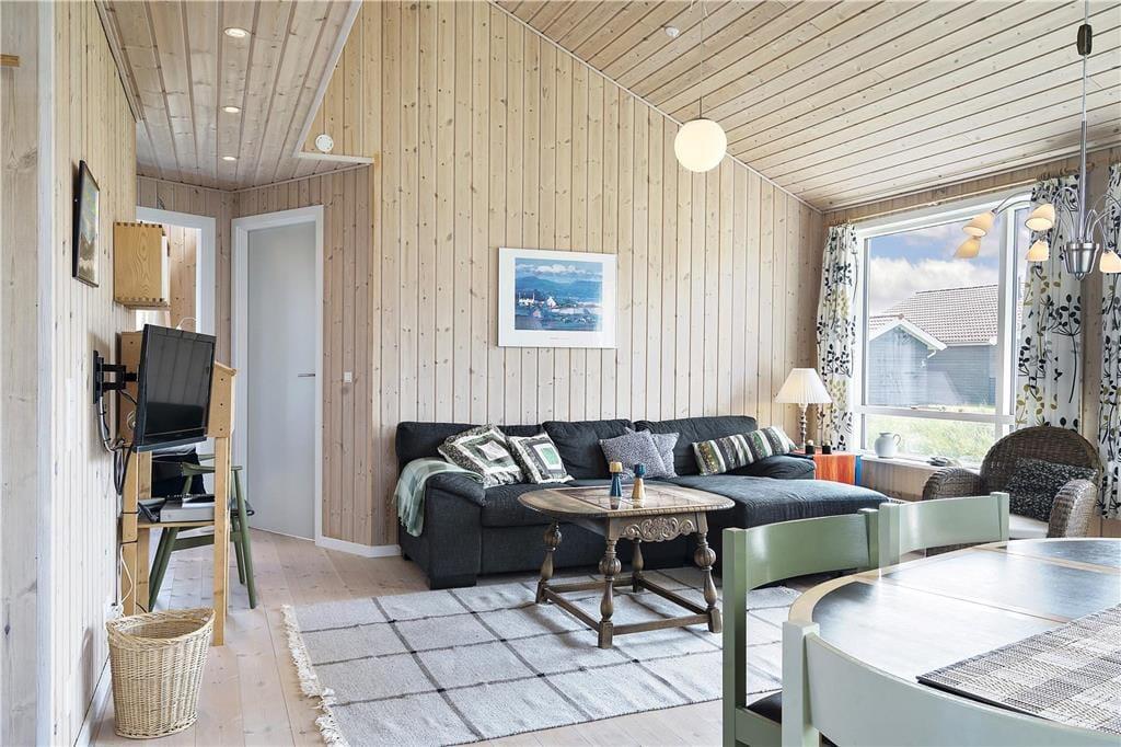 Huset ligger på en mindre, åben grund med masser af lys og luft omkring jer – og lige i nærheden venter et dejligt skovområde med en sjov og indbydende skovlegeplads, hvor børnene kan slå sig løs i sikre og naturskønne omgivelser. Fra den lyse og hyggelige stue har I direkte adgang til en sydøstvendt træterrasse, hvor I kan nyde morgensolen, slappe af med en god bog eller samles til måltider under åben himmel. Her kan I starte dagen med fuglesang og afslutte den med ro i sjælen. Som en ekstra bonus har området et fælles legeareal og boldbane – ideelt til både leg, boldspil og nye feriebekendtskaber. Dette er stedet, hvor I kan lade skuldrene falde ned og bare nyde livet – tæt på naturen og med plads til nærvær og fællesskab.
