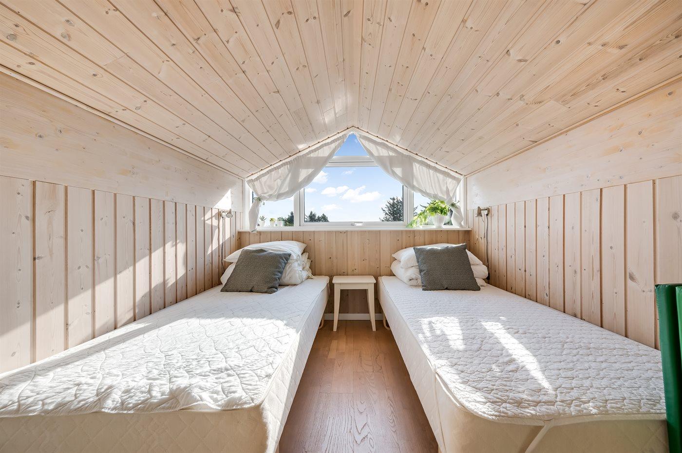 Der er i alt 3 soveværelser. Sovepladserne fordeler sig på: 4 sovepladser i dobbeltsenge. 4 sovepladser i enkeltsenge. 2 af disse sovepladser befinder sig på husets hems.