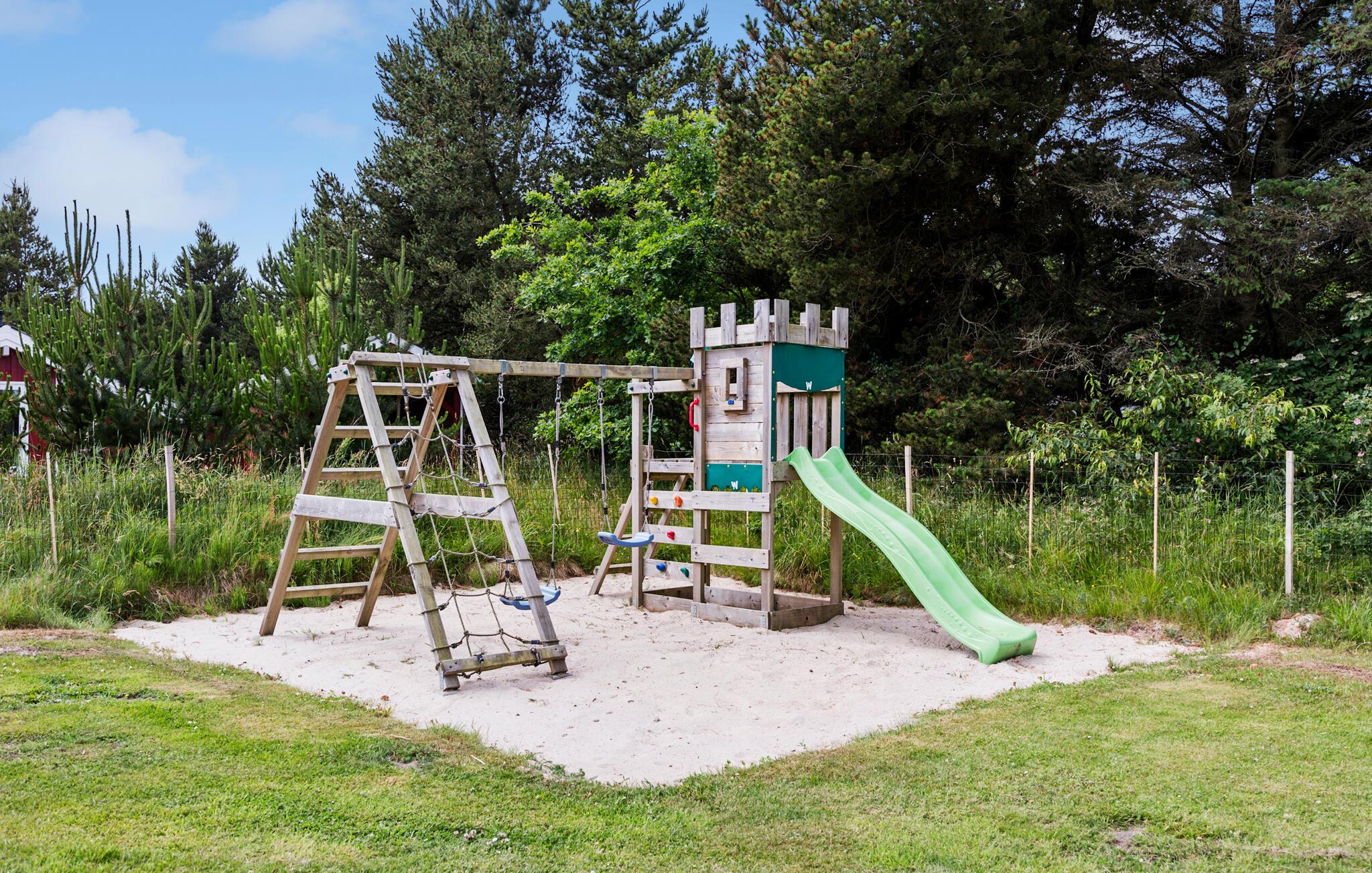 Udenfor fortsætter oplevelserne. Den store, lukkede terrasse indbyder til solbadning, afslapning og hyggelige grillaftener i de lune sommernætter. Haven er stor og en del er indhegnet, så både børn og hunde kan lege frit og trygt. På grunden er der desuden anlagt en natursti, hvor I kan gå små ture og nyde den fredelige stemning. Huset har også sin egen beachvolleybane med ægte strandsand samt forskellige legeredskaber.