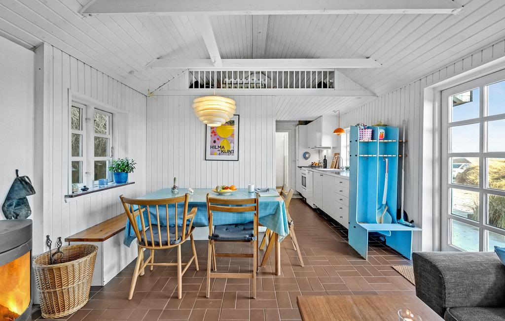 Denne fantastiske lille perle af et feriehus med plads til fire personer ligger med Vesterhavet lige i baghaven. Huset er hyggeligt indrettet med to soveværelser, et badeværelse med bruser, et veludstyret køkken og en meget hyggelig stue med brændeovn, så I kan sidde og nyde varmen fra ilden efter en lang gåtur ved havet. Fra en klit på grunden er der udsigt både til havet og til fjorden. Huset ligger i Bjerghuse, som er et roligt ferieområde mellem hav og fjord, og kun seks km fra fiskerbyen Thorsminde.