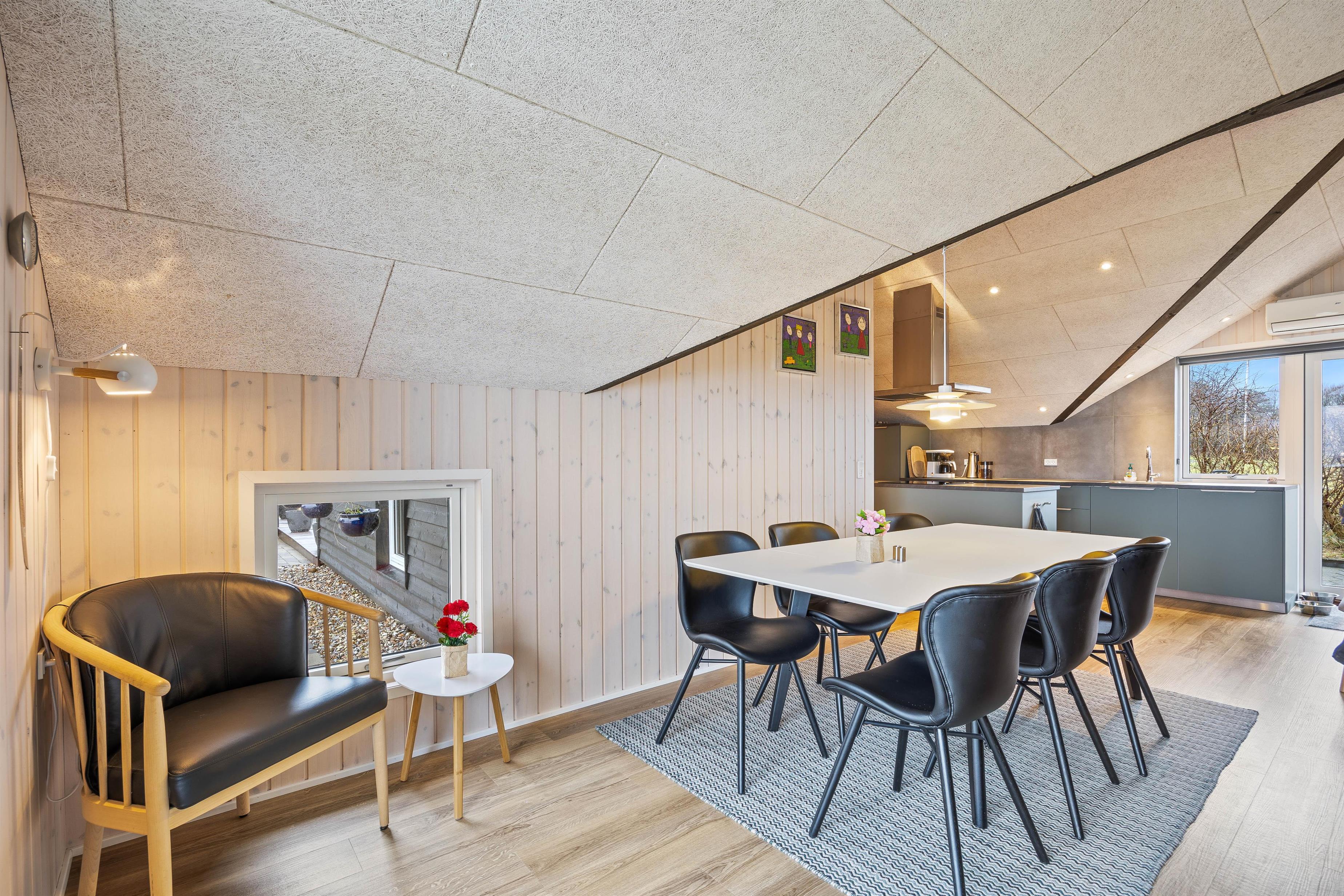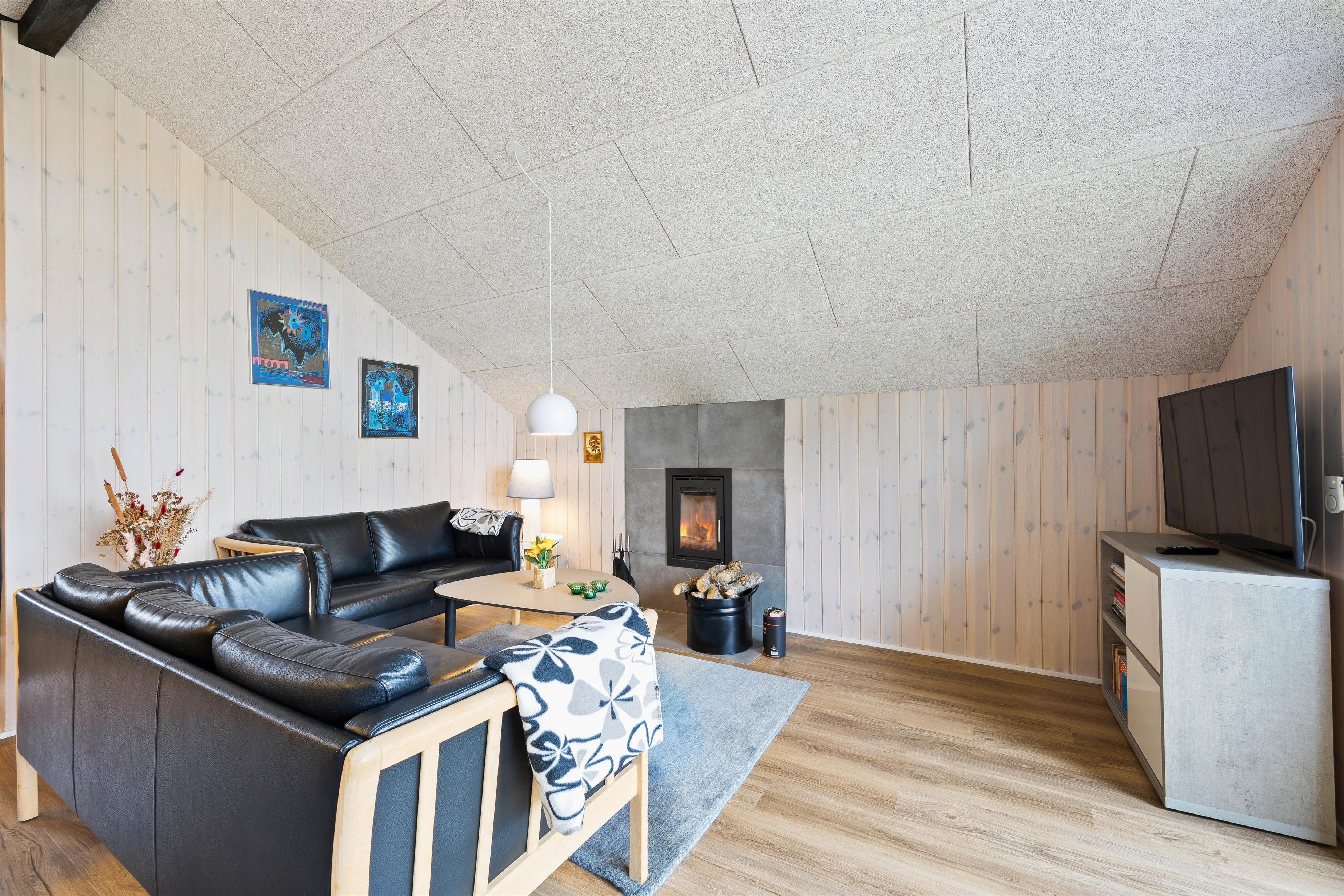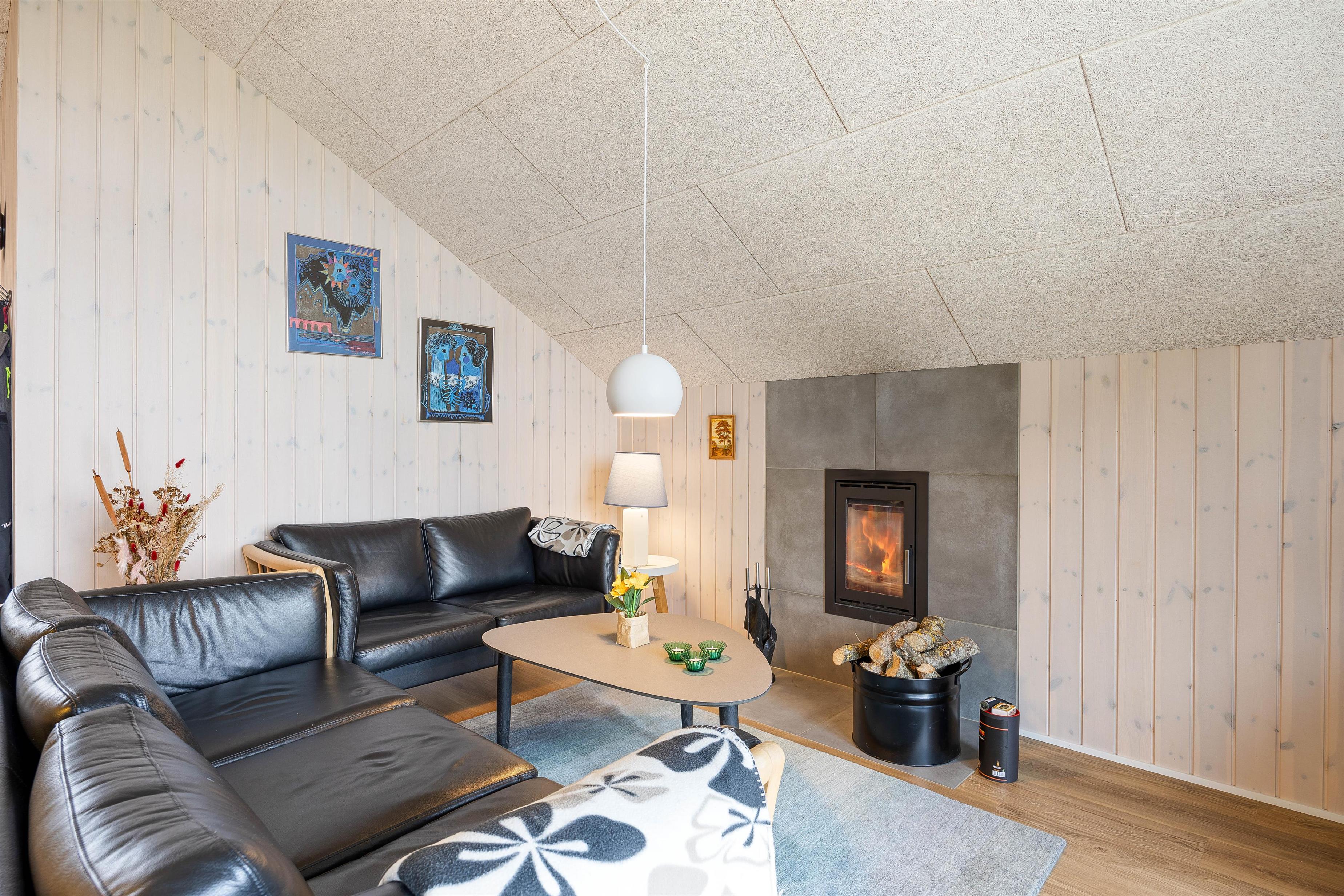 Når I ankommer til feriehuset, vil I straks glemme hverdagens stress, for dette feriehus har alt, hvad I skulle få brug for til en god ferie. Den store stue er feriehusets hjerte. Her kan I lave mad sammen i køkkenet, samles om bordet til sjove spil eller sætte jer godt til rette i sofaen med en god film på smart Tv’et via Norlys-appen.